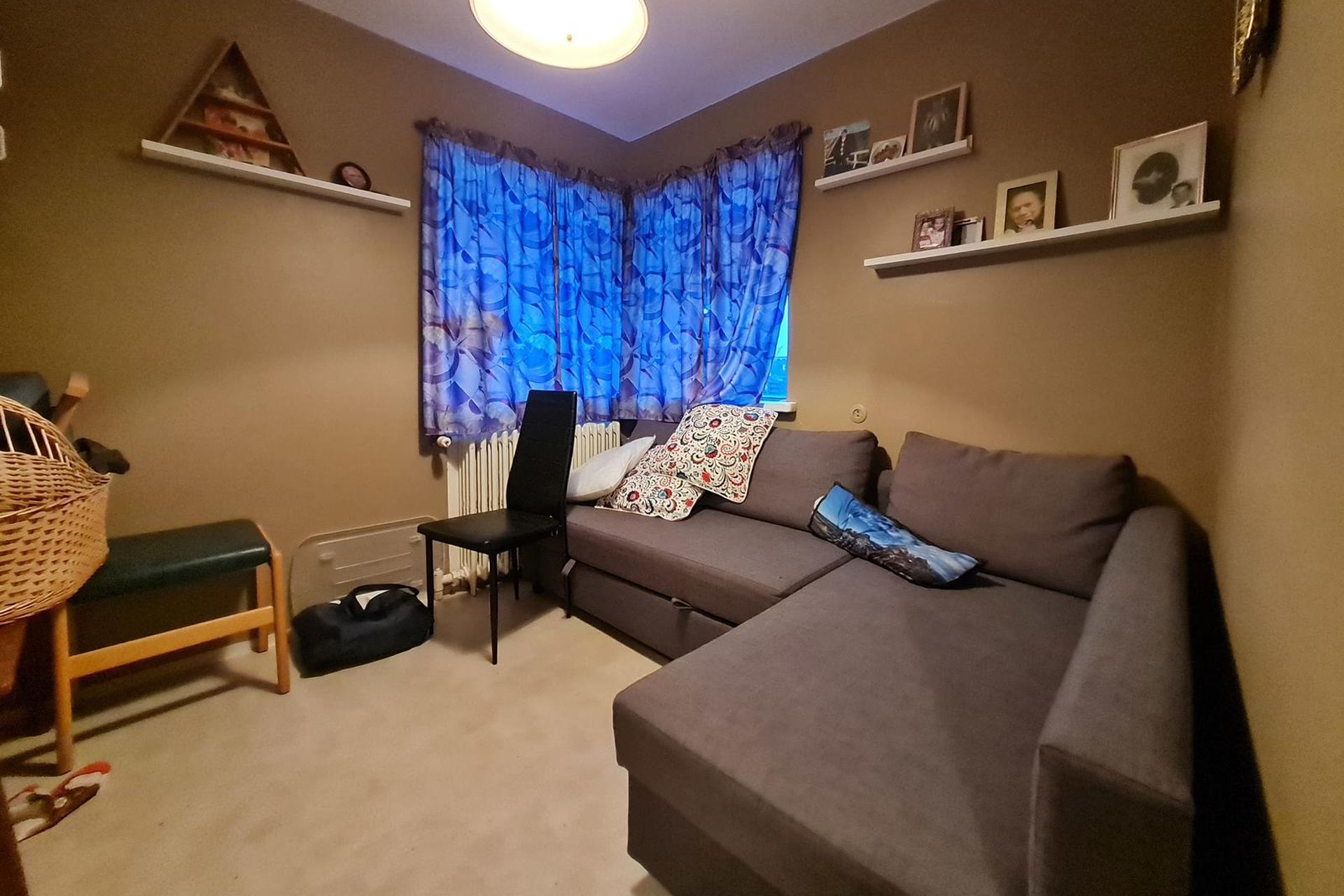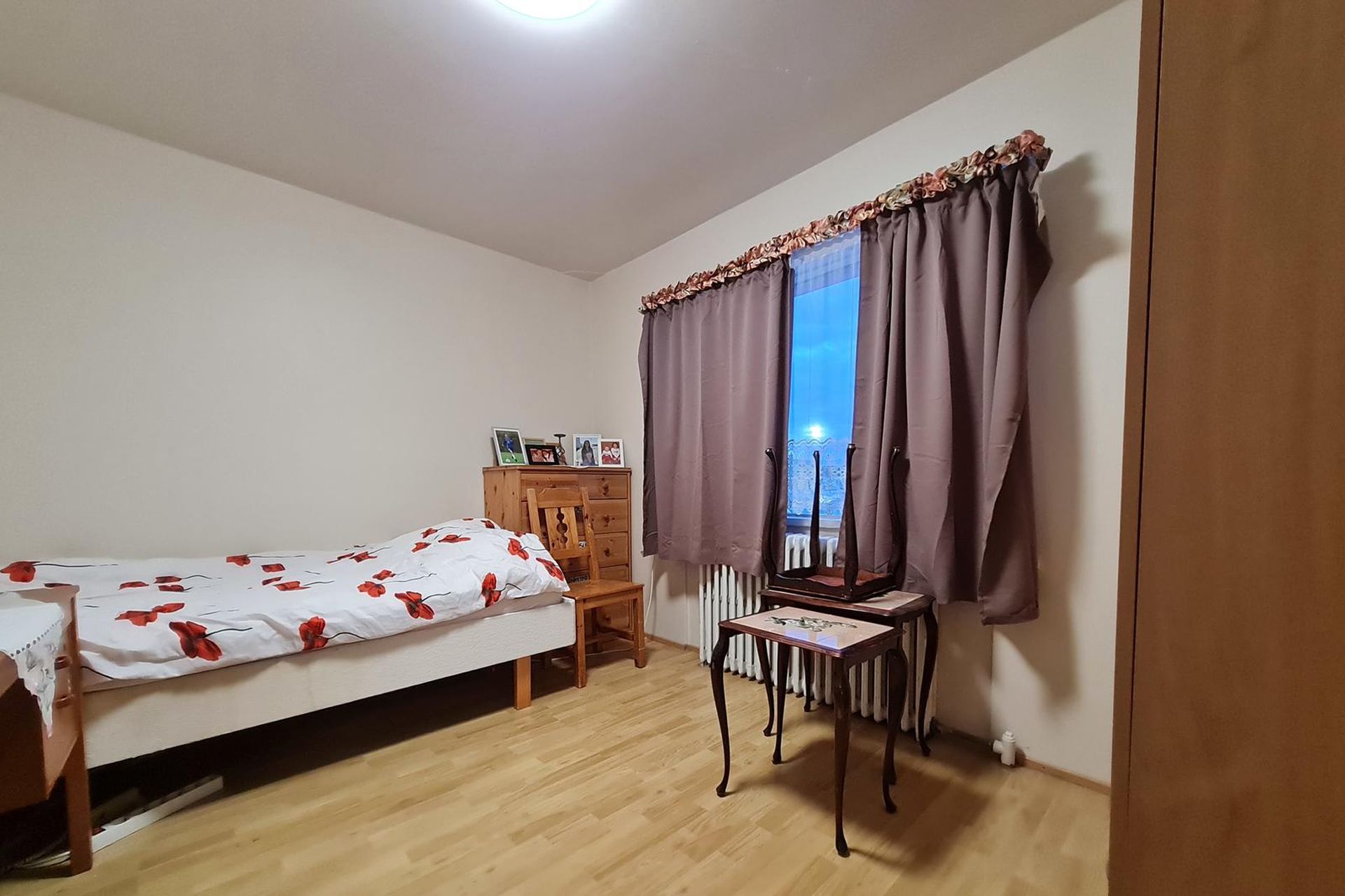 Herbergi eru þrjú og öll parketlögð. Hjónaherbergi er inn af stofu.