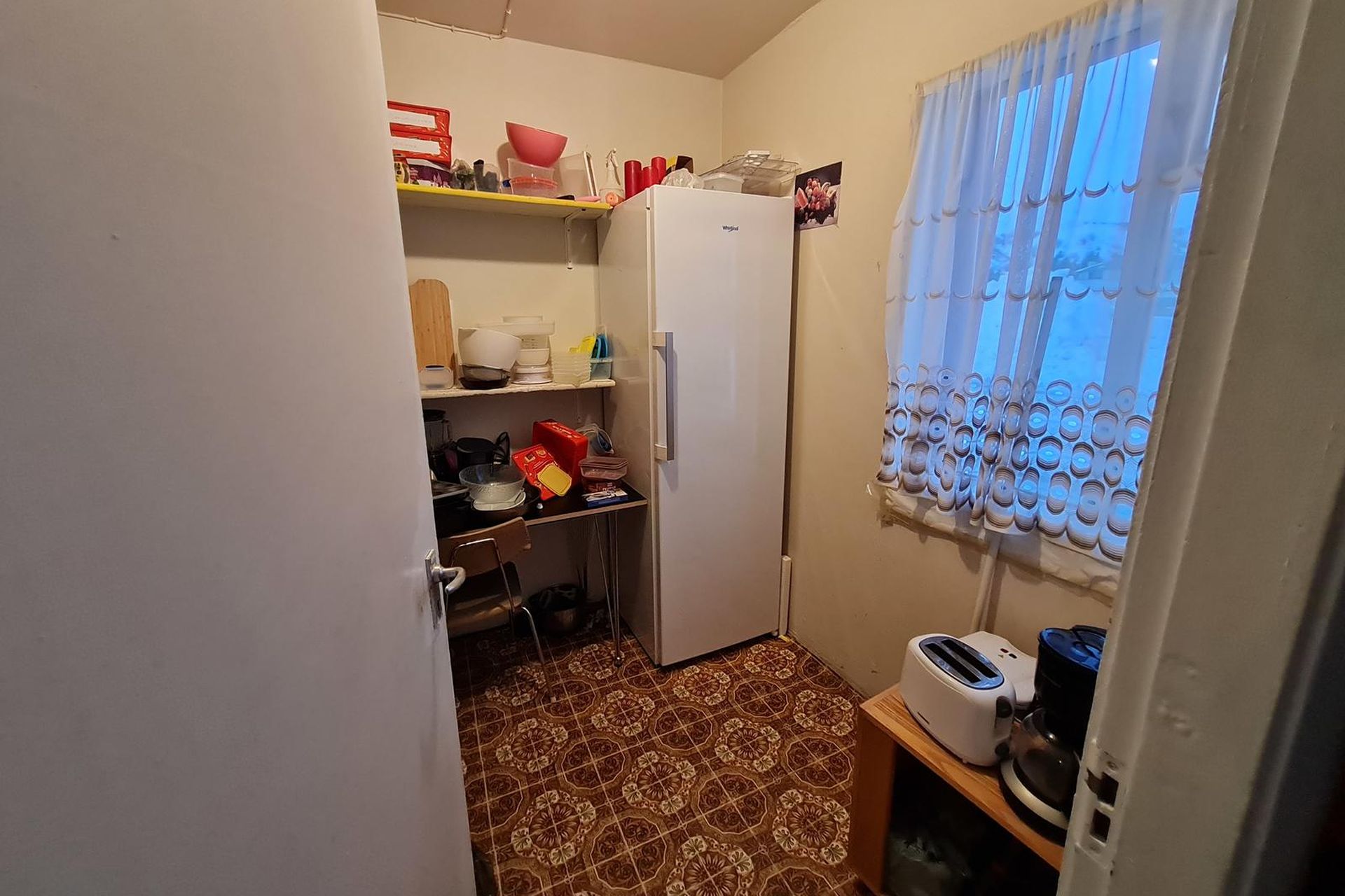Inn af eldhúsi er flísalagt kalt