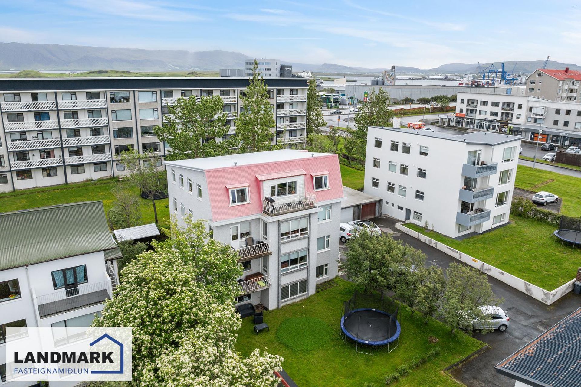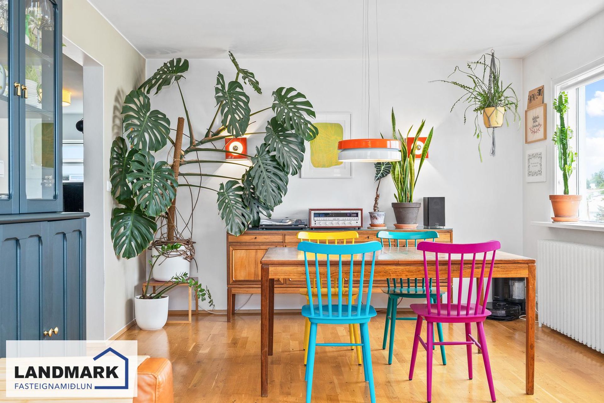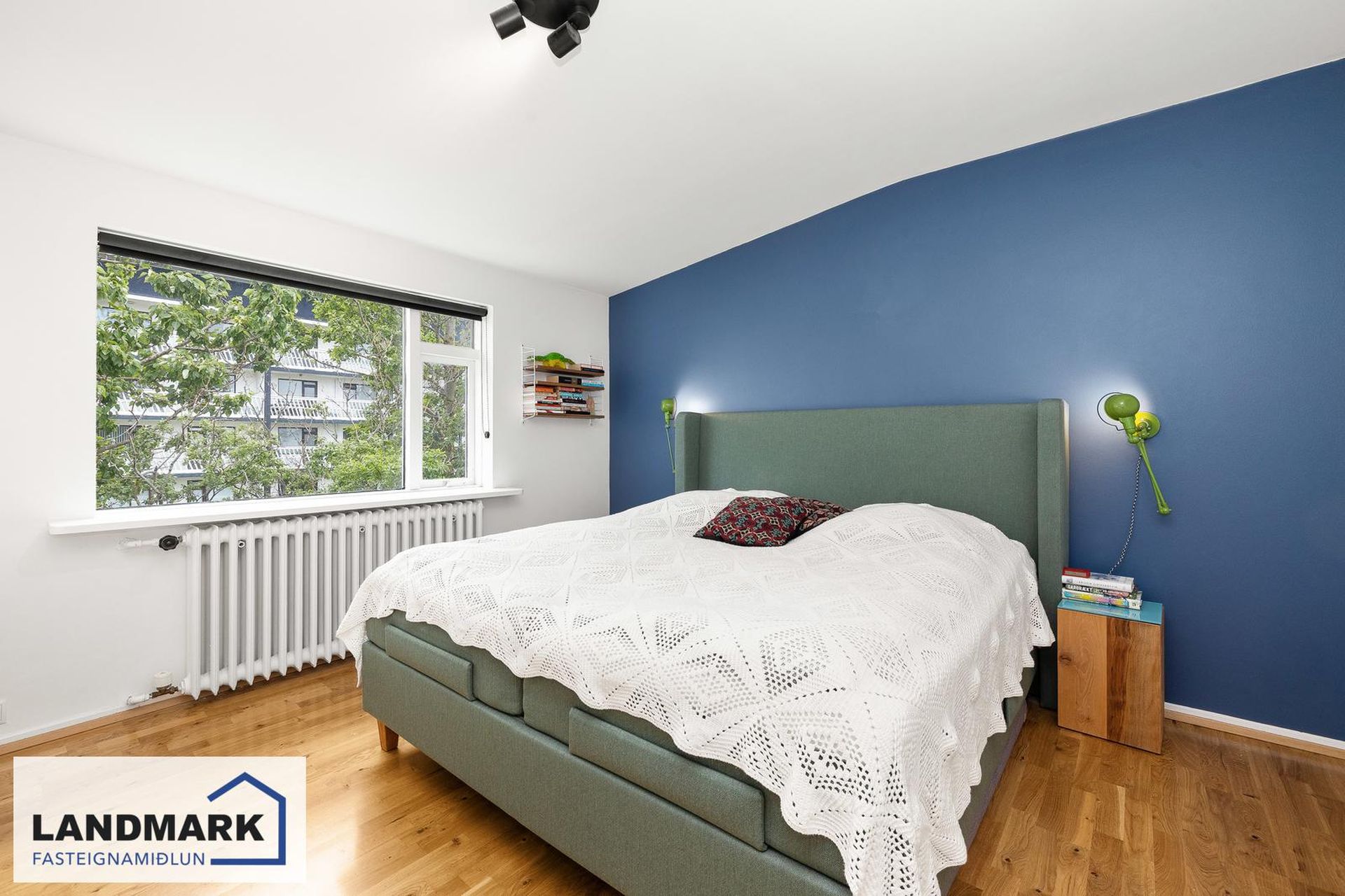 LANDMARK fasteignamiðlun og Monika Hjálmtýsdóttir, lögg. fasteignasali (s: 823-2800 / ) kynna: Fallega, bjarta og talsvert endurnýjaða fjögurra herbergja 118,8 m2 íbúðarhæð á þriðju og efstu hæð í góðu fjórbýli við Rauðalæk 69 í Reykjavík. Sérmerkt bílastæði tilheyrir eigninni. Húsið hefur fengið gott viðhald, þakjárn að hluta hefur verið endurnýjað, húsið endursteinað og skipt hefur verið um flesta glugga á suður- og austurhlið, rafmagnstafla í sameign og íbúð endurnýjuð. Íbúðin er afar björt og rúmgóð með fallegu útsýni, þremur góðum svefnherbergjum og þvottaaðstöðu í rými sem hægt er að breyta til baka í gestasalerni. Baðherbergi er nýuppgert. Geymsluloft í þakrými tilheyrir eigninni með niðurfellanlegum stiga. Sér geymsla er í kjallara ásamt sameiginlegu þvottahúsi með sér tengi. Garðurinn er í óskiptri sameign en núverandi eigendur eiga 10 m2 skúr í bakgarðinum. Skúrinn er á steyptum súlum og hafa veggir verið einangraðir. *Þrjú svefnherbergi. *Björt og rúmgóð stofa og borðstofa.*Suðursvalir með fallegu útsýni.*Ný endurnýjað baðherbergi.*Geymsluskúr í bakgarði.*Sérmerkt bílastæði á lóð. *Endurnýjun á skólplögnum, dreni og vatnslögnum árið 2005. Eignin skiptist í gang, þvottaherbergi, þrjú svefnherbergi, stofu / borðstofu, eldhús, baðherbergi, þakrými og tvær geymslur. Sérmerkt bílastæði. Birtar stærðir skv. HMS: Íbúð er 116,3 m2 merkt 0301, geymsla fyrir framan íbúð á stigapalli merkt 0302 er 1,3 m2, geymsla í kjallara merkt 0004 er 1,2 m2 og þakrými 0401 (ekki skráðir birtir fermetrar), samtals 118,8 m2 að stærð. Sækja söluyfirlit strax Nánari lýsingForstofa er með flísum á gólfi. Þvottaaðstaða er í litlu rými með glugga, flísar á gólfi. Áður var þar gestasalerni.Svefnherbergi I er rúmgott, parket á gólfi. Í þessu herbergi er lúga upp í geymsluloft í þarkrými með niðurfellanlegum stiga. Gangur er með parketi á gólfi. Þaðan er gengið inn í borðstofu og stofu, eldhús og inn á herbergjagang. Stofa og borðstofa er afar björt og rúmgóð með parketi á gólfi. Útgengi á svalir í suður með fallegu útsýni. Eldhús er rúmgott í sér rými og er þaðan fallegt útsýni. Eldhúsinnrétting er upprunaleg en hefur fengið góða yfirhalningu og er með nýlegum tækjum, fallegum flísum á vegg, eldavél með helluborði, gufugleypi yfir og tengi fyrir uppþvottavél og ísskáp. Góður borðkrókur í eldhúsi, flísar á gólfi. Svefnherbergi II, hjónaherbergi er rúmgott með fataskápum, parket á gólfi. Baðherbergi er ný uppgert, flísalagt í hólf og gólf með upphengdu salerni, baðkari með sturtu yfir, vaski með skáp undir, vegghengdum skáp bakvið hurð og handklæðaofni á vegg. Svefnherbergi III er með parketi á gólfi og glugga í tvær áttir. Geymsla I er framan við inngang íbúðar með áföstum hillum.Geymsla II er í kjallara, undir stiga. Báðar geymslurnar eru litlar en nýtast vel í óskráðum rýmum sem ekki ná fullri lofthæð. Geymsluskúr á steyptum súlum, staðsettur í garði er í eigu núverandi eigenda og fylgir með.Sameiginlegt þvottahús í kjallara með sér tengi. Þaðan er útgengi í bakgarð. Garðurinn er í óskiptri sameign, skjólgóður.Sérmerkt bílastæði tilheyrir eigninni framan við húsið á lóð. Um er að ræða virkilega bjarta og fallega fjögurra herbergja hæð á mjög góðum stað í Laugarneshverfinu í Reykjavík. Allar nánari upplýsingar veita:Monika Hjálmtýsdóttir, viðskiptafr., lögg. fasteignasalií félagi FF / / 823-2800Júlíus Jóhannsson, lögg. fasteignasalií félagi FF / / 823-2600Láttu okkur selja fyrir þig! Við veitum þér sölu- og kaupráðgjöf án skuldbindingarUm skoðunar- og aðgæsluskyldu:Í lögum um fasteignakaup nr. 40/2002 er kveðið á um ríka skoðunarskyldu kaupenda á fasteignum. LANDMARK fasteignamiðlun bendir væntanlegum kaupendum á að kynna sér vel ástand fasteigna við skoðun og fyrir tilboðsgerð og ef þurfa þykir að leita til sérfræðinga um nánari ástandsskoðun.Forsendur söluyfirlits:Söluyfirlit er samið af fasteignasala í samræmi við ákvæði laga nr. 70/2015. Þær upplýsingar sem fram koma í söluyfirliti þessu eru sóttar í opinberar skrár, til seljanda sjálfs og eftir atvikum til húsfélags. Seljandi veitir upplýsingar um eign í samræmi við upplýsingaskyldu laga um fasteignakaup nr. 40/2002. Fasteignasali sannreynir að þær upplýsingar séu réttar með sjónskoðun á eigninni.Fasteignasali getur ekki fullyrt um ástand og eiginleika þeirra hluta fasteigna sem ekki eru aðgengilegir og sjást ekki berum augum, t.d. lagnir, dren, skólp og þak.Gjöld sem kaupandi þarf að standa straum af vegna kaupanna:1.Stimpilgjald af kaupsamningi sem er hlutfall af fasteignamati. Stimpilgjald er 0,8% fyrir einstaklinga (0,4% við fyrstu kaup) og 1,6% fyrir lögaðila.2. Þinglýsingargjald af kaupsamningi, veðskuldabréfum, veðleyfum o.fl. Þinglýsingargjald er kr. 2.700,- fyrir hvert skjal.3. Lántökugjald lánastofnunar. Um lántökugjald vísast í gjaldskrá viðkomandi lánveitanda.4. Umsýslugjald kaupanda kr. 79.000 m/vsk. 5. Þegar um nýbyggingu er að ræða greiðir kaupandi skipulagsgjald, 0,3% af endanlegu brunabótamáti, þegar það er lagt á.Heimasíða LANDMARK fasteignamiðlunarPanta FRÍTT söluverðmat