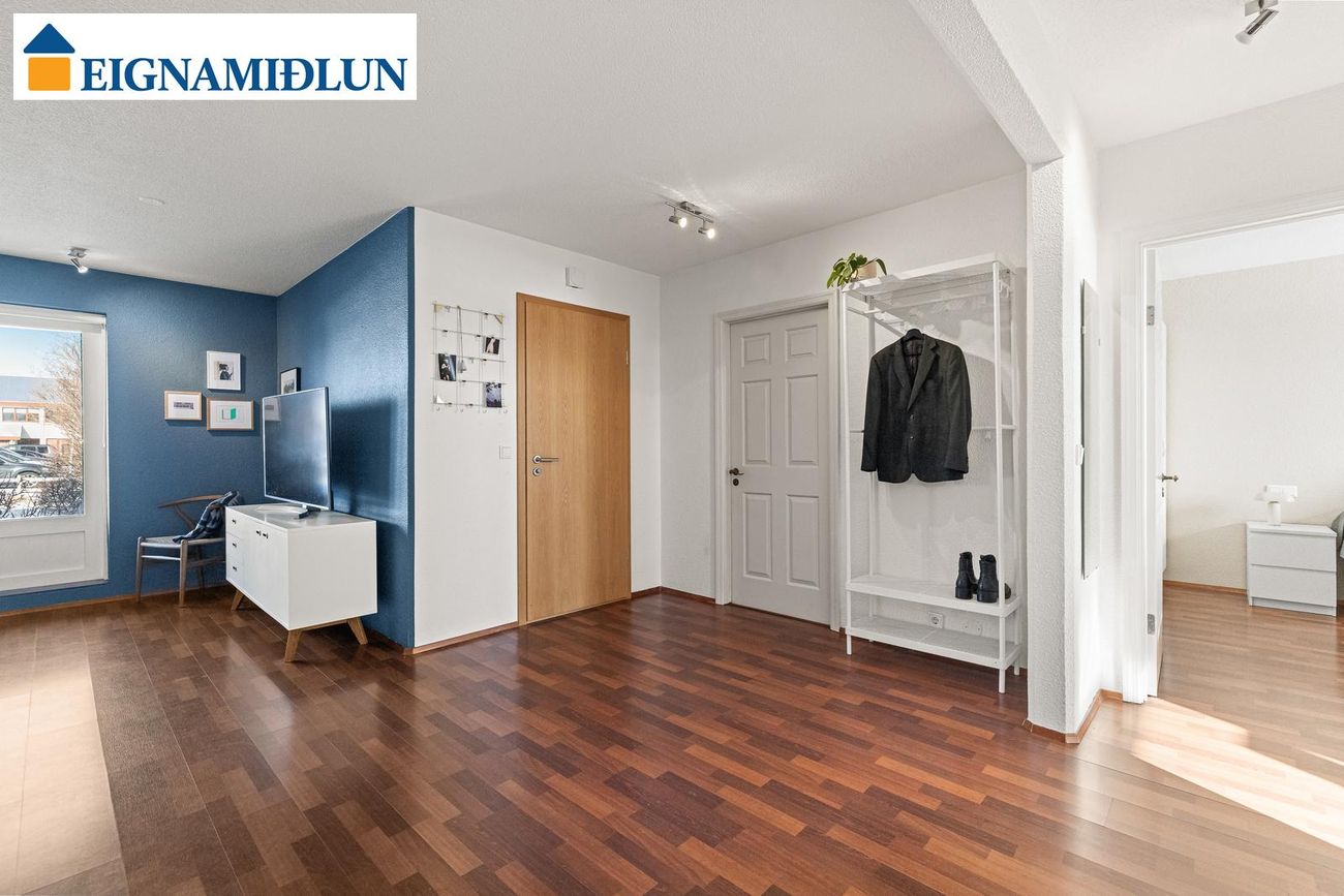 Stofa og borðstofa er í opnu rými með parketi á gólfi. Þaðan er gengið út um svalahurð á svalir og garð. Sérafnotaréttur fylgir eigninni.
