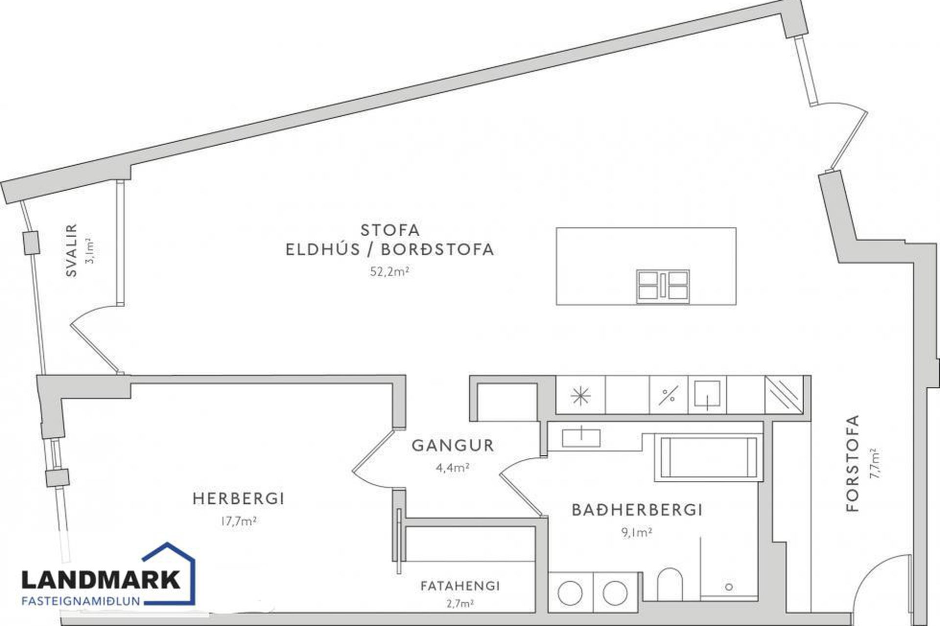 | 2 | 103,90 m² | 149.000.000 kr. 27. janúar 2025 | 135.000.000 kr. 9. mars 2022 |