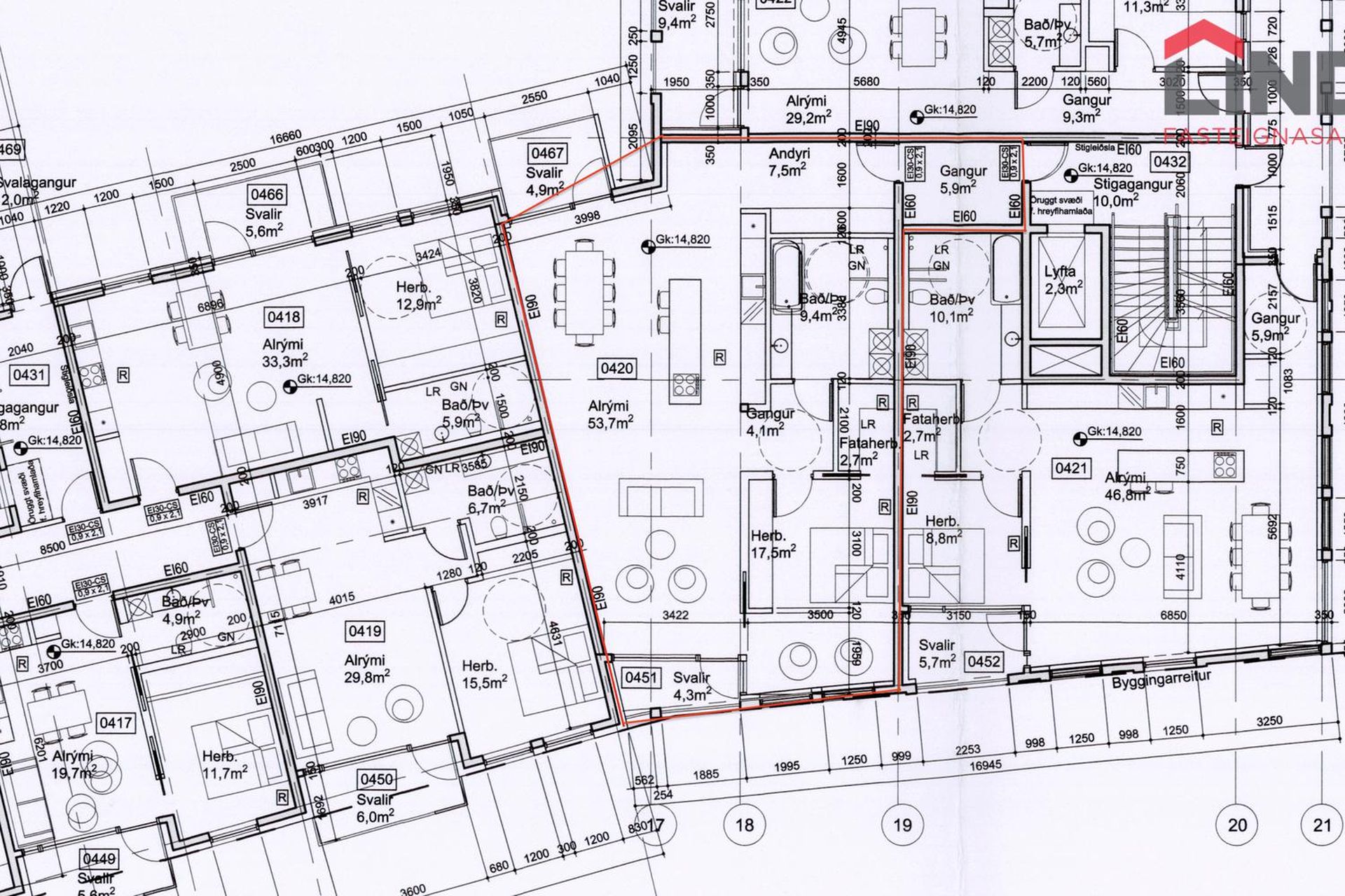 | 3 | 121,50 m² | 131.500.000 kr. 9. febrúar 2021 | 131.500.000 kr. 10. maí 2021 |