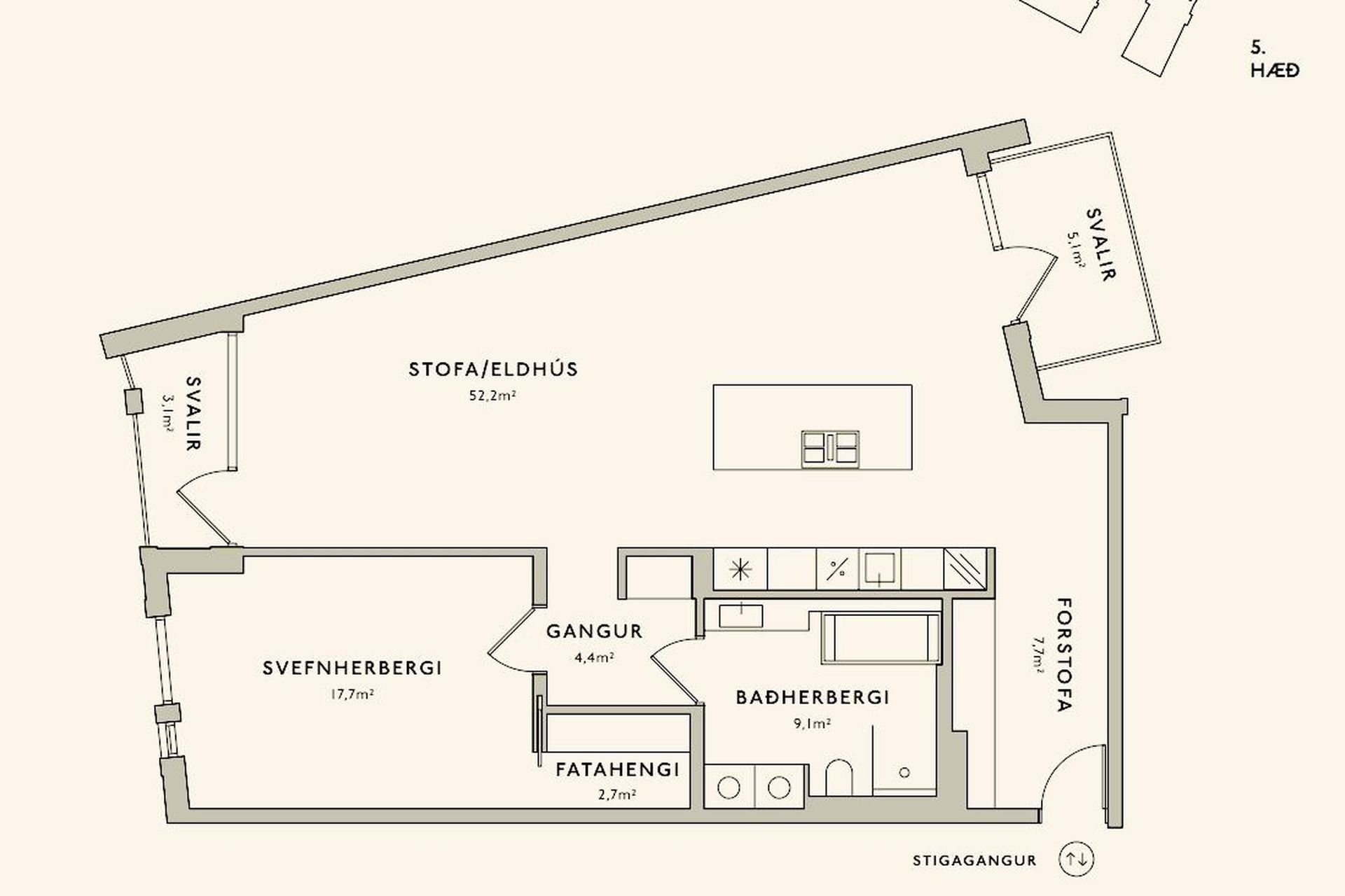 | 2 | 73,00 m² | 76.500.000 kr. 9. júlí 2021 | 76.500.000 kr. 27. september 2021 |
