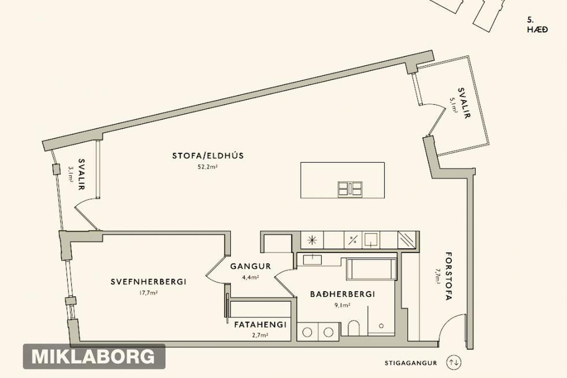 | 2 | 103,90 m² | 149.000.000 kr. 10. júní 2025 | 139.000.000 kr. 11. júlí 2025 |