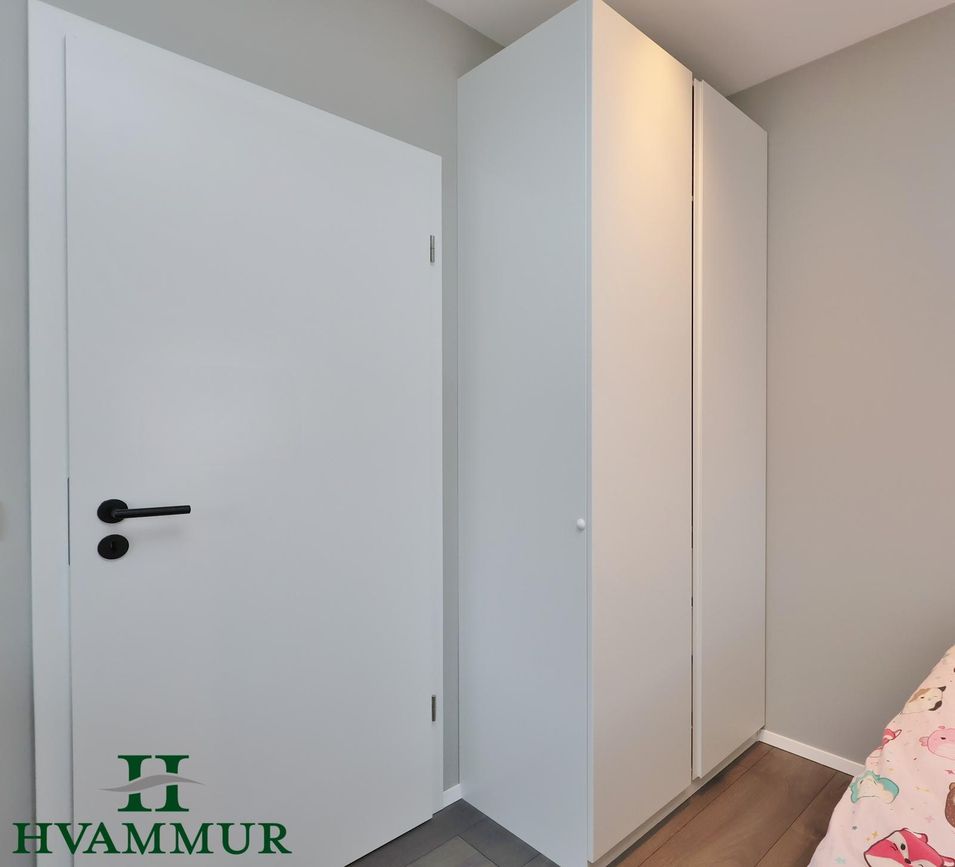 Geymsluloft í þvottahúsinu og fataskápar í forstofu og herbergjum.
