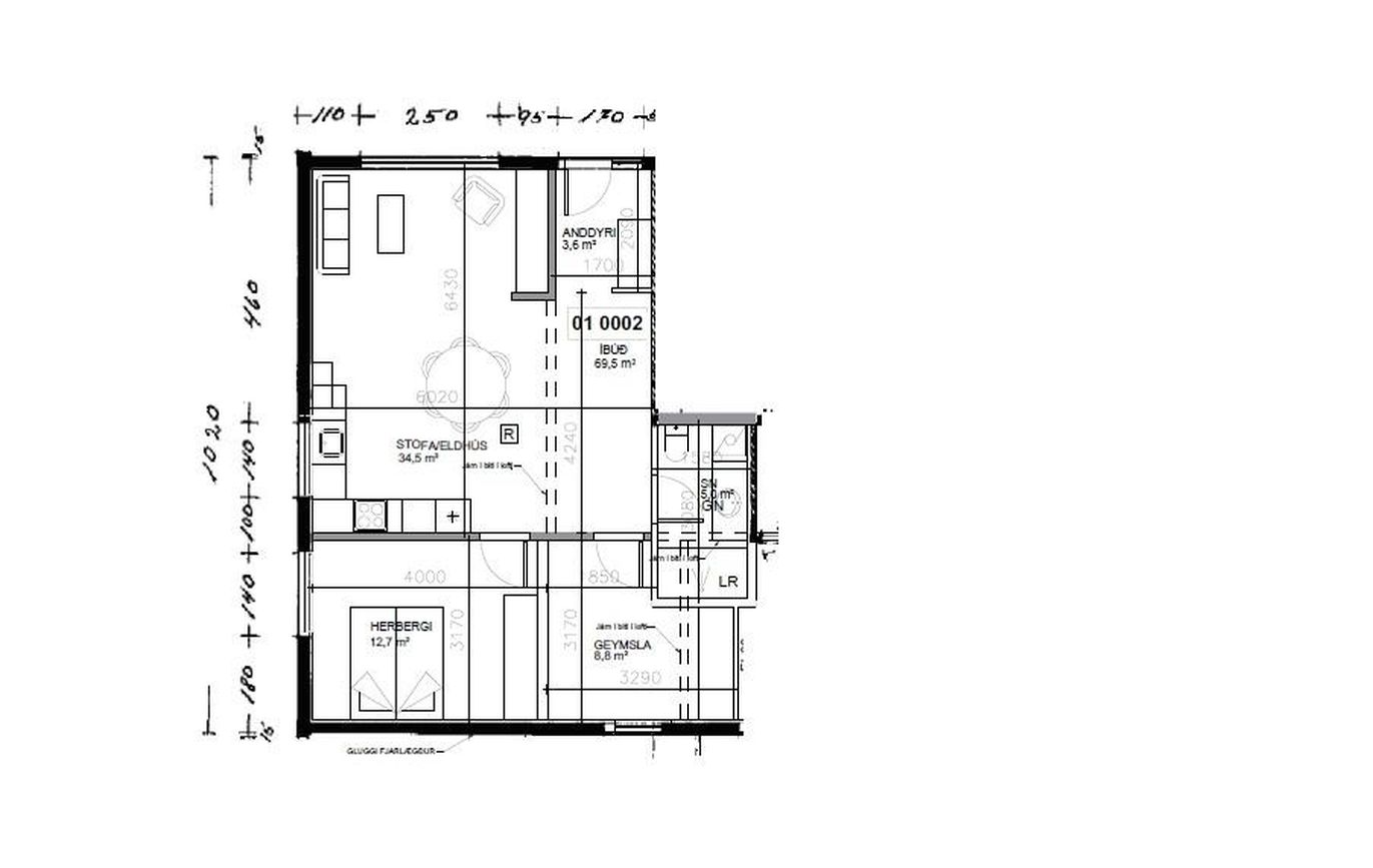 Stofa og borðstofa eru björt rými með gluggum í suður og vestur og með flottu útsýni.