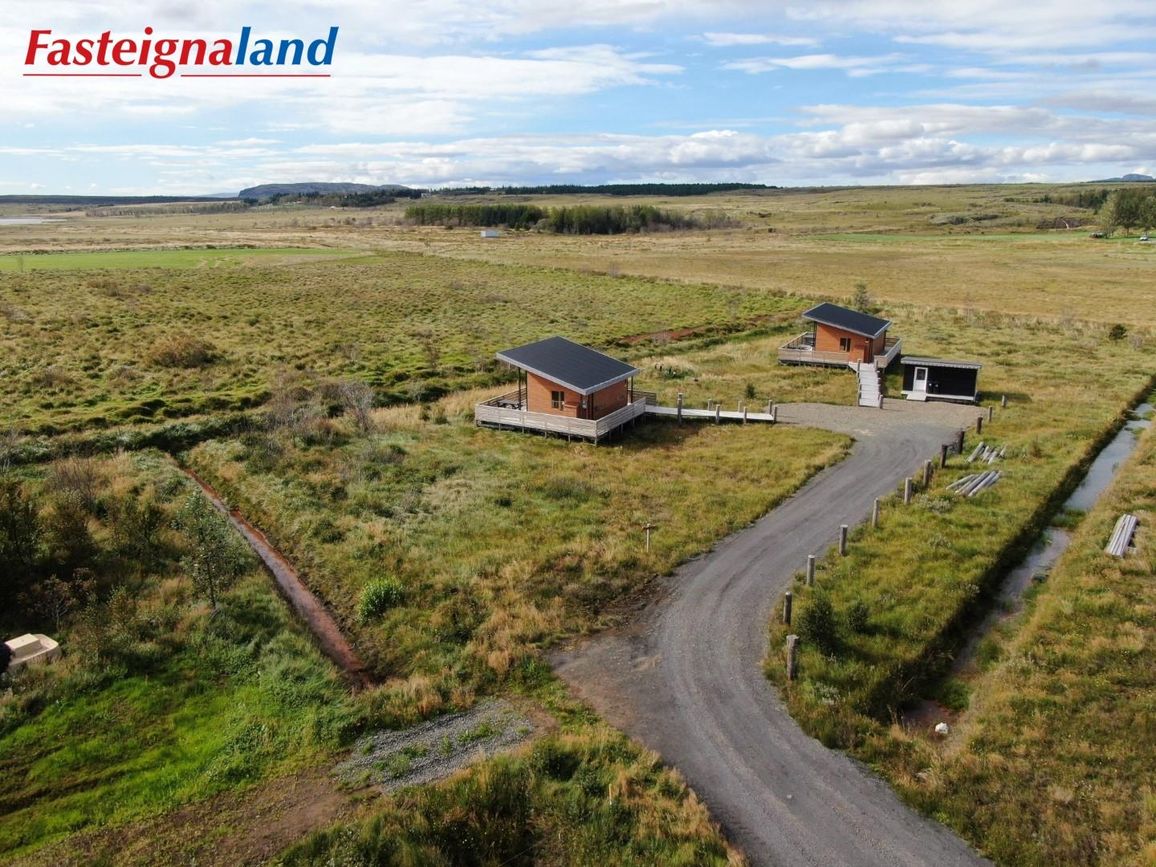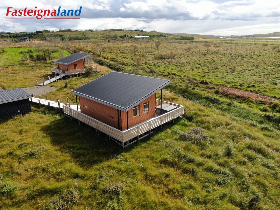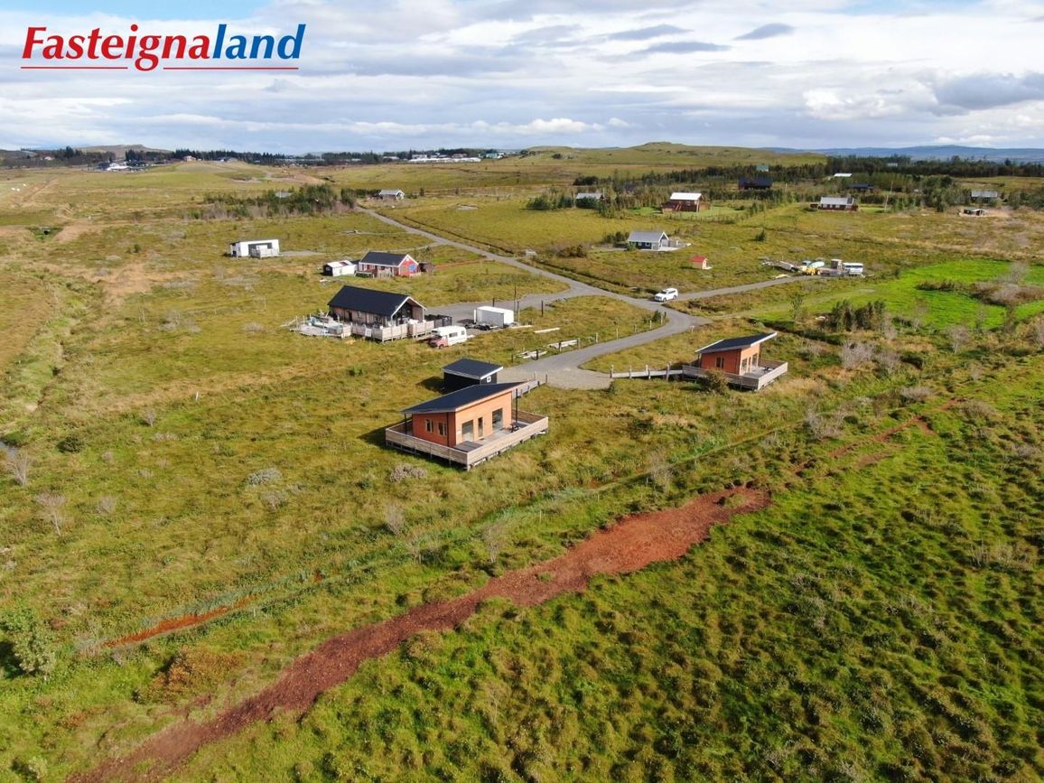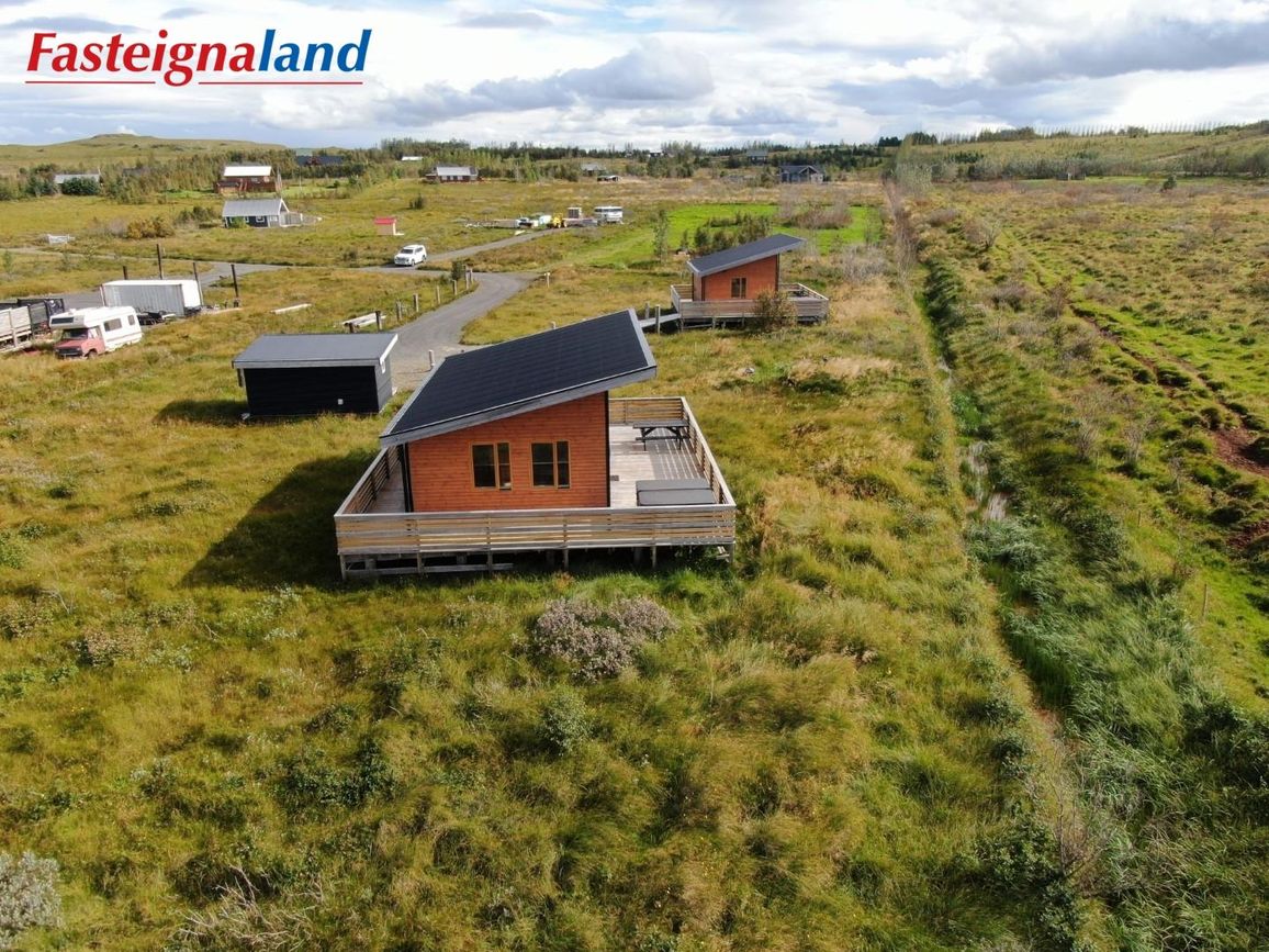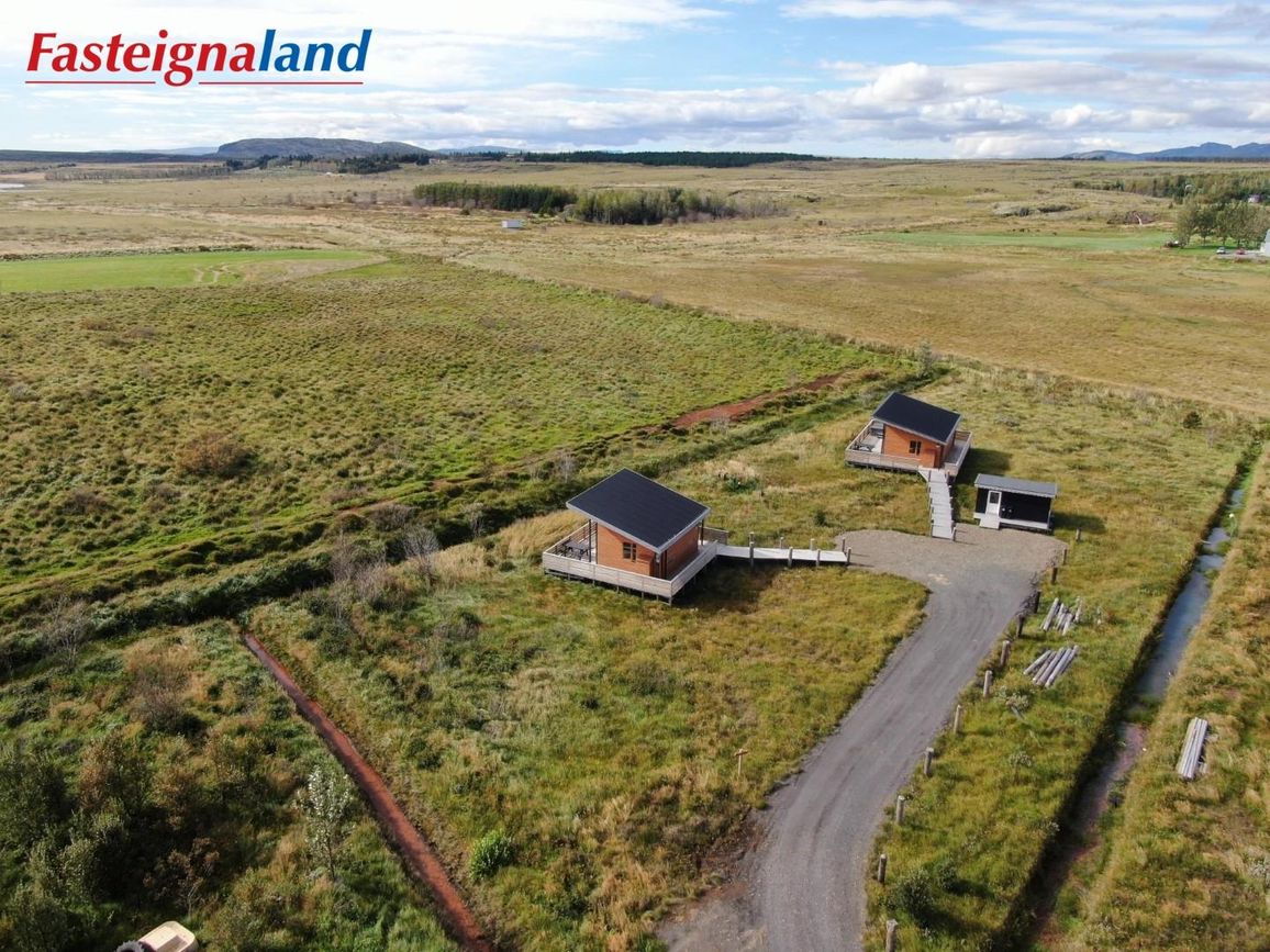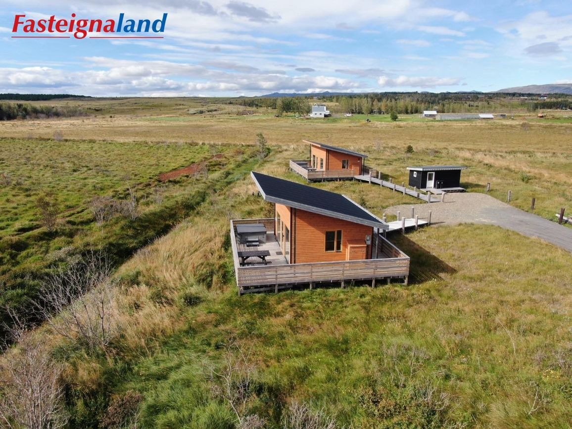 Reynivellir í landi Reykjavalla, Bláskógabyggð.Fasteignaland kynnir: Reynivelli 11 í landi Reykjavalla. Um ræða sumarhús 46,2 fm byggt árið 2022 og gestahús 30 fm byggt árið 2022 eða samtals 76,2 fm samkvæmt Húsnæðis-og mannvirkjastofnun. Á lóðinni er einnig ca. 15 fm hús byggt árið 2022. Í þessum húsum er hitaveita og tveir heitir pottar. Góð aðkoma og næg bílastæði. Lýsing á eign nr. 1: Hús skráð gestahús 30 fm. Komið inn alrými/stofu með parketi á gólfi. Herbergi með parketi á gólfi. Baðherbergi með flísum á gólfi og fíbo plötum á veggjum, viðarinnréttingu og „walk in“ sturtu. Eldhús og stofa í sama rými L-laga með góðri lofhæð. Viðarinnréttingu og sambyggðri eldavél með kermik helluborði/uppþvottavél.