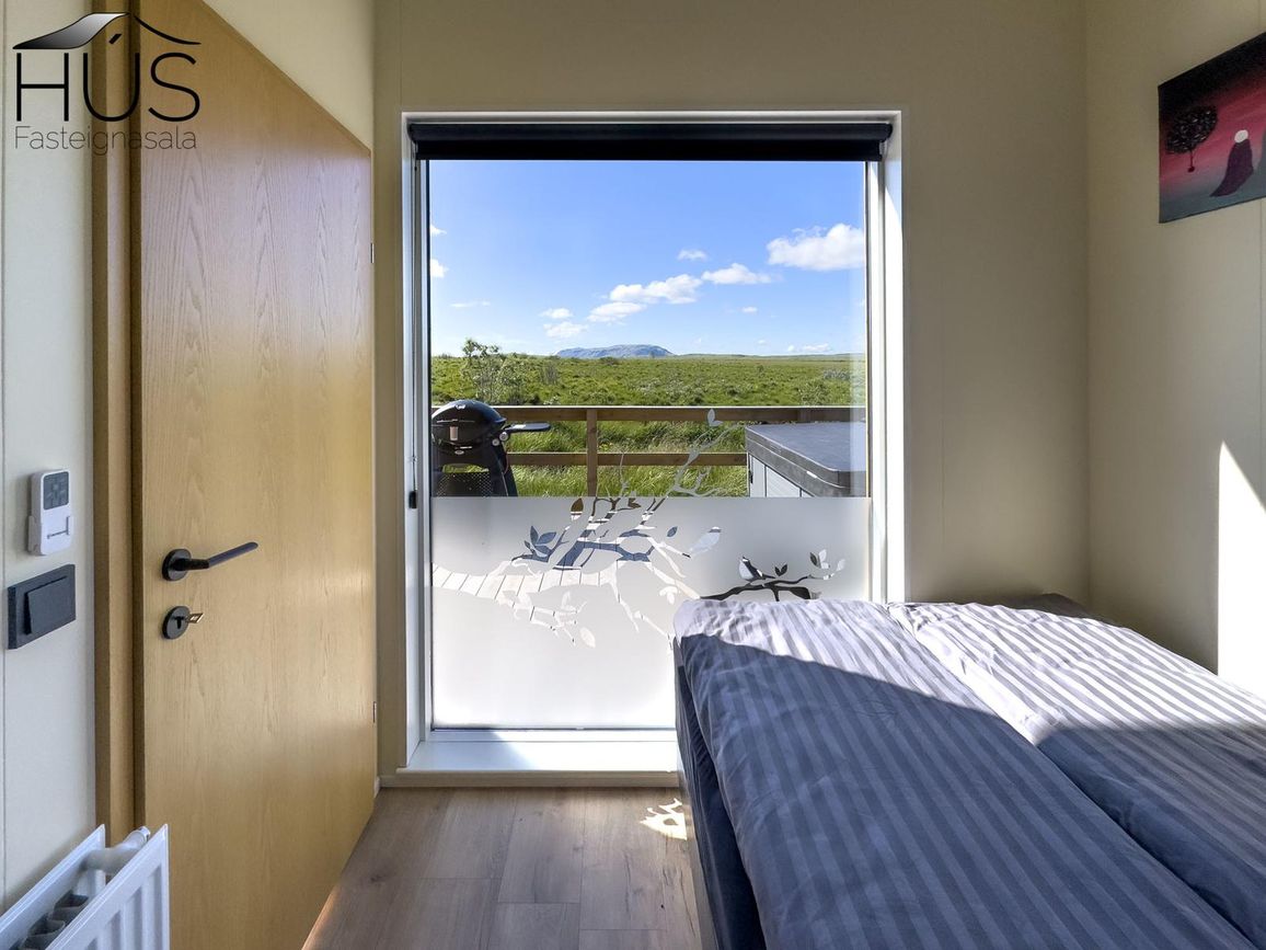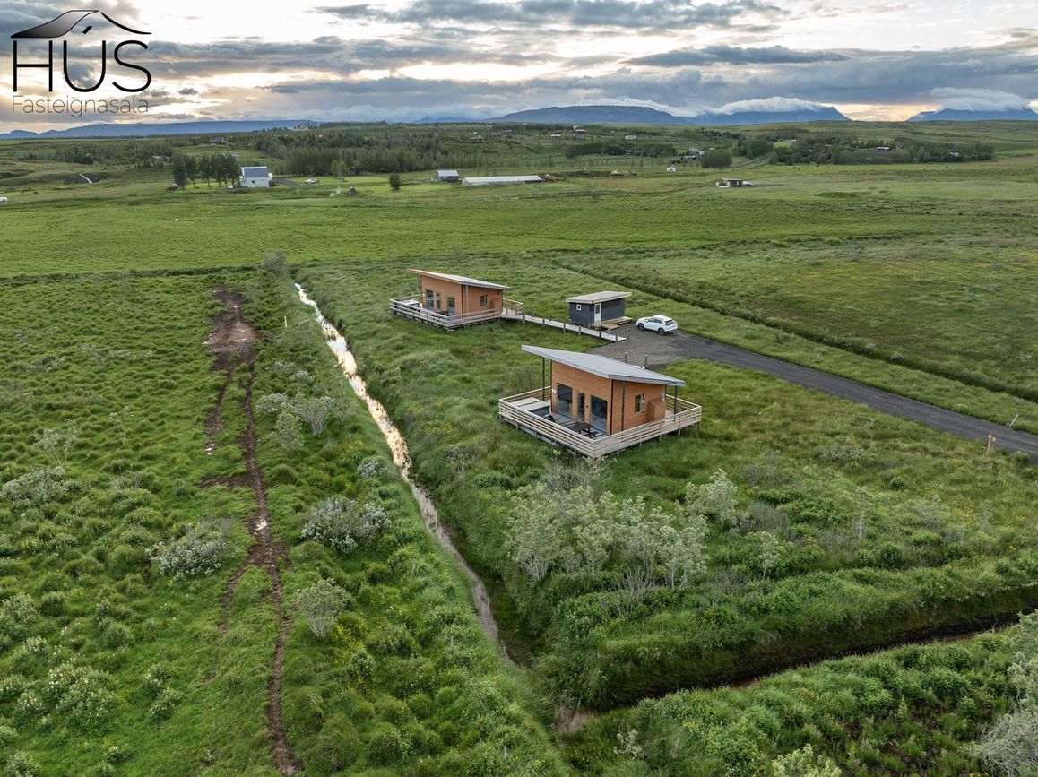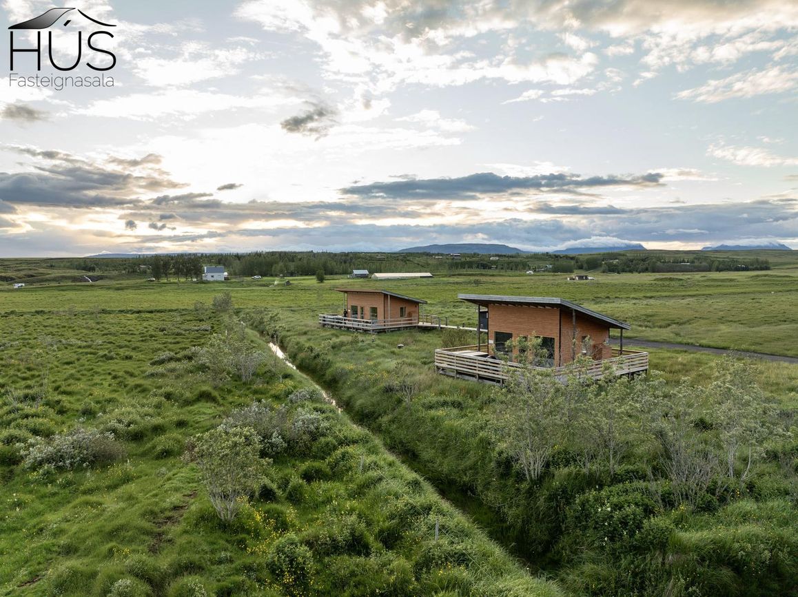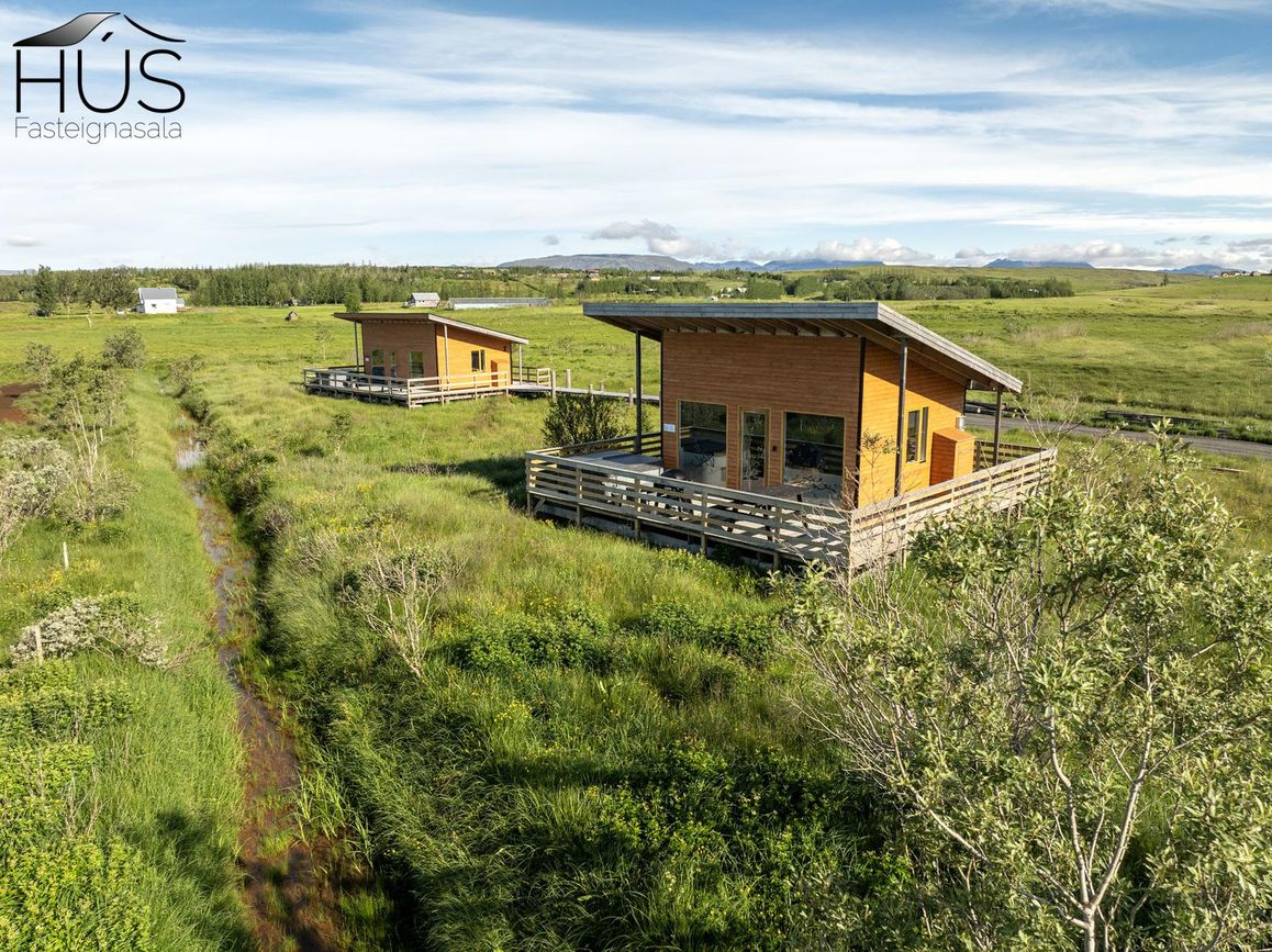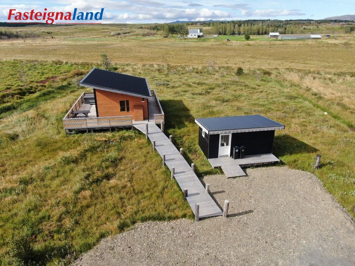 Reynivellir í landi Reykjavalla, Bláskógabyggð.Fasteignaland kynnir: Reynivelli 11 í landi Reykjavalla. Um ræða sumarhús 46,2 fm byggt árið 2022 og gestahús 30 fm byggt árið 2022 eða samtals 76,2 fm samkvæmt Húsnæðis-og mannvirkjastofnun. Á lóðinni er einnig ca. 15 fm hús byggt árið 2022. Í þessum húsum er hitaveita og tveir heitir pottar. Góð aðkoma og næg bílastæði. Lýsing á eign nr. 1: Hús skráð gestahús 30 fm. Komið inn alrými/stofu með parketi á gólfi. Herbergi með parketi á gólfi. Baðherbergi með flísum á gólfi og fíbo plötum á veggjum, viðarinnréttingu og „walk in“ sturtu. Eldhús og stofa í sama rými L-laga með góðri lofhæð. Viðarinnréttingu og sambyggðri eldavél með kermik helluborði/uppþvottavél.