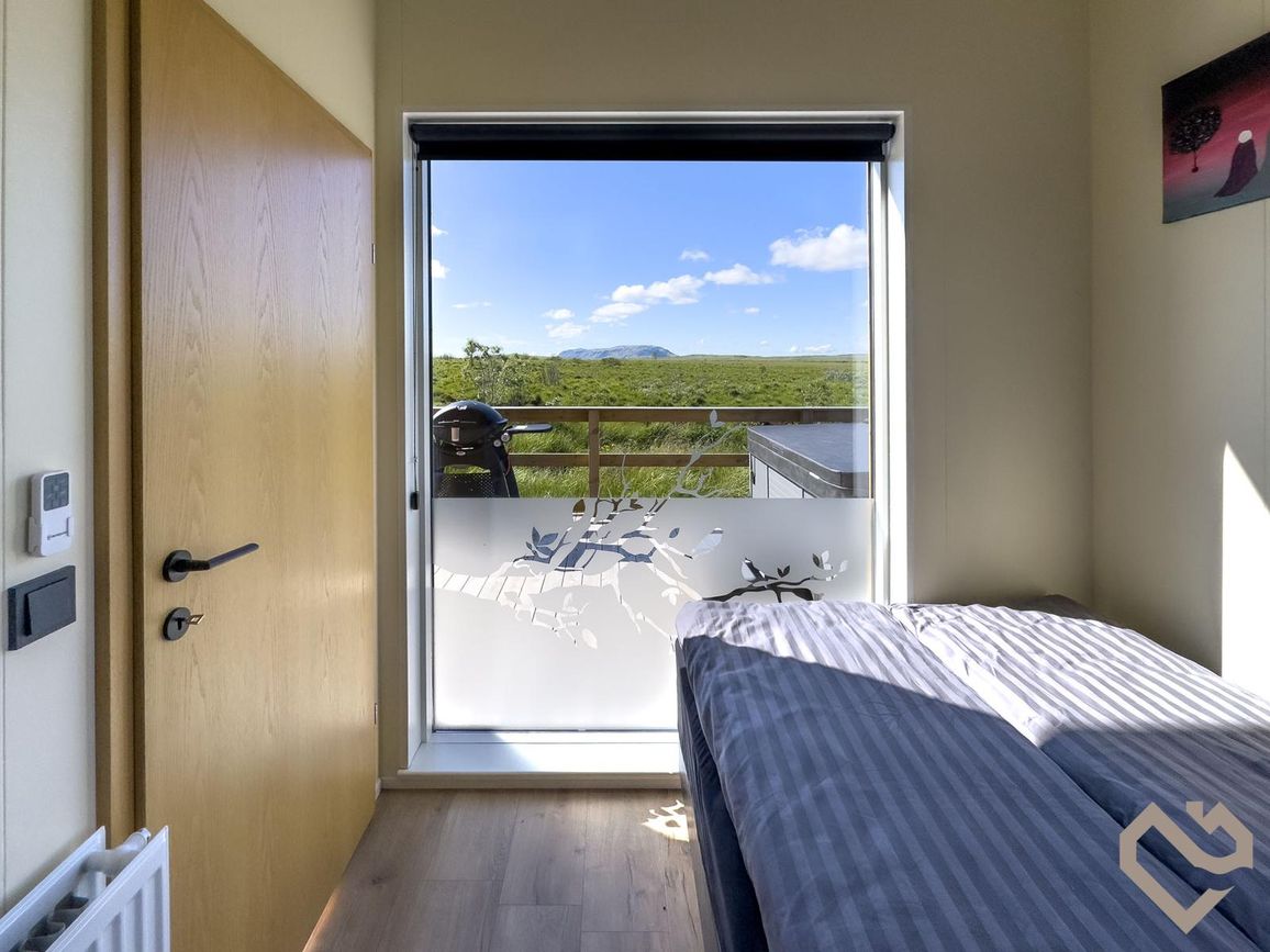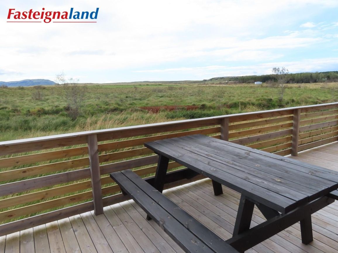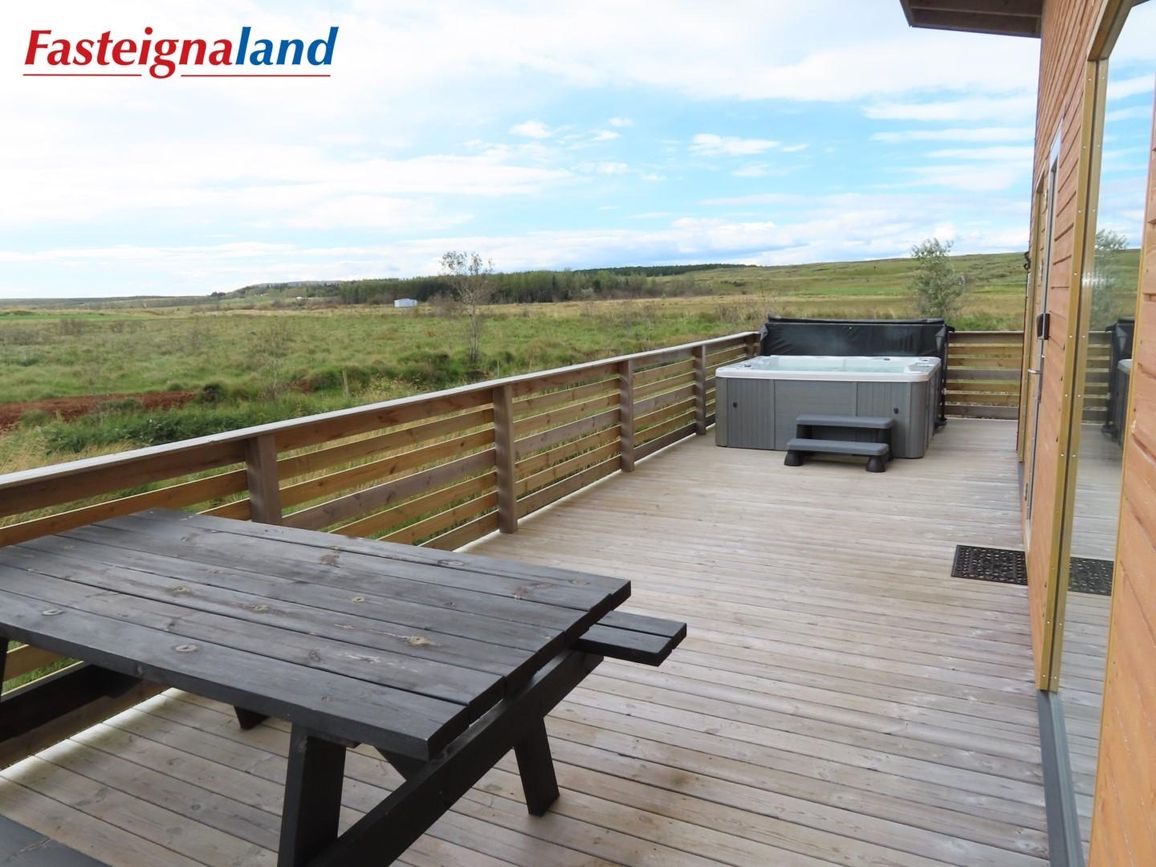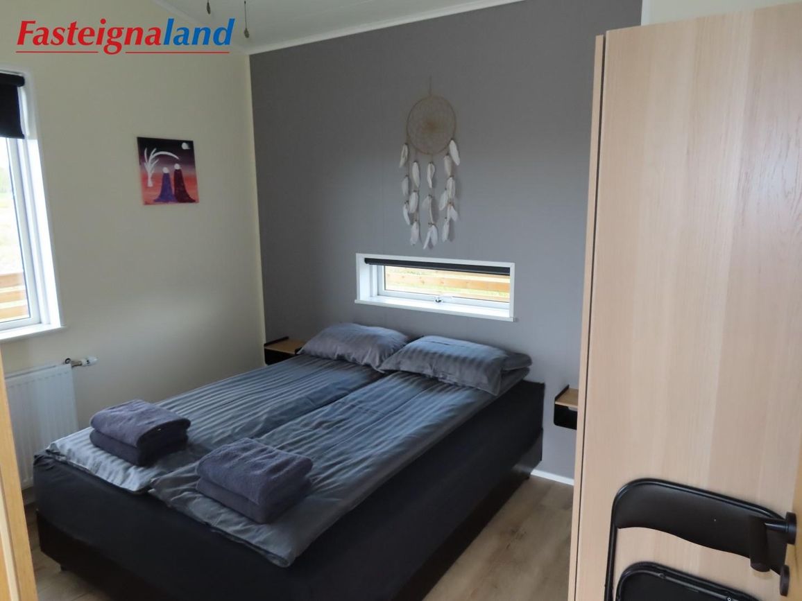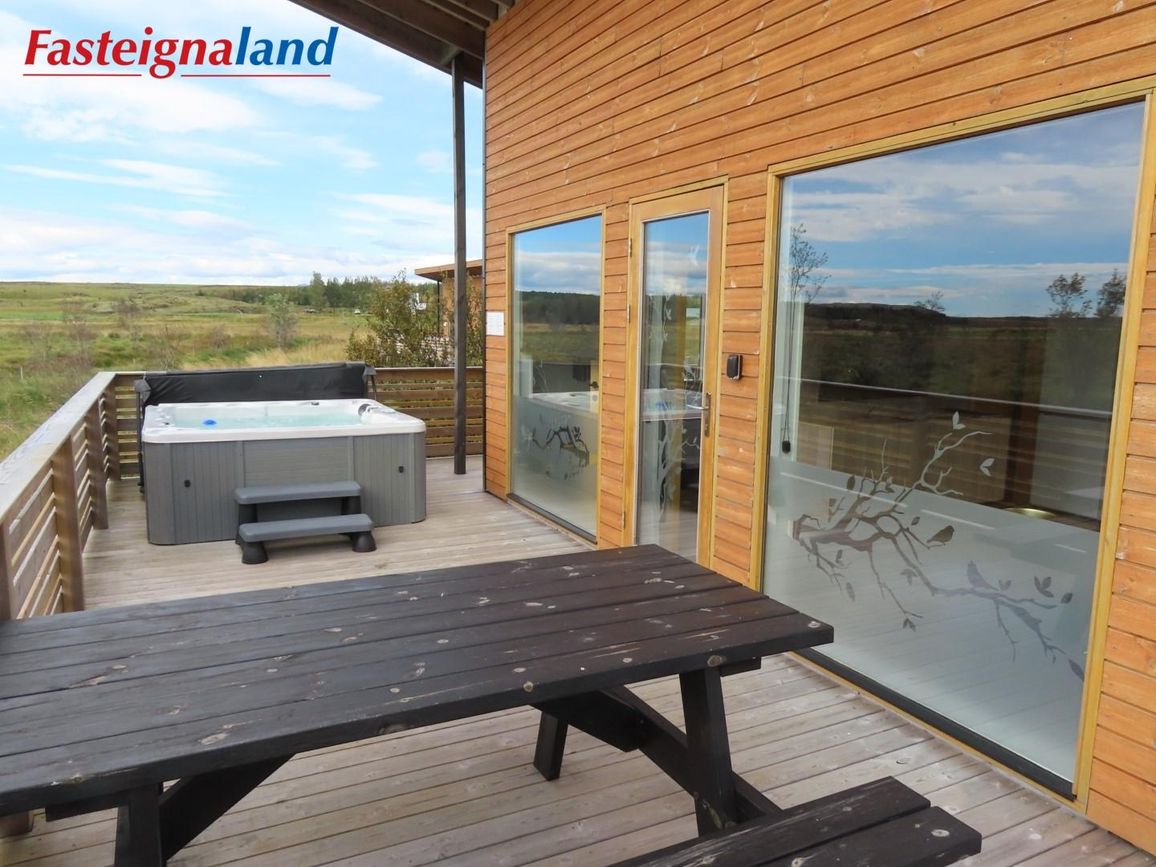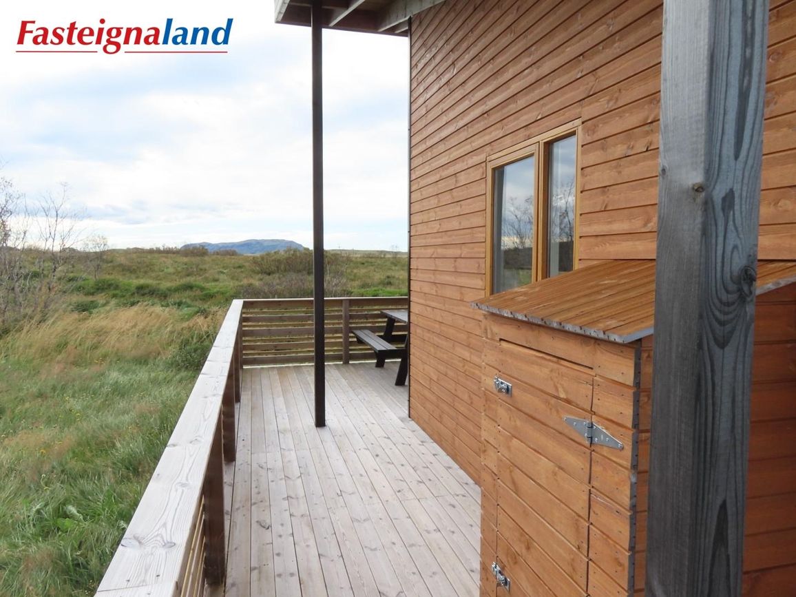 Reynivellir í landi Reykjavalla, Bláskógabyggð.Fasteignaland kynnir: Reynivelli 11 í landi Reykjavalla. Um ræða sumarhús 46,2 fm byggt árið 2022 og gestahús 30 fm byggt árið 2022 eða samtals 76,2 fm samkvæmt Húsnæðis-og mannvirkjastofnun. Á lóðinni er einnig ca. 15 fm hús byggt árið 2022. Í þessum húsum er hitaveita og tveir heitir pottar. Góð aðkoma og næg bílastæði. Lýsing á eign nr. 1: Hús skráð gestahús 30 fm. Komið inn alrými/stofu með parketi á gólfi. Herbergi með parketi á gólfi. Baðherbergi með flísum á gólfi og fíbo plötum á veggjum, viðarinnréttingu og „walk in“ sturtu. Eldhús og stofa í sama rými L-laga með góðri lofhæð. Viðarinnréttingu og sambyggðri eldavél með kermik helluborði/uppþvottavél.