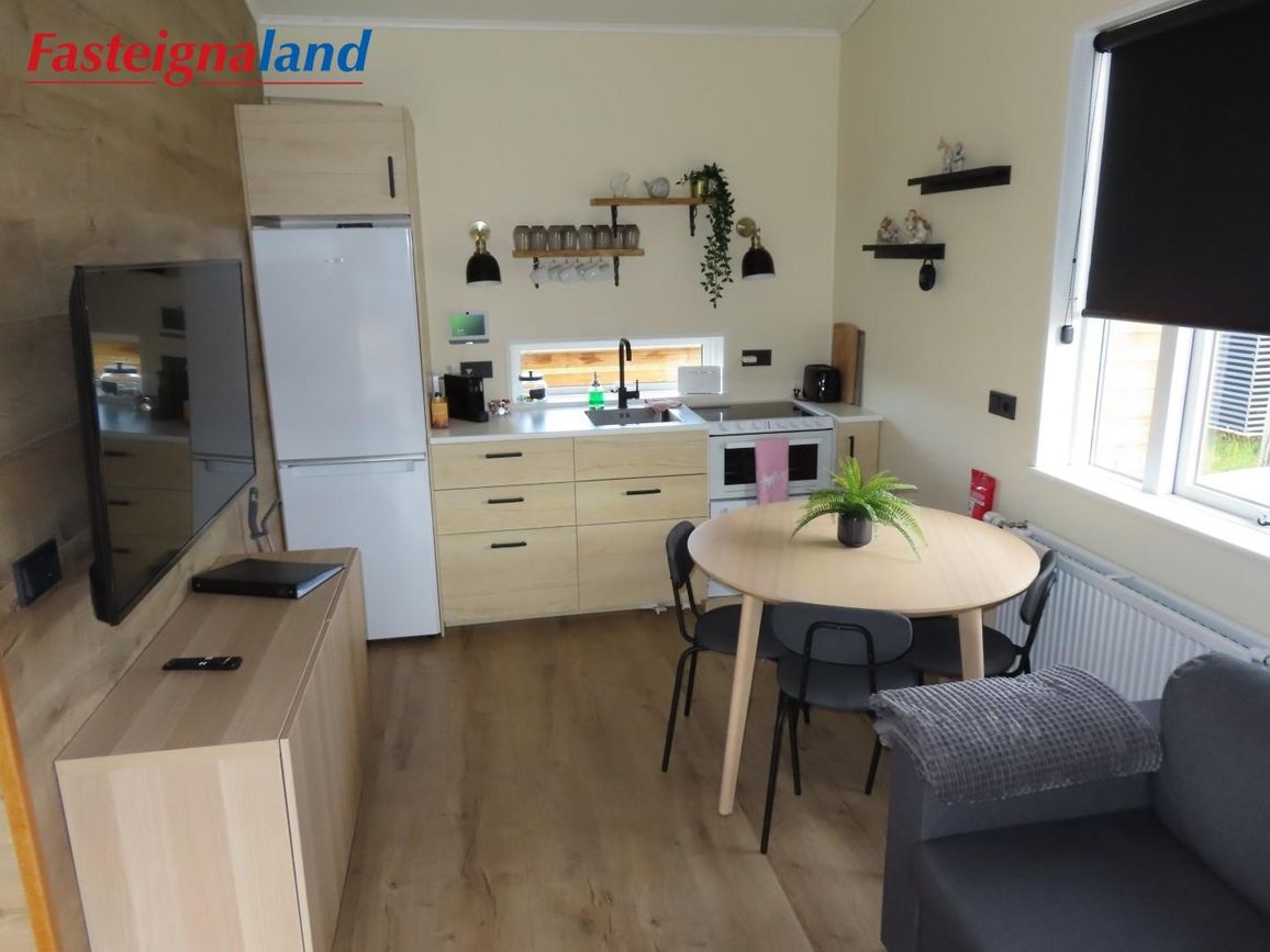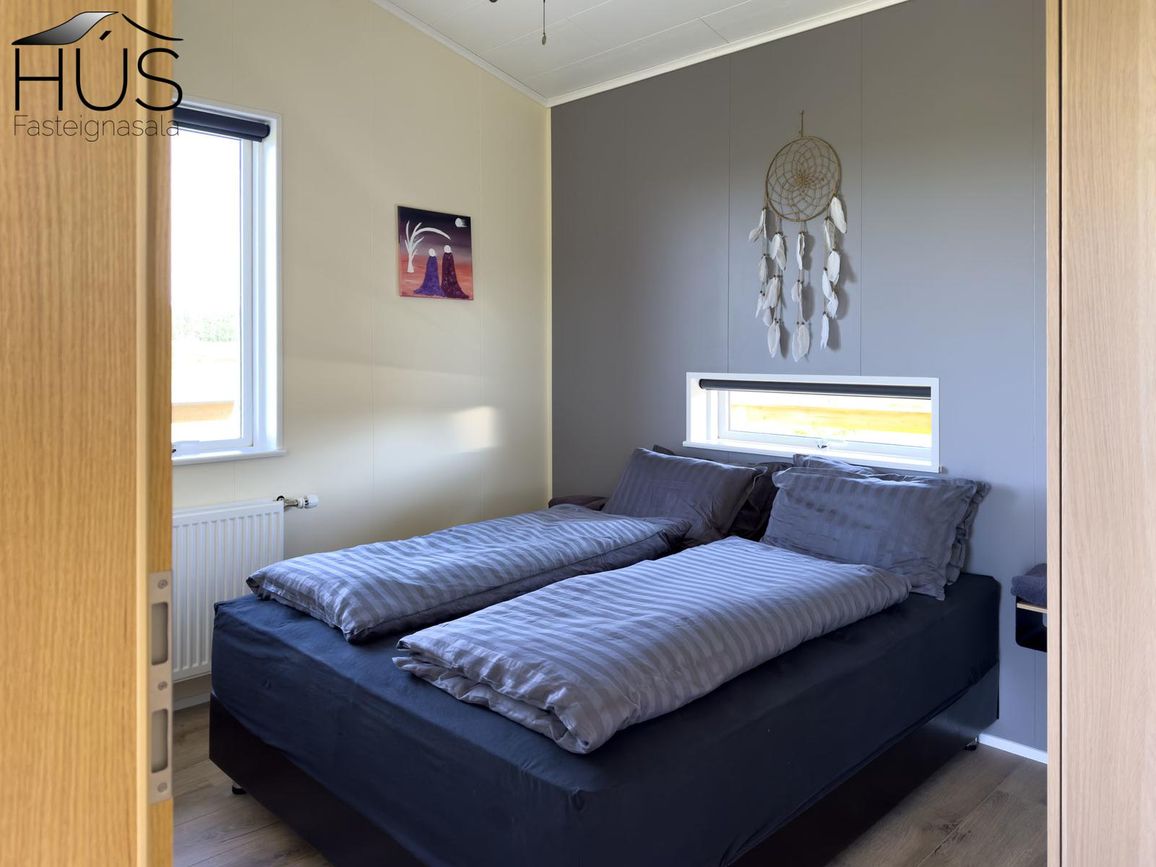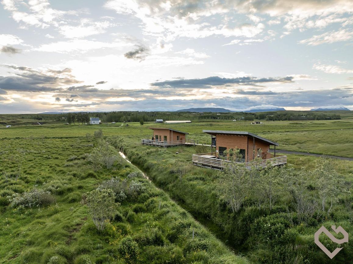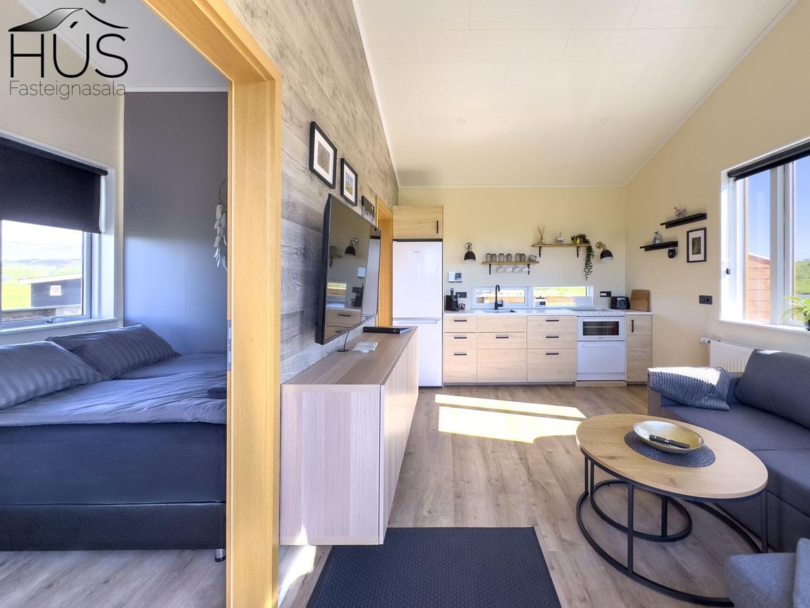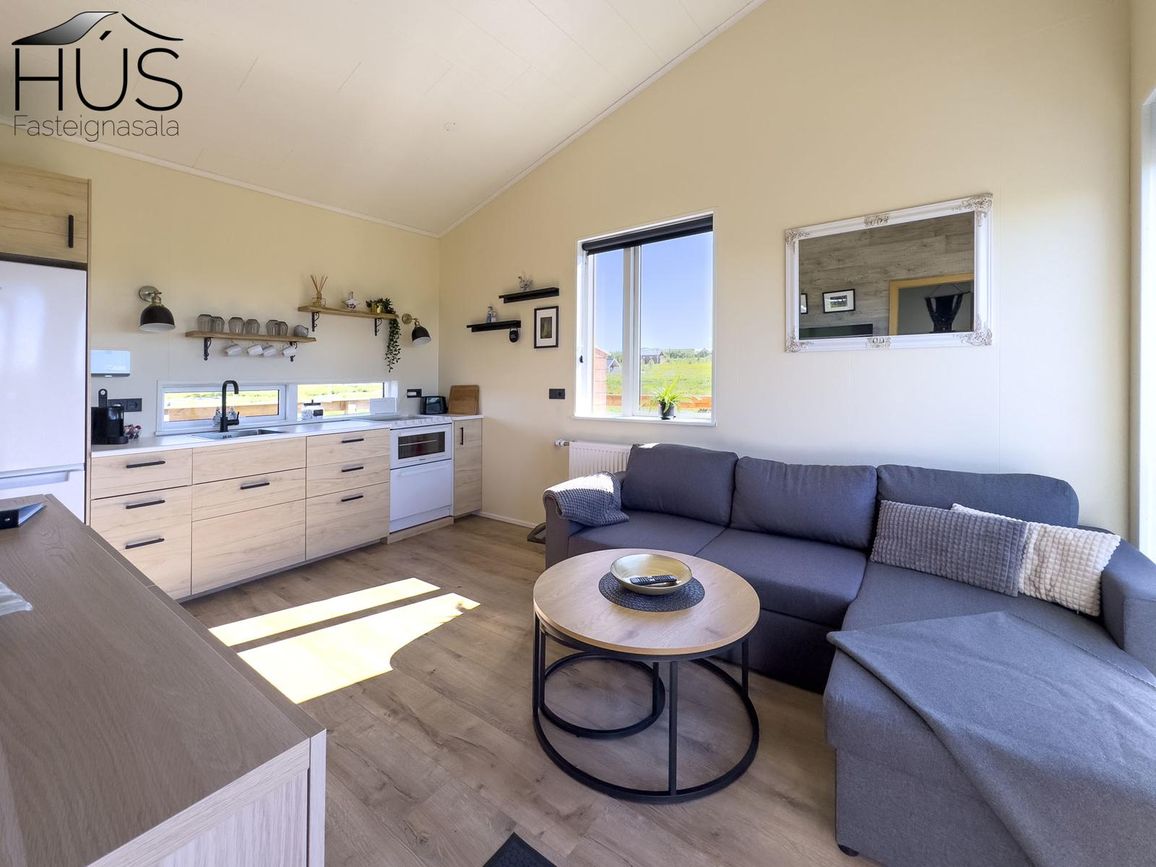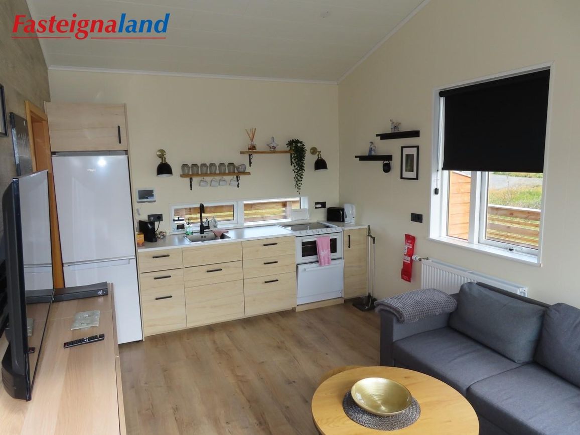 Reynivellir í landi Reykjavalla, Bláskógabyggð.Fasteignaland kynnir: Reynivelli 11 í landi Reykjavalla. Um ræða sumarhús 46,2 fm byggt árið 2022 og gestahús 30 fm byggt árið 2022 eða samtals 76,2 fm samkvæmt Húsnæðis-og mannvirkjastofnun. Á lóðinni er einnig ca. 15 fm hús byggt árið 2022. Í þessum húsum er hitaveita og tveir heitir pottar. Góð aðkoma og næg bílastæði. Lýsing á eign nr. 1: Hús skráð gestahús 30 fm. Komið inn alrými/stofu með parketi á gólfi. Herbergi með parketi á gólfi. Baðherbergi með flísum á gólfi og fíbo plötum á veggjum, viðarinnréttingu og „walk in“ sturtu. Eldhús og stofa í sama rými L-laga með góðri lofhæð. Viðarinnréttingu og sambyggðri eldavél með kermik helluborði/uppþvottavél.