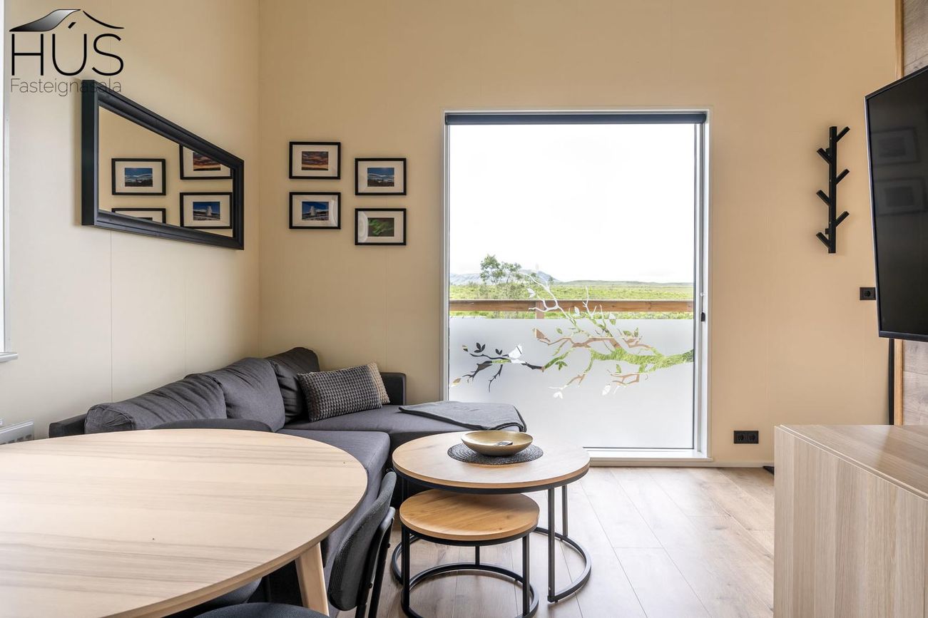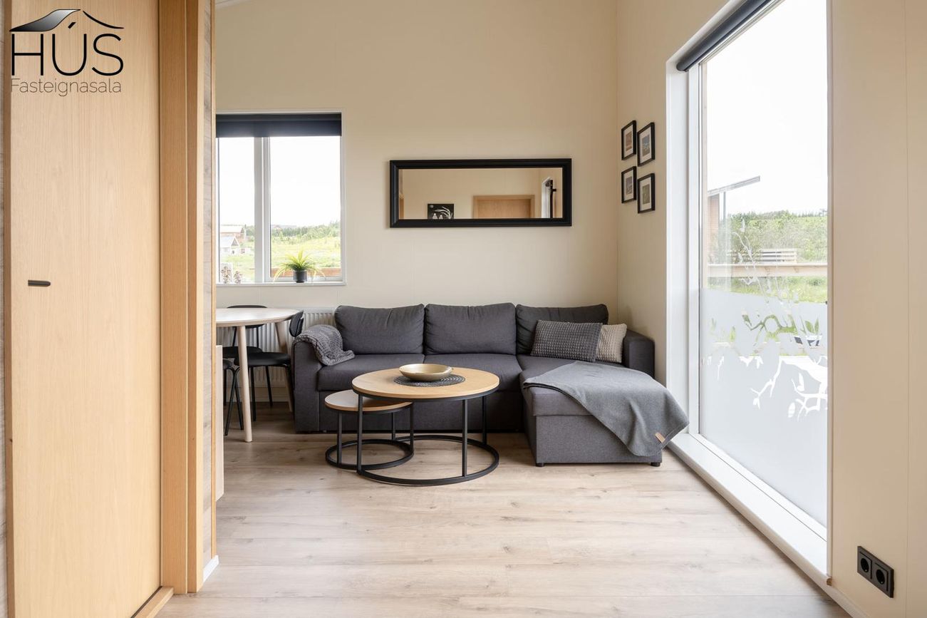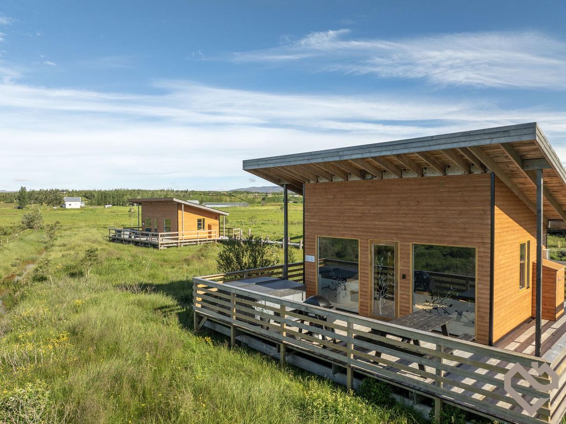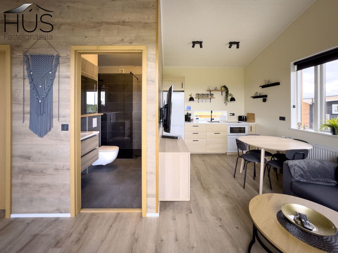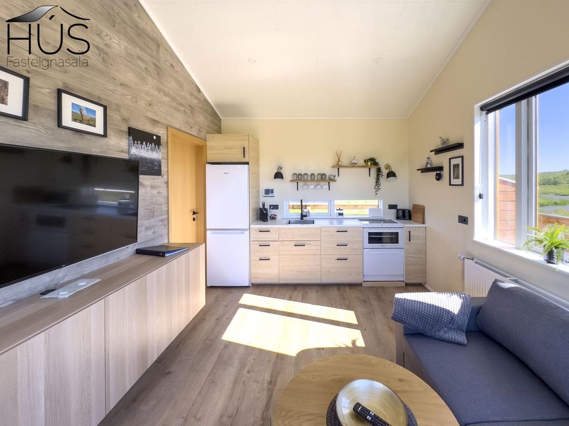 Reynivellir í landi Reykjavalla, Bláskógabyggð.Fasteignaland kynnir: Reynivelli 11 í landi Reykjavalla. Um ræða sumarhús 46,2 fm byggt árið 2022 og gestahús 30 fm byggt árið 2022 eða samtals 76,2 fm samkvæmt Húsnæðis-og mannvirkjastofnun. Á lóðinni er einnig ca. 15 fm hús byggt árið 2022. Í þessum húsum er hitaveita og tveir heitir pottar. Góð aðkoma og næg bílastæði. Lýsing á eign nr. 1: Hús skráð gestahús 30 fm. Komið inn alrými/stofu með parketi á gólfi. Herbergi með parketi á gólfi. Baðherbergi með flísum á gólfi og fíbo plötum á veggjum, viðarinnréttingu og „walk in“ sturtu. Eldhús og stofa í sama rými L-laga með góðri lofhæð. Viðarinnréttingu og sambyggðri eldavél með kermik helluborði/uppþvottavél.