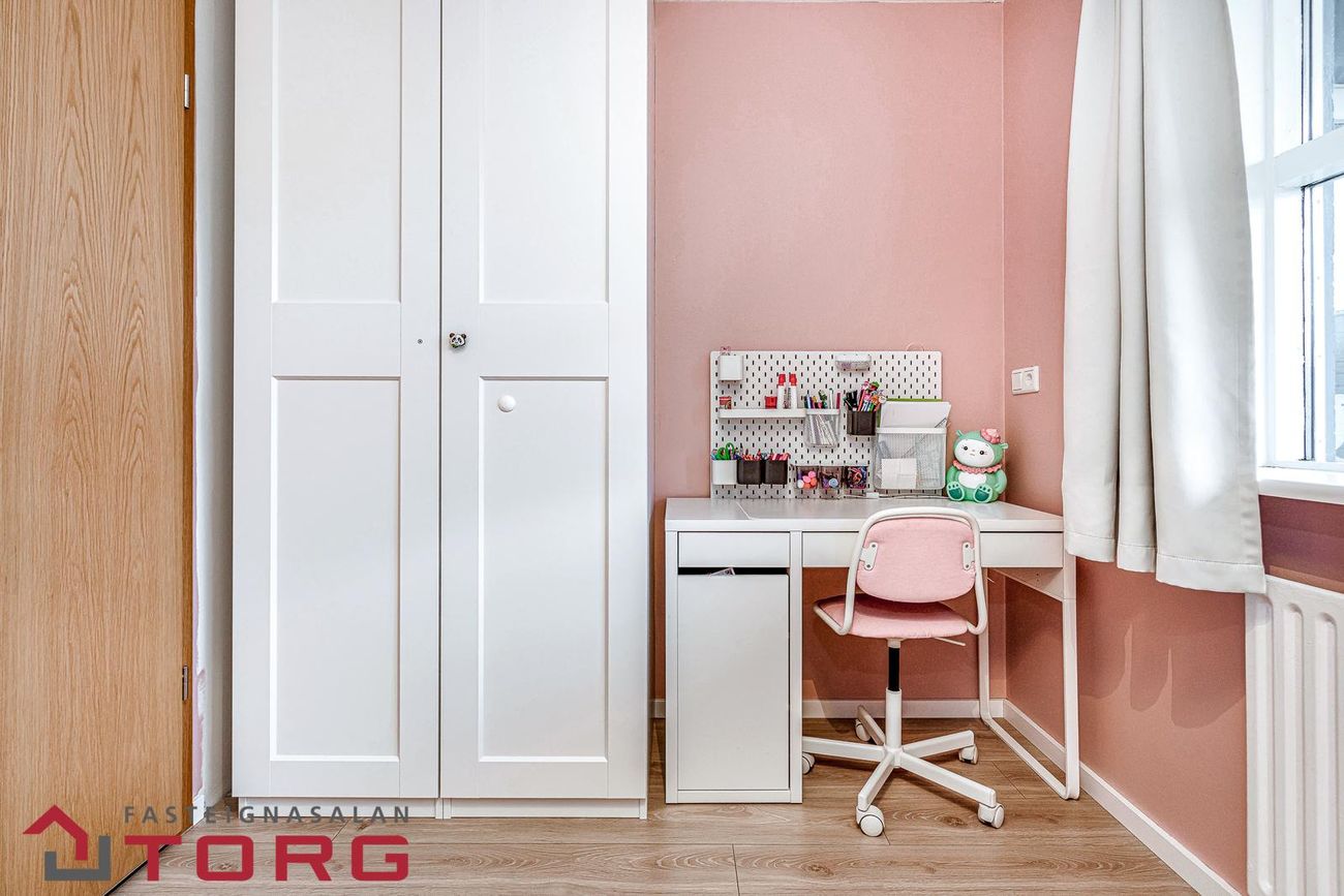 Svefnherbergi (II) er rúmgott parketlagt barnaherbergi með fataskáp.