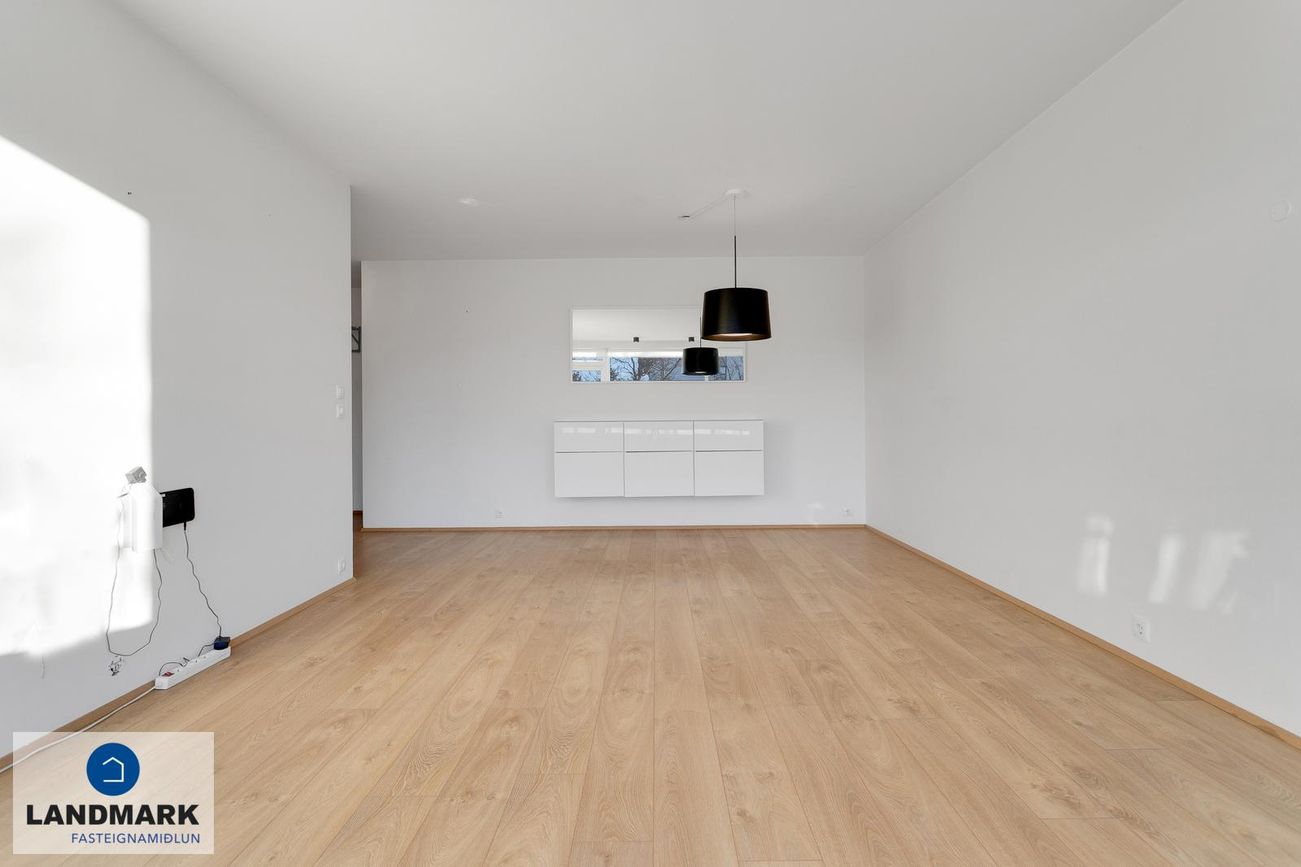Stofa / borðstofa: Rúmgóð, björt og opin stofa sem býður uppá ýmsa möguleika. Úr stofu er útgengt á rúmgóðar suðursvalir.