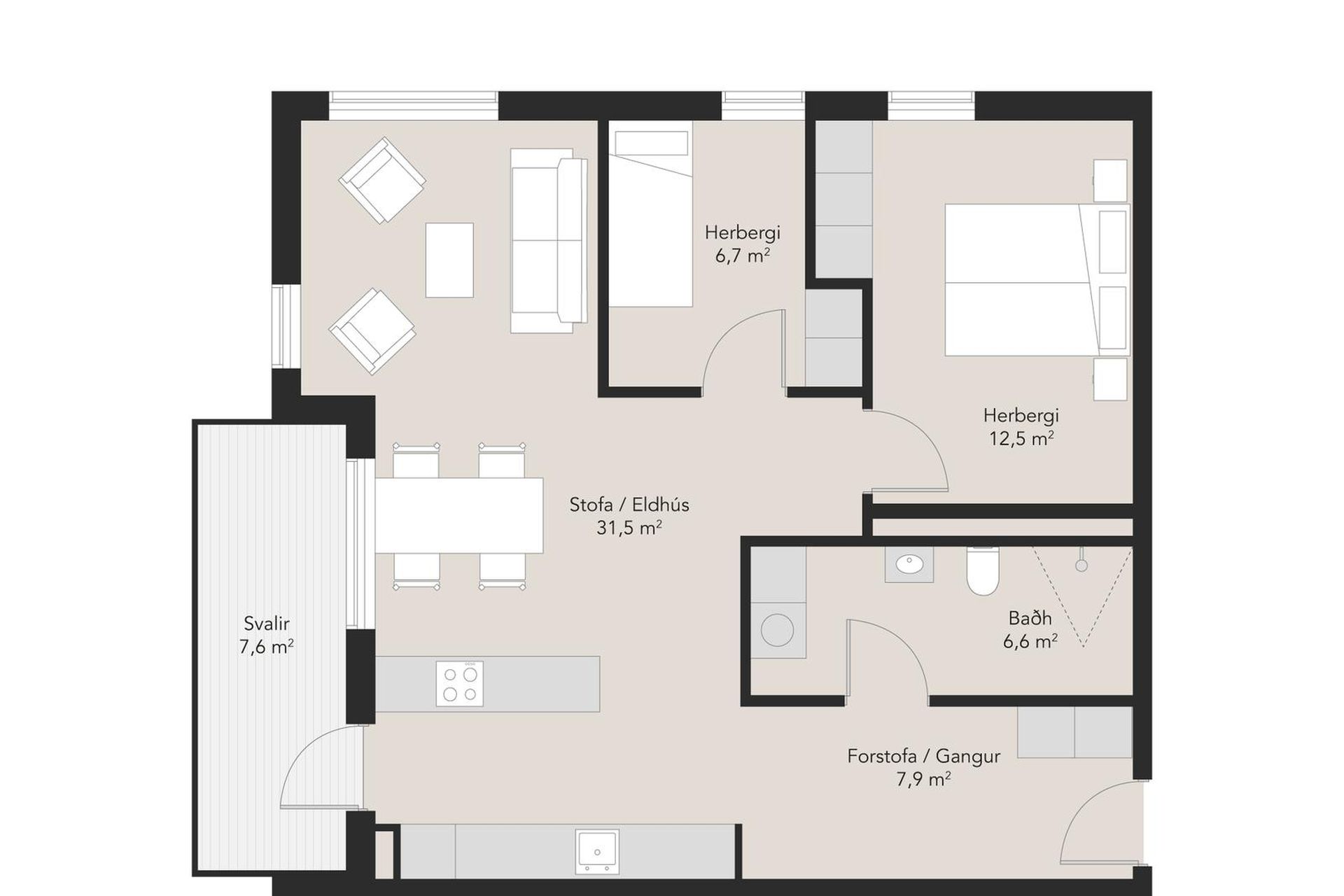 | 3 | 86,30 m² | 69.000.000 kr. 19. janúar 2024 | 69.000.000 kr. 21. mars 2024 |