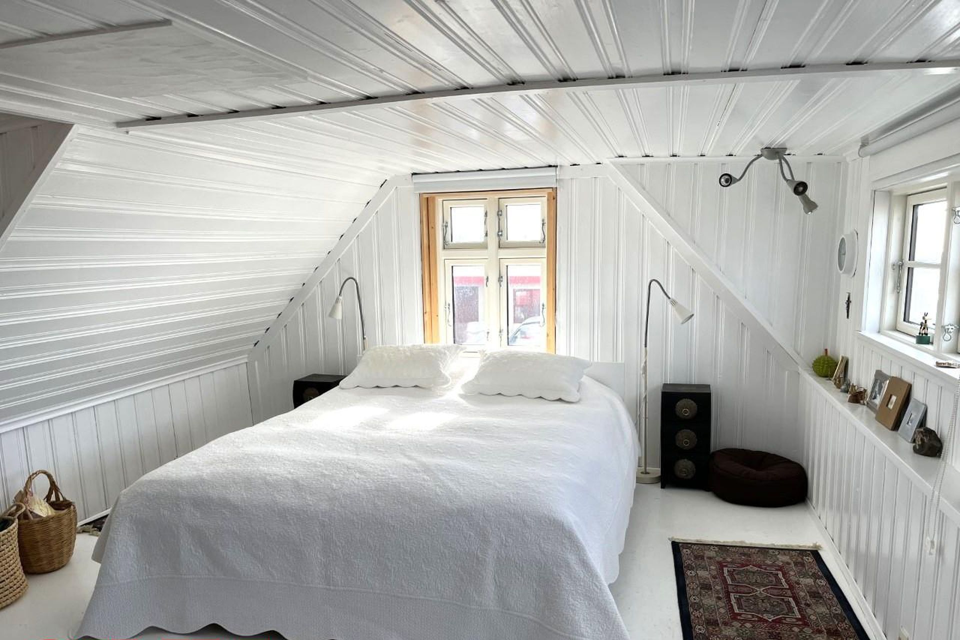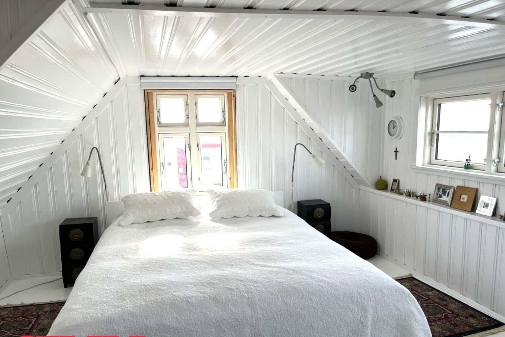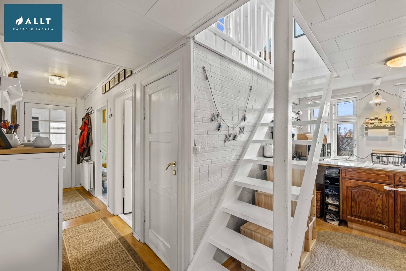 Frá eldhúsi liggur stigi upp í risið sem er eitt opið rými og hefur möguleika á að vera nýtt sem þriðja svefnrýmið eða stofa. Athugið að ekki er full lofthæð í risi.