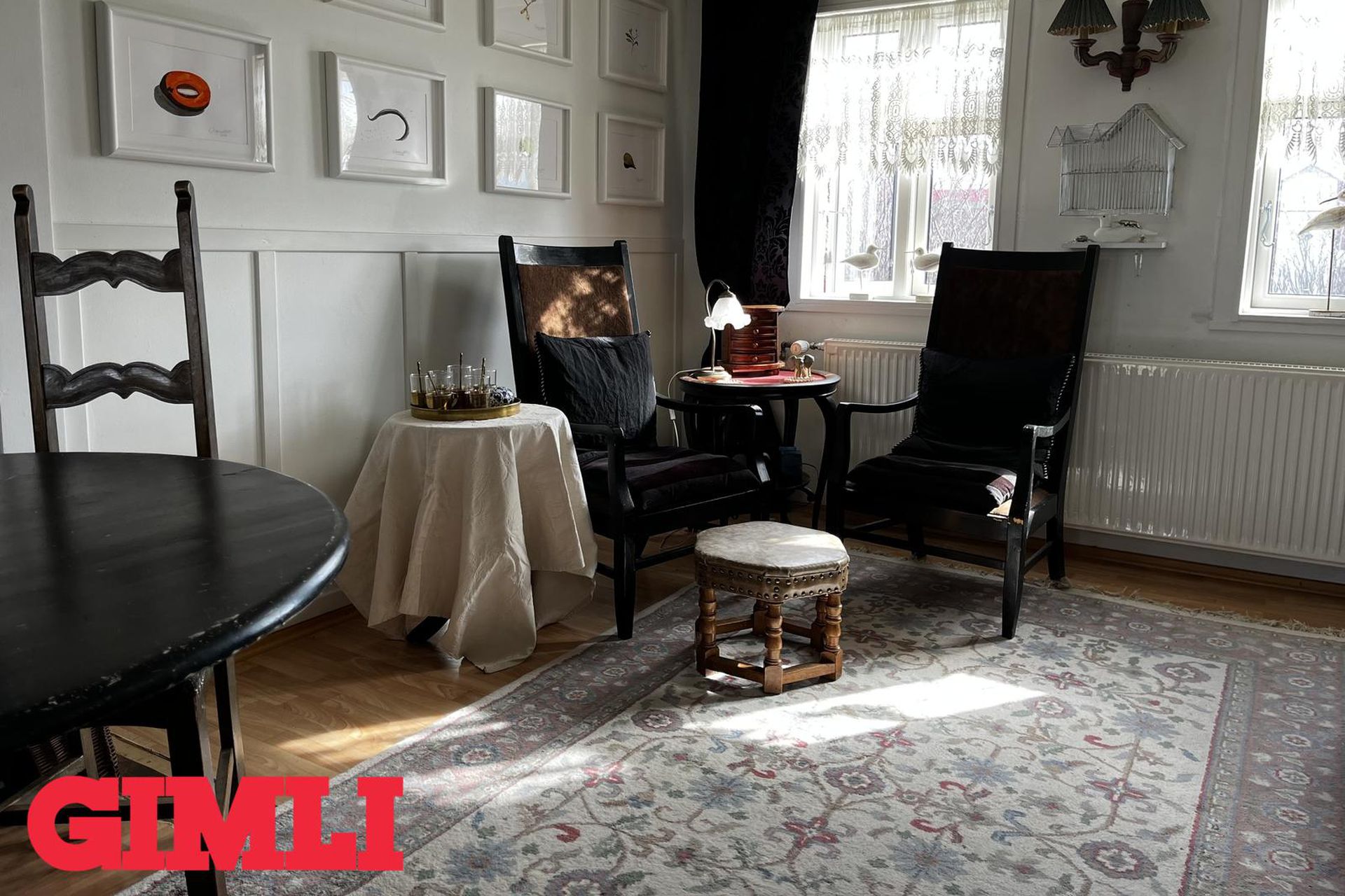 Gólfefni: Gólfborð í flestum rýmum, teppi í einu herbergi og dúkur á baðherbergi.