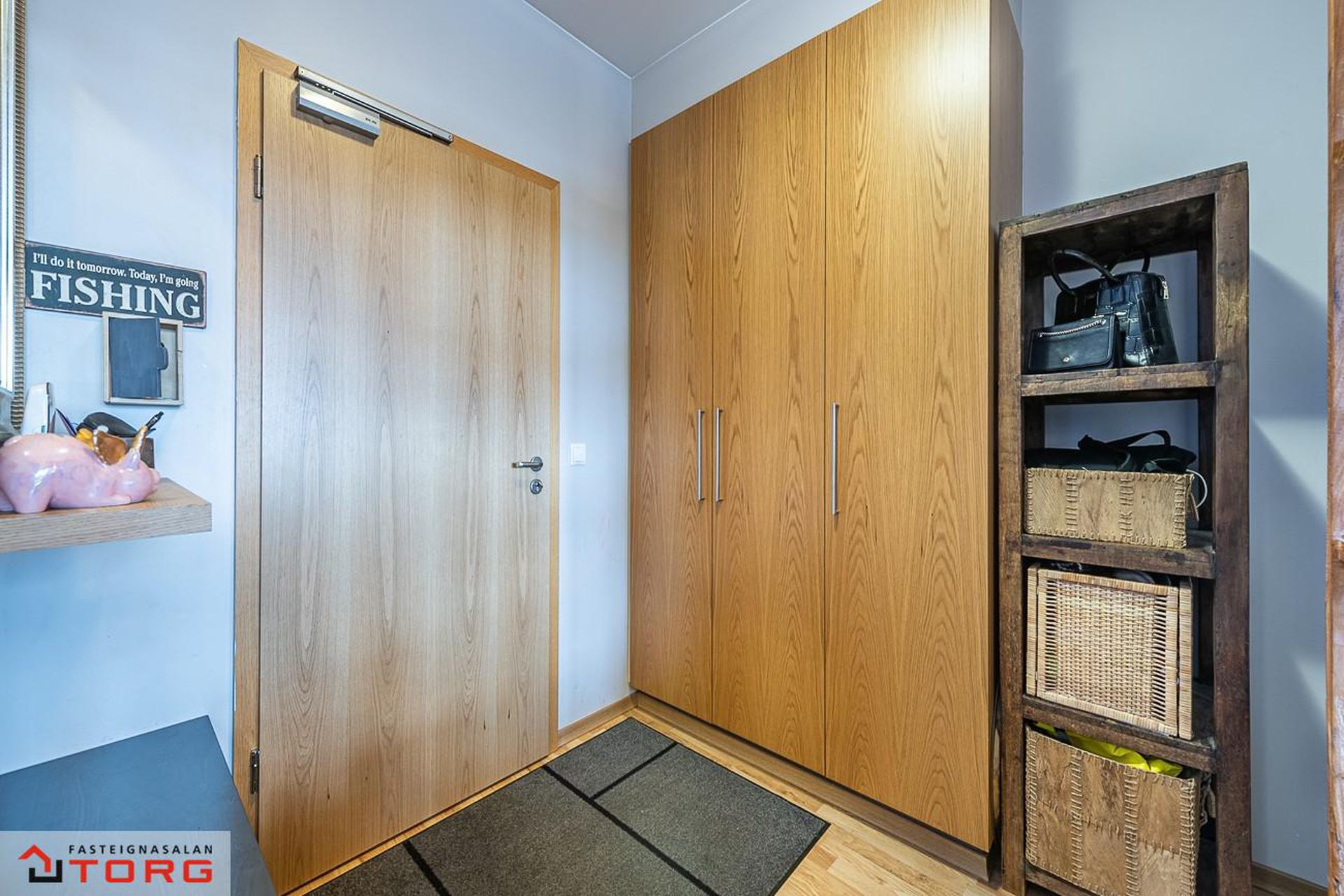 Forstofa: Nýlegt parket á gólfi, fataskápur.