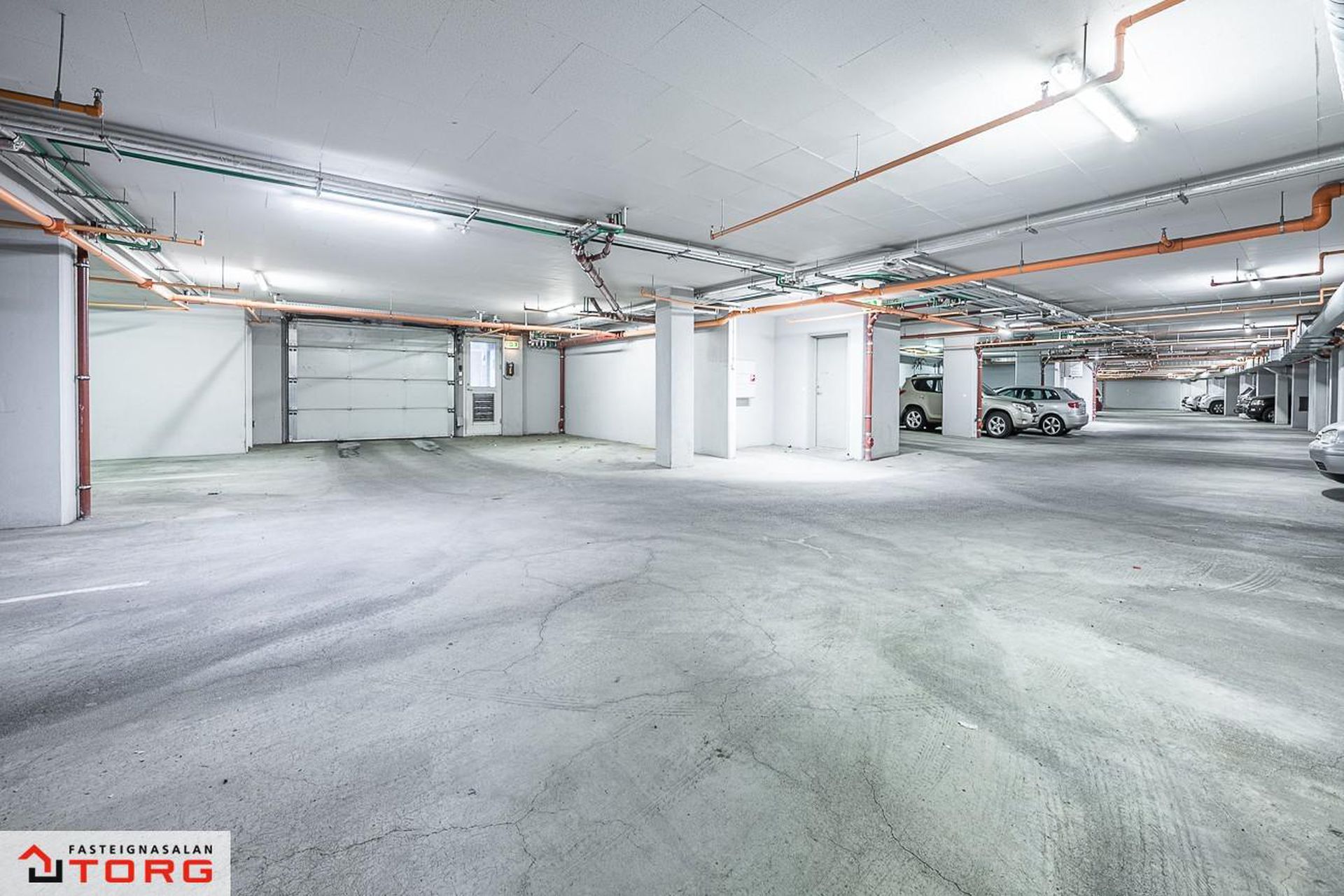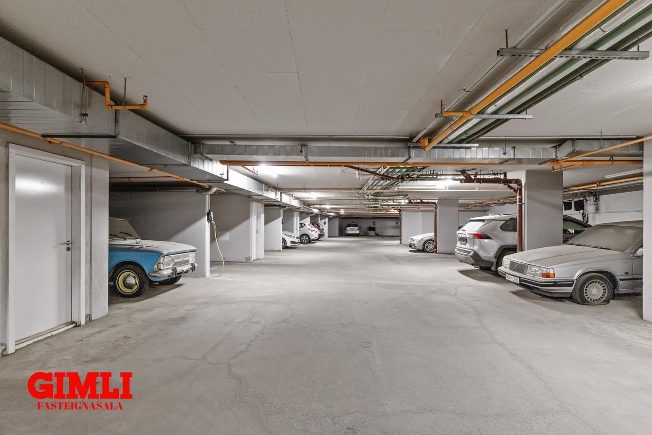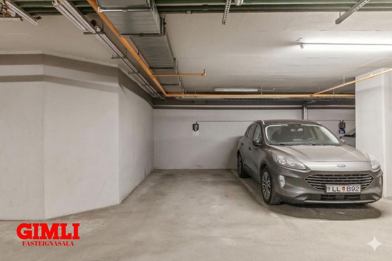 Sérmerkt stæði í bílageymslu.