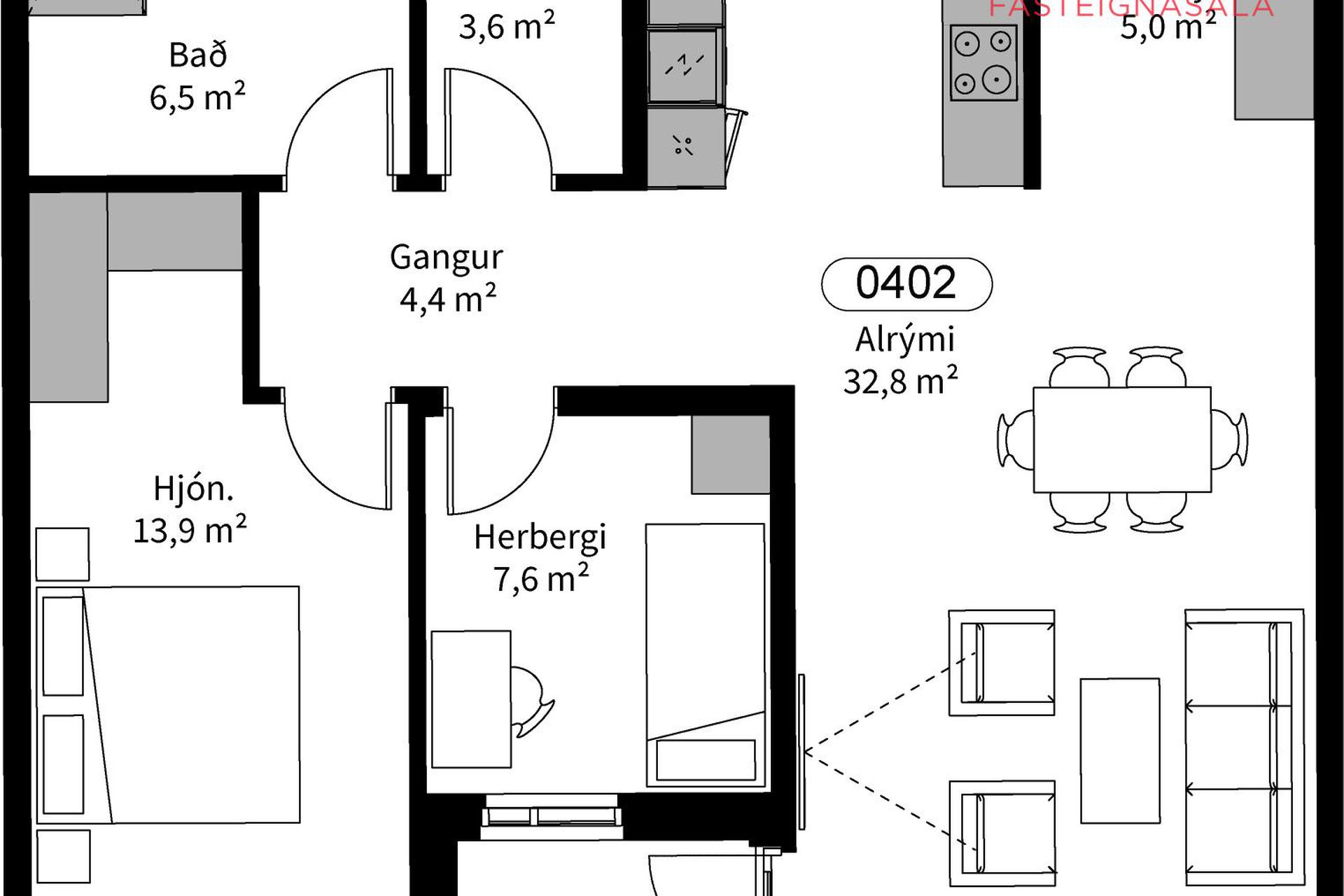 0401 ![]() | 76.900.000 kr. 26. mars 2024 | 68.900.000 kr. 12. apríl 2024 |