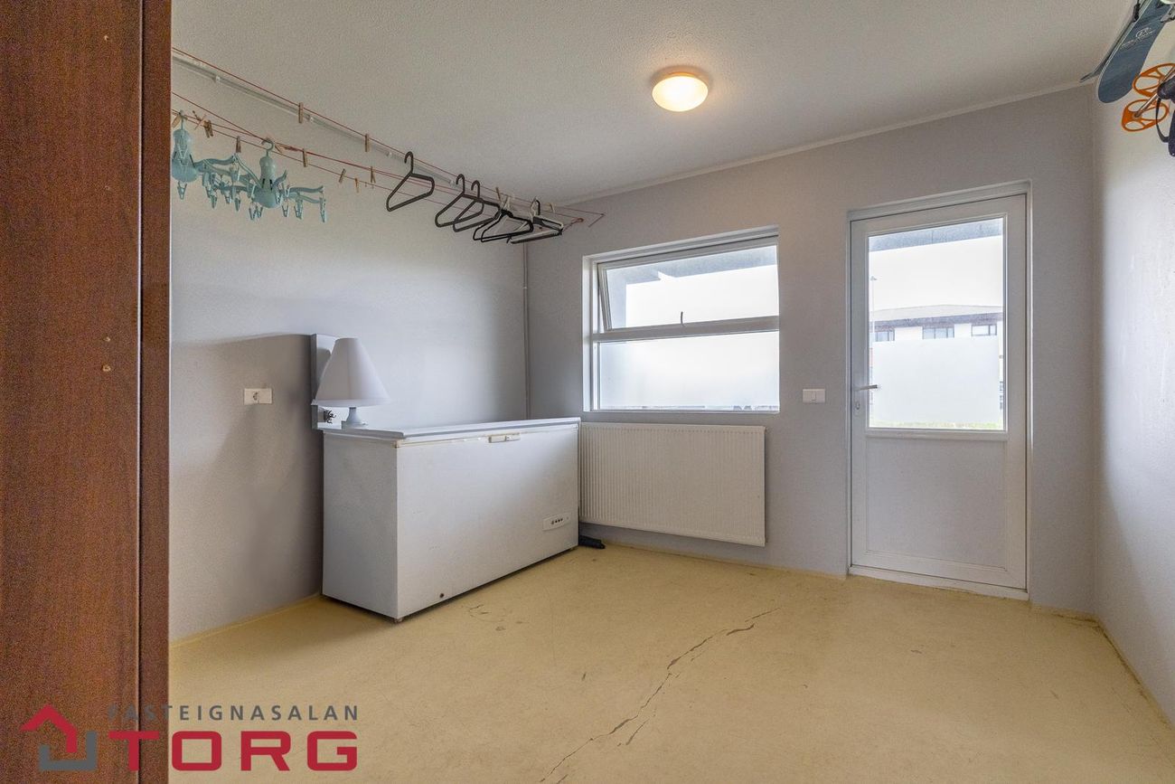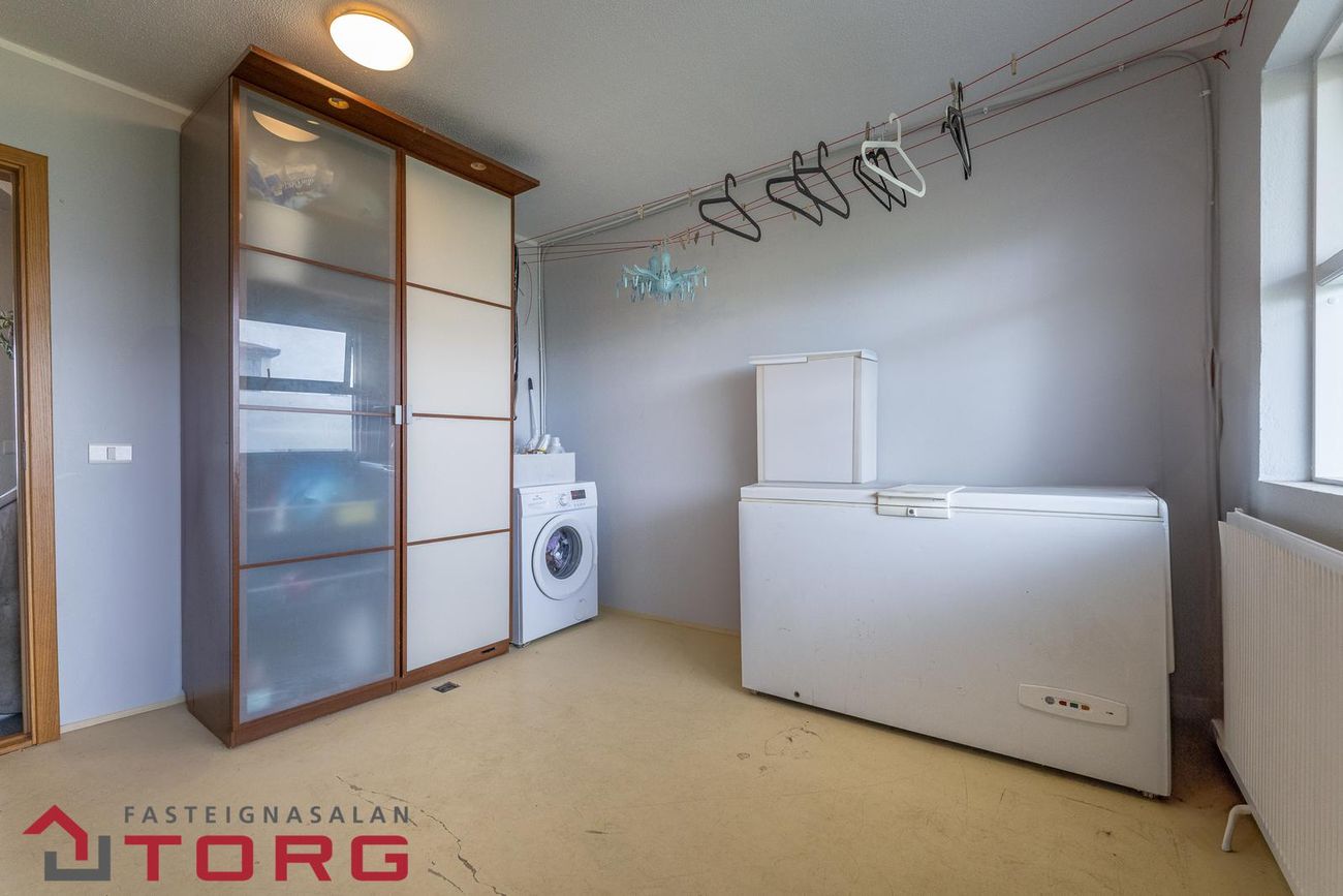 Inn af forstofu er mjög rúmgott þvottahús með útgengi í garð