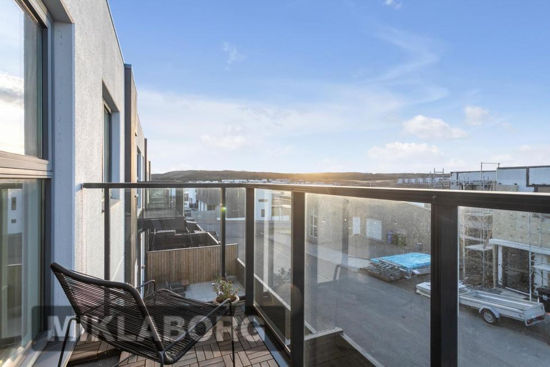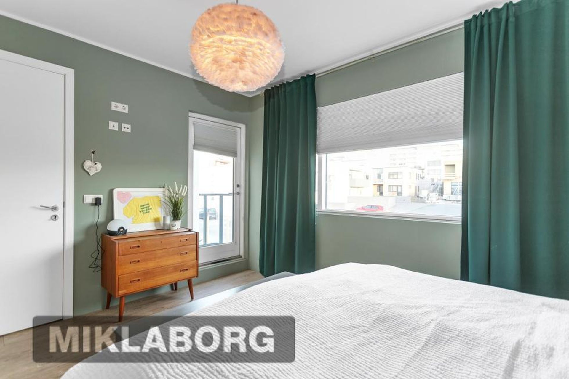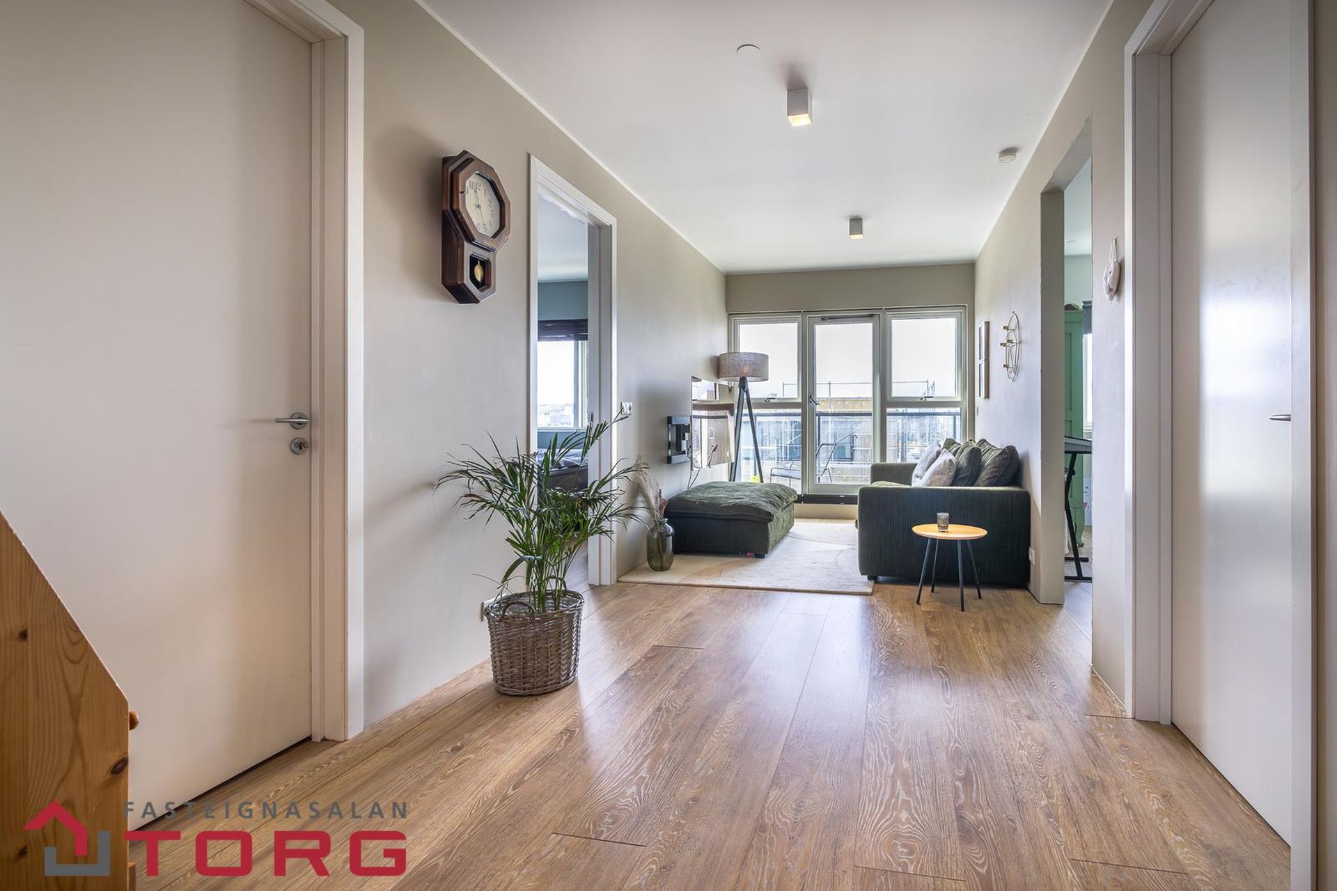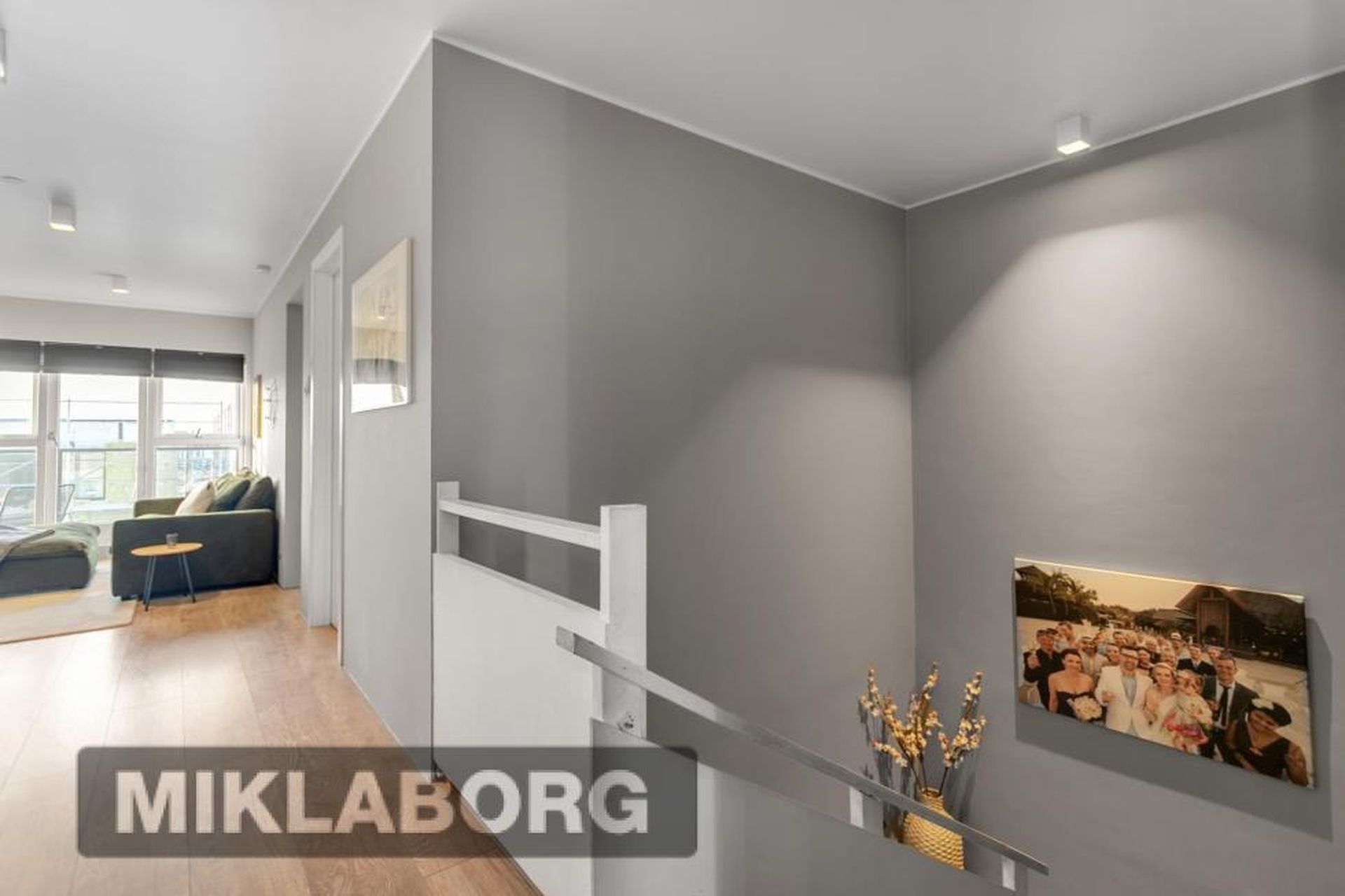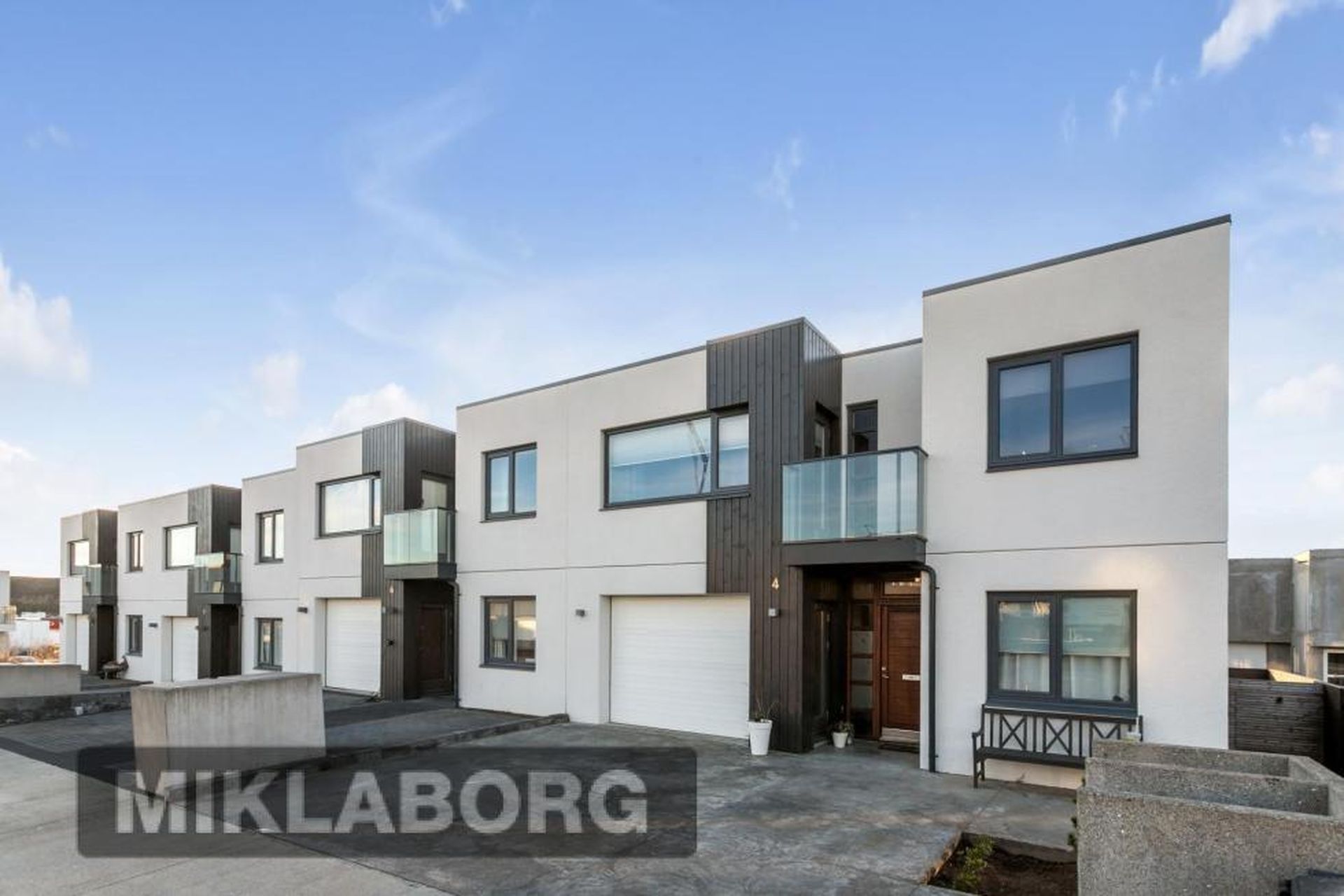 Efri hæð: Aukin lofthæð og sérsmíðaðar hvítar innihurðar. Viðarlitað harðparket á á gólfi í öllum rýmum nema baðherbergi og þvottahúsi.Svefnherbergi með fataherbergi II: Fallegt og rúmgott hjónaherbergi með fataherbergi. Viðarlitað harðparket á gólfi og útgengt á svalir til norð-austurs.