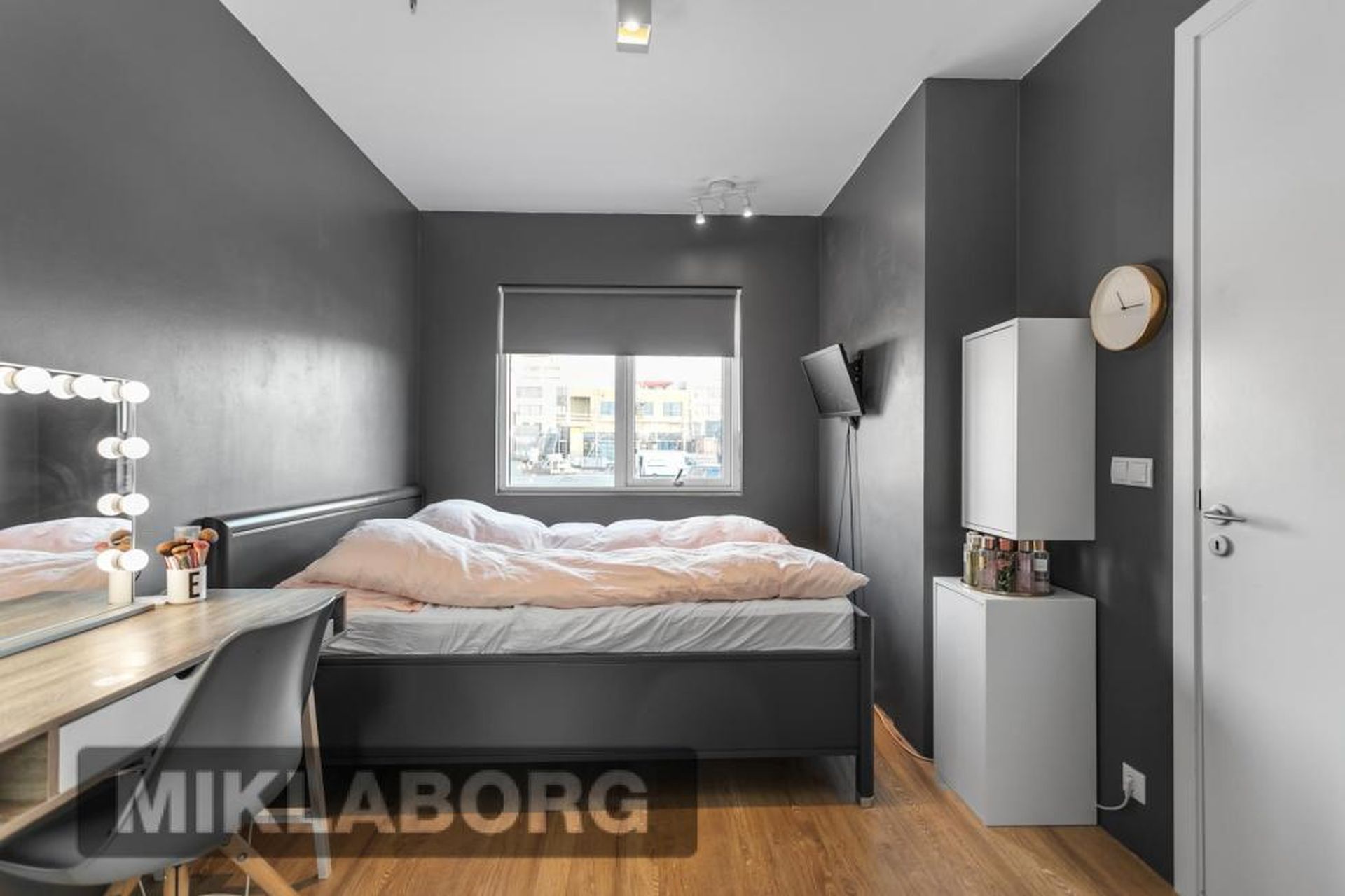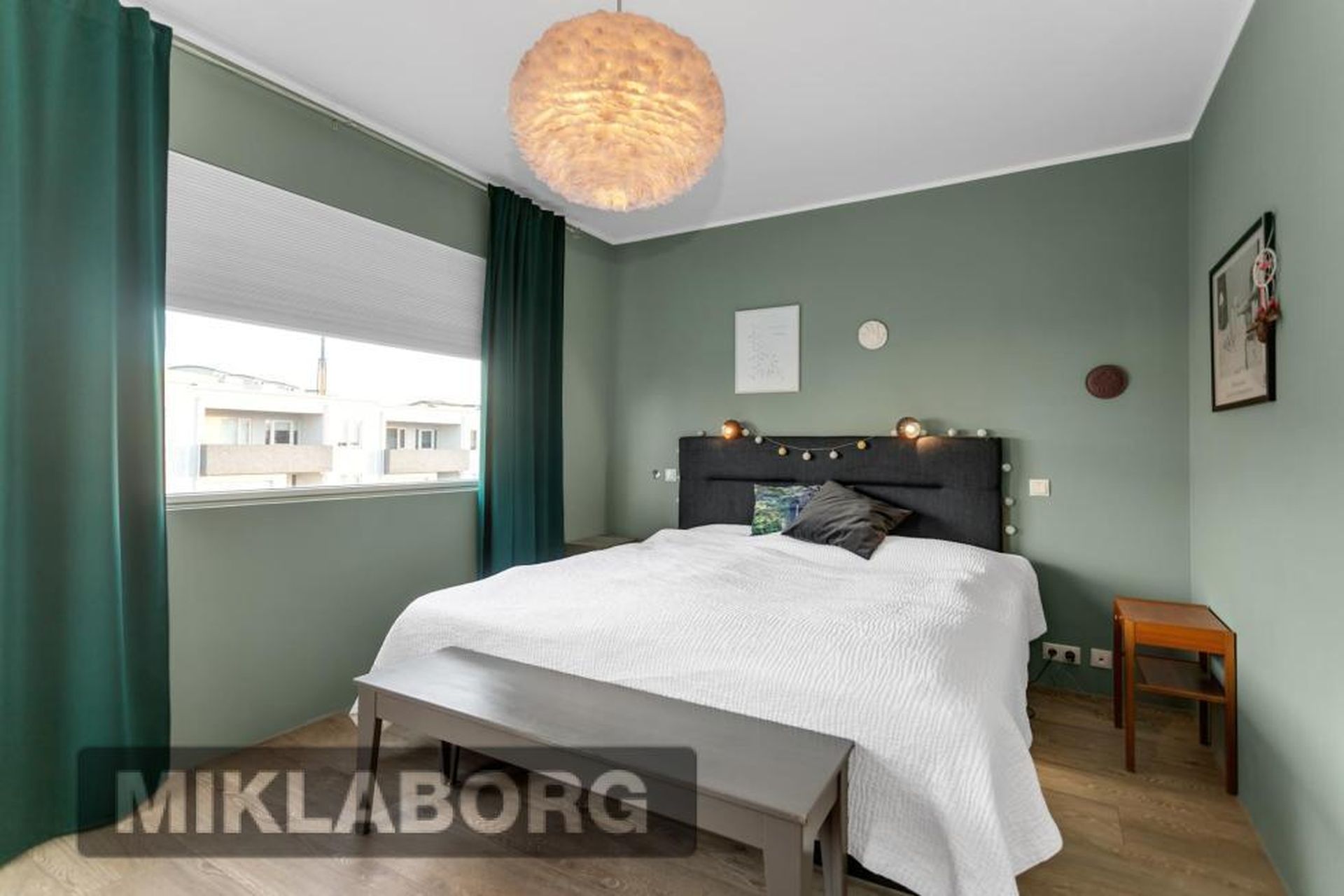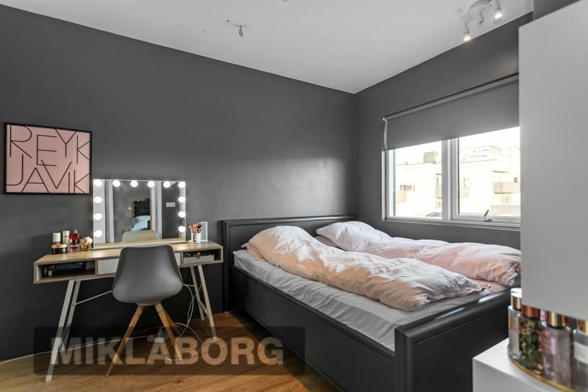 Svefnherbergi I: Rúmgott með fataskáp. Ljóst harðparket á gólfi.