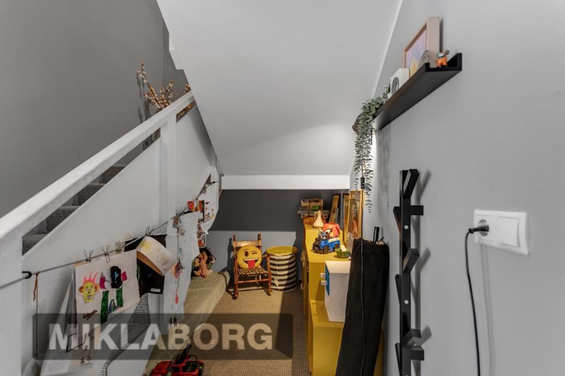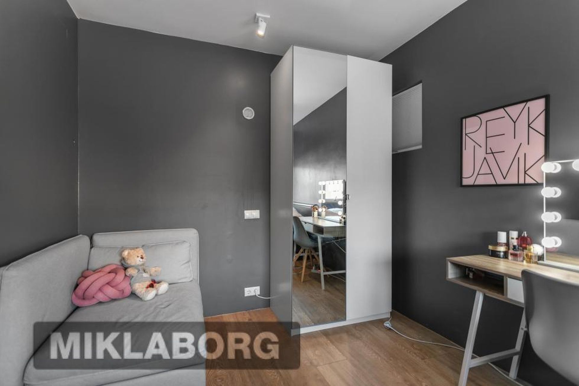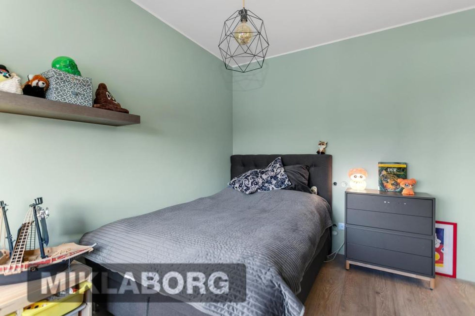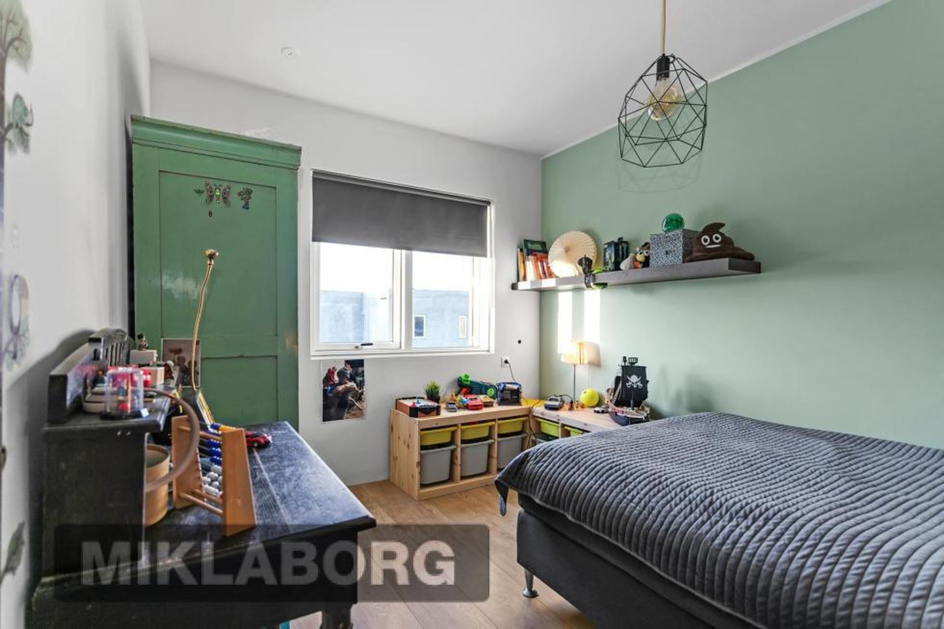 Svefnherbergi III: Rúmgott barnaherbergi með fataskáp. Viðarlitað harðparket á gólfi. Athuga ber að herberginu hefur verið breytt frá upprunalegri teikningu en það var stækkað í stað þess að hafa þriðja baðherbbergið. Það býður því upp á þann möguleika að að bæta við baðherbergi og minnka barnaherbergið.