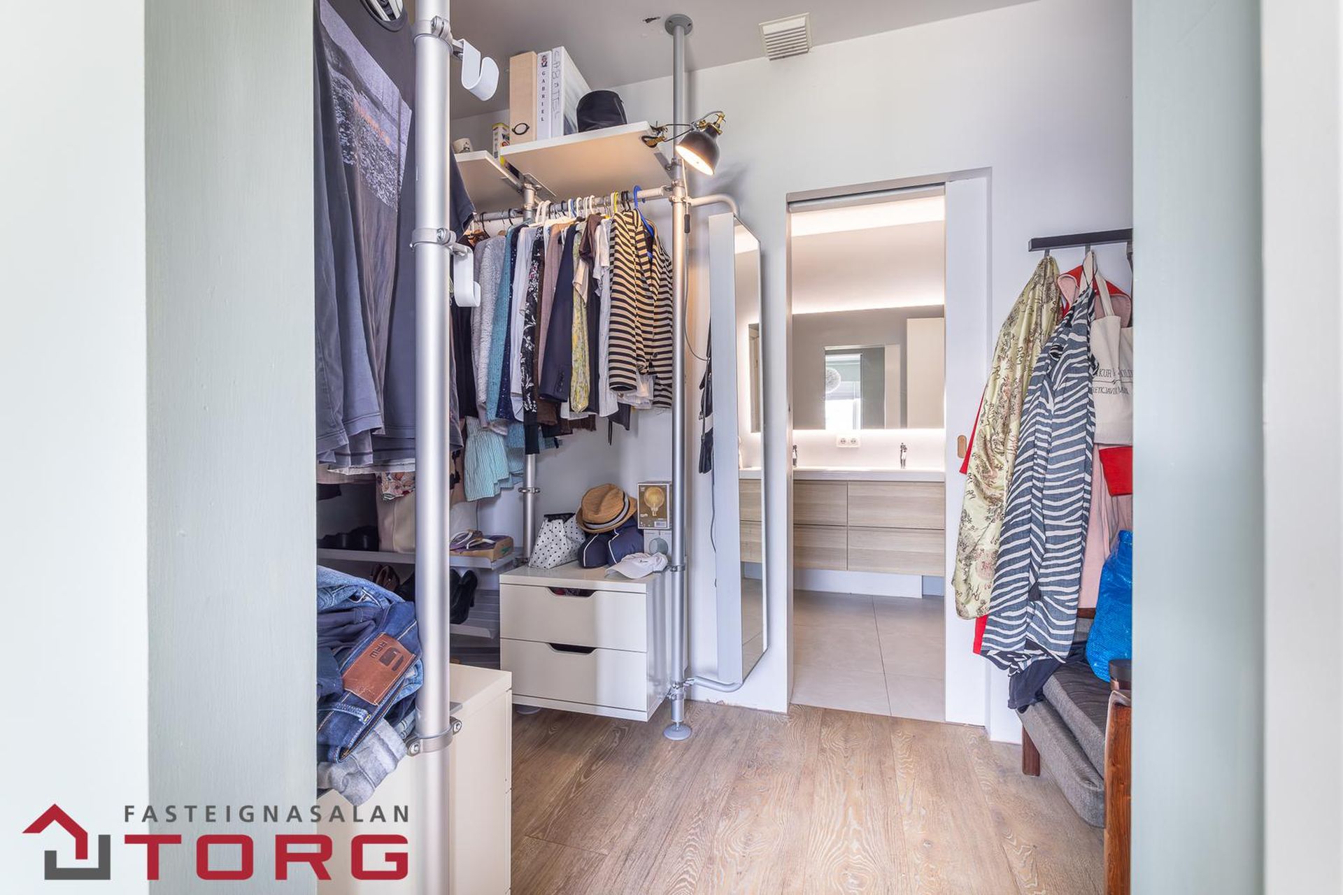 Nýjir skápar inni í fataherbergi og lokað inn á baðherbergi en það var áður innangengt úr fataherbergi.