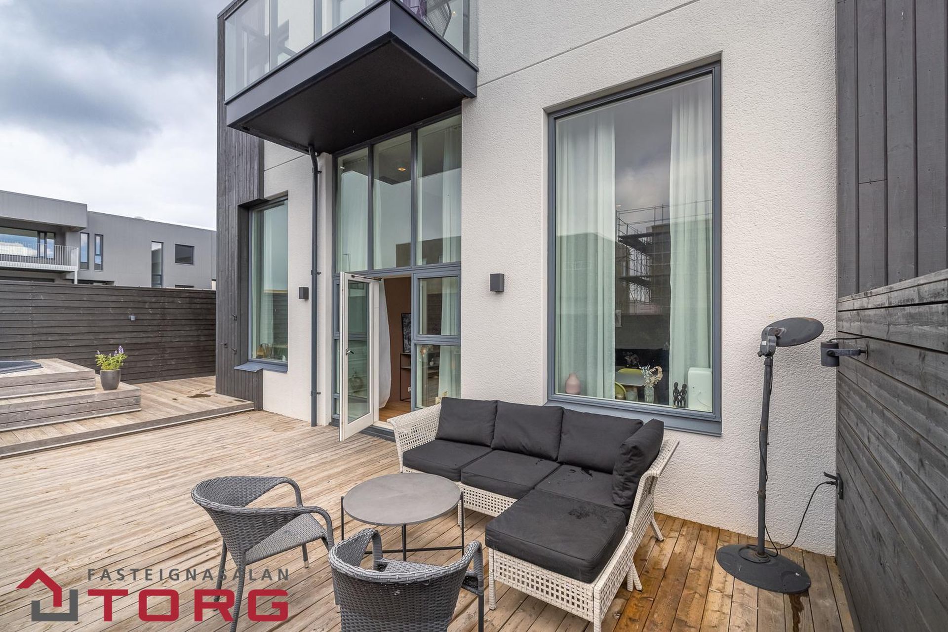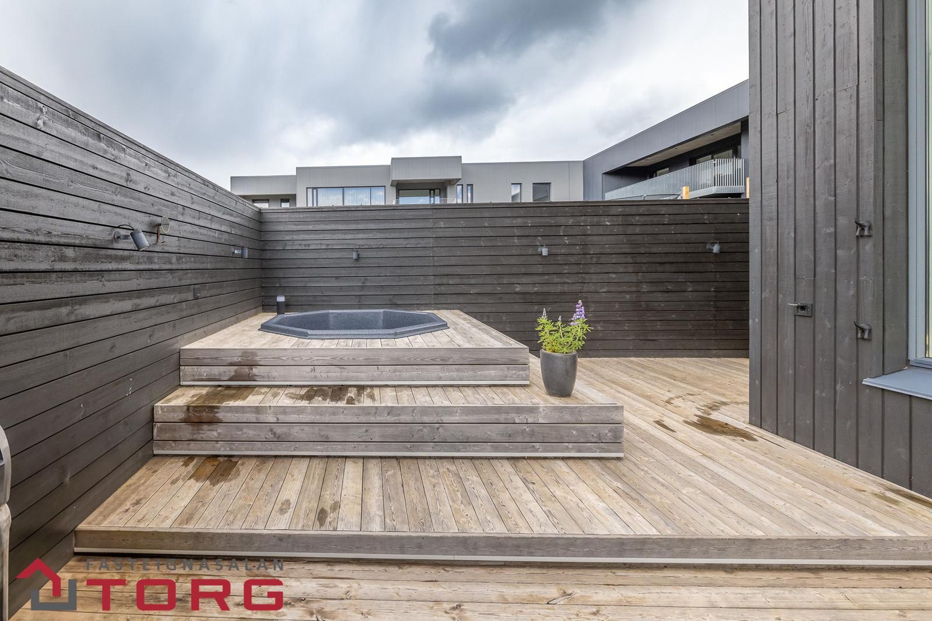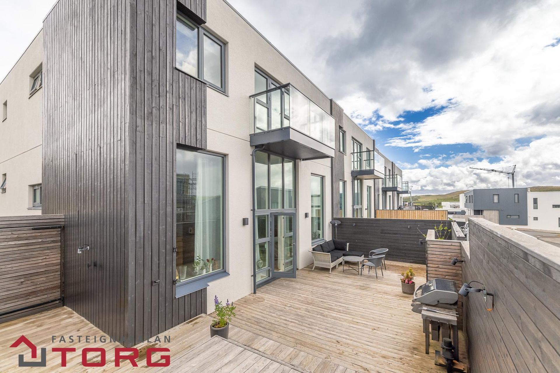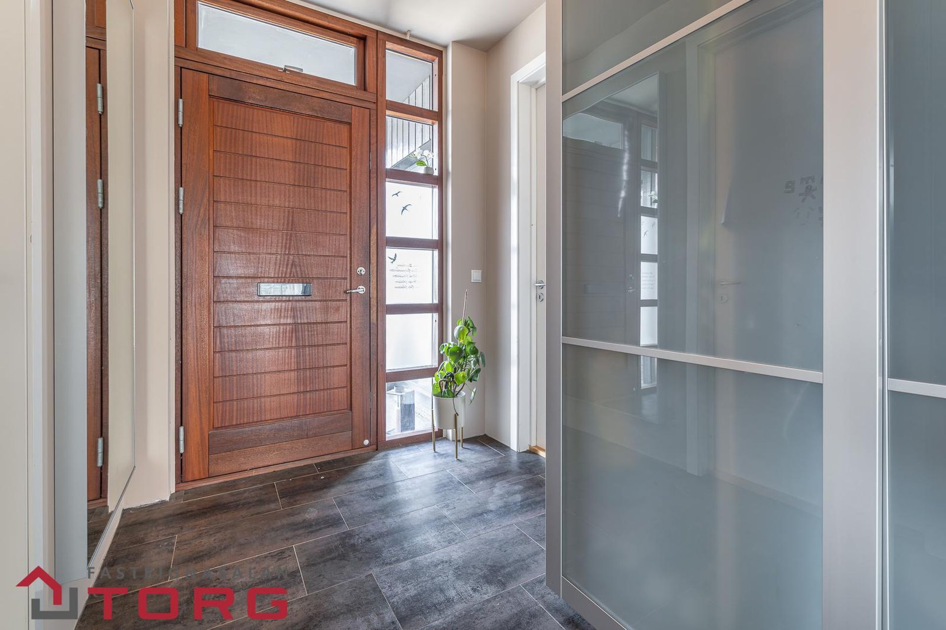 Fasteignasalan TORG kynnir í einkasölu fallegt og vel skipulagt 6-7 herbergja endaraðhús við Sjafnarbrunn 4, 113 Reykjavík. Eignin telur anddyri, stofu, eldhús, fimm svefnherbergi, tvö baðherbergi, sjónvarpshol (hægt að breyta í sjötta svefnherbergið), geymslu, þvottahús og bílskúr. Tvennar svalir og rúmgóður viðarpallur út frá stofu sem snýr til suður-suðvesturs. Heitur pottur á palli og gólfhiti í öllu húsinu.Virkilega falleg og björt eign þar sem skóli, leikskóli, sundlaug og íþróttasvæði Fram í göngufæri ásamt fallegum nátturúperlum. Nánari upplýsingar veitir Sunna Sigurjónsdóttir, lögfræðingur og löggiltur fasteignasali, í síma 845-0517, tölvupóstur sunna@fstorg.is.Nánari lýsing eignarinnar: Eignin er skráð samtals 241,4 fm á þremur pöllum/hæðum og er íbúðarrými skráð 209,8 fm og bílskúr 31.6 fm. Aukin lofthæð á efri hæð og neðri hæð. Fyrsta hæð:Anddyri: Dökkar flísar á gólfi. Innangengt inn í bílskúr.