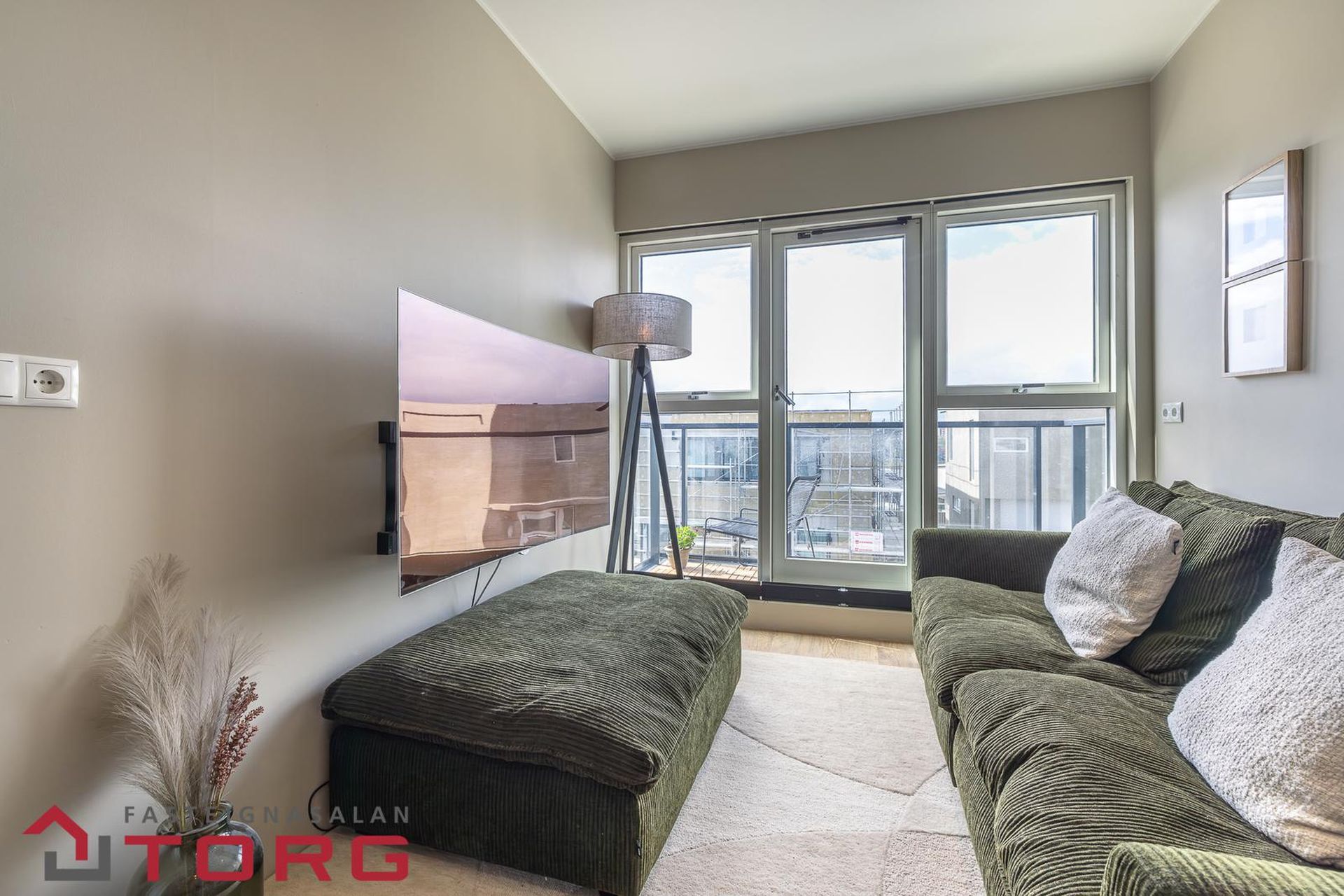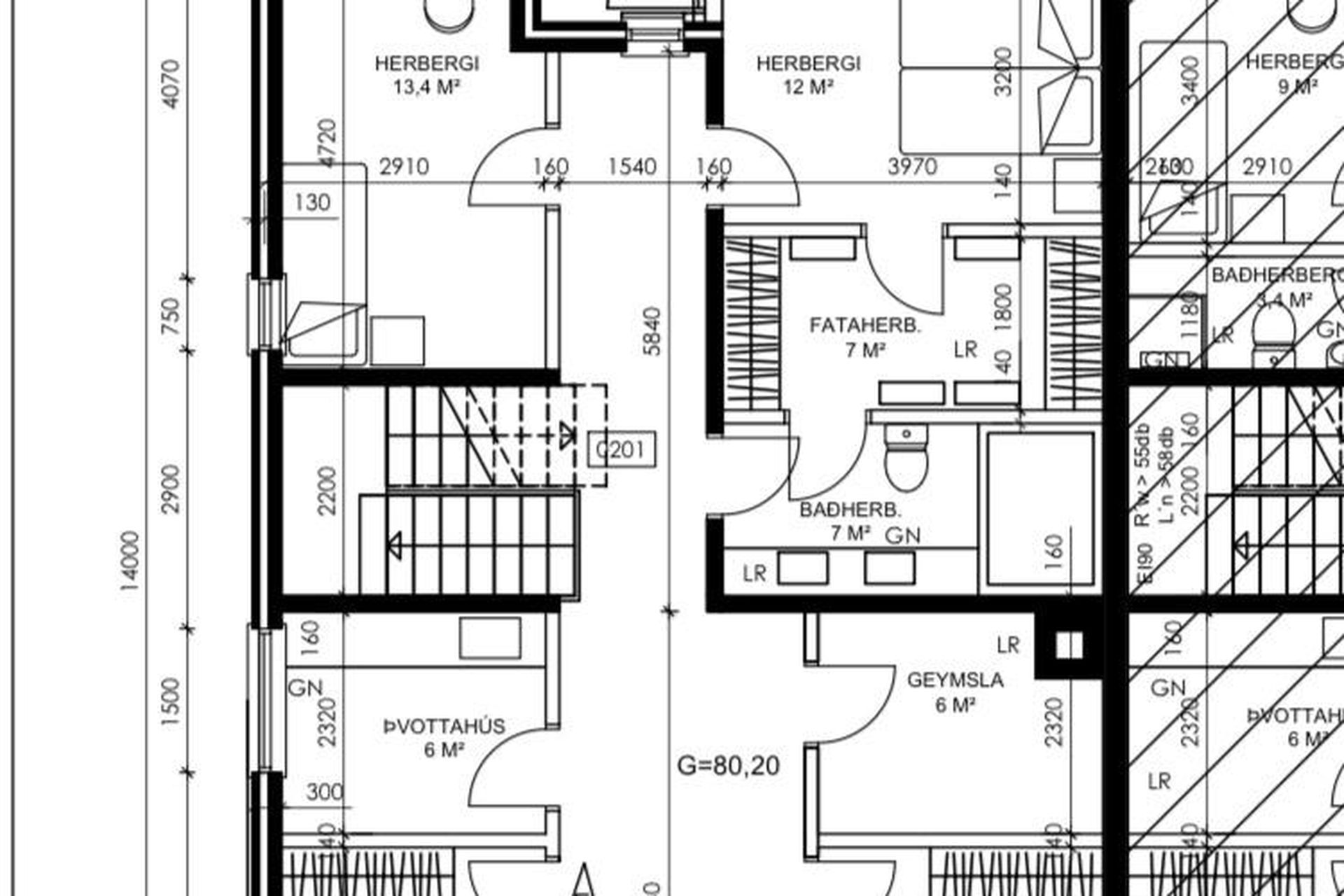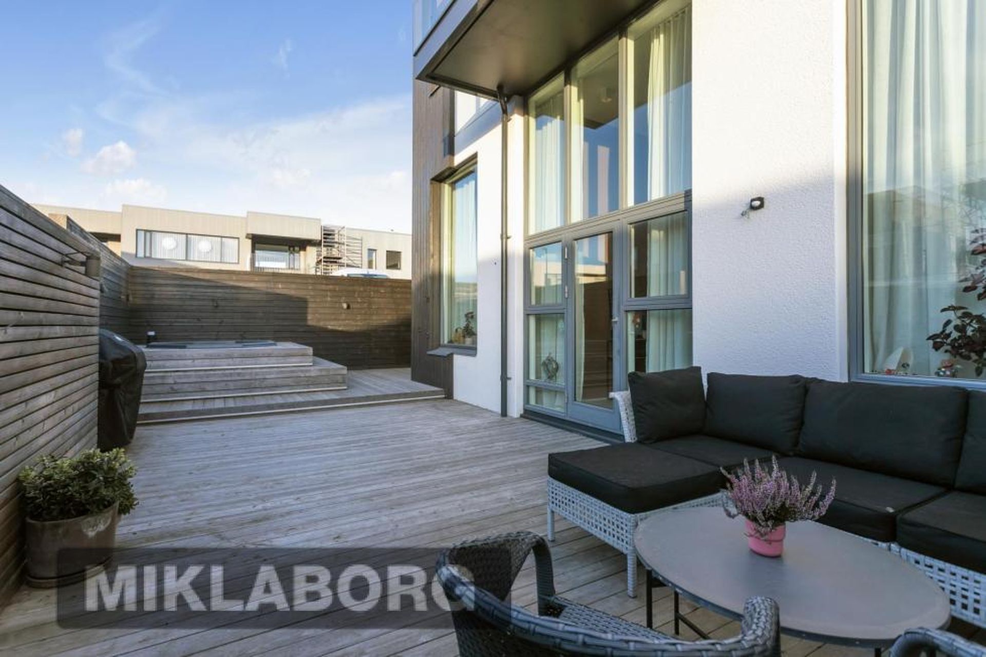 Sjónvarpshol: Stórir gluggar og útgengt á svalir til suð-vesturs. Möguleiki er að bæta við sjötta svefnherberginu.