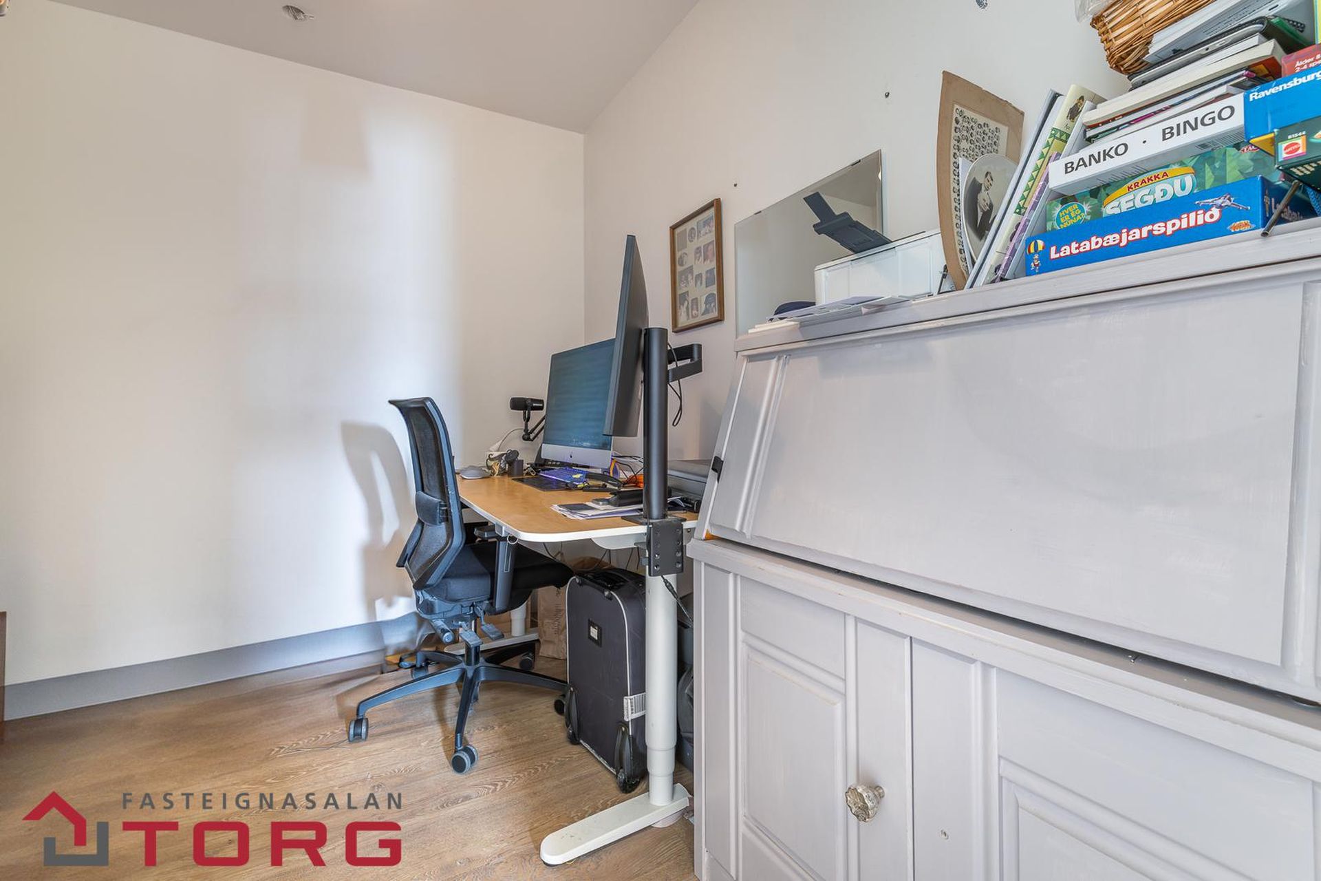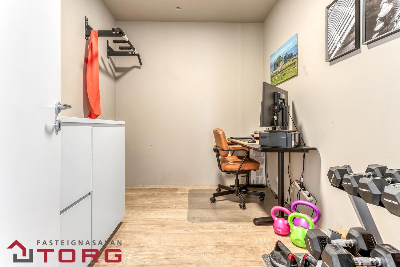 Geymsla: Rúmgóð geymsla sem er í dag notuð sem skrifstofa.