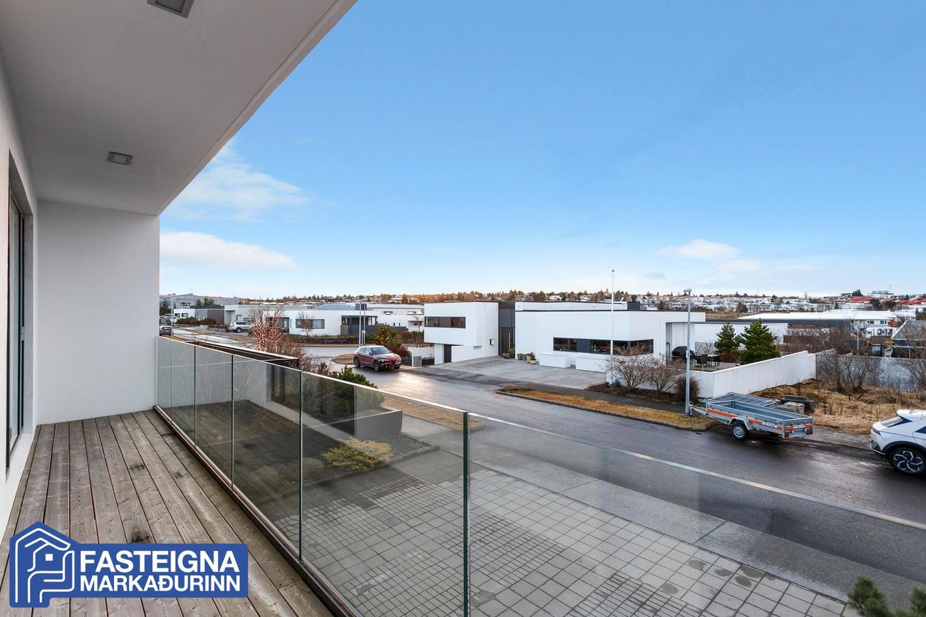 Eignin skiptist í forstofu, hol, baðherbergi, gestasnyrtingu, tvö barnaherbergi, hjónaherbergi með fataherbergi, sjónvarpsstofu, samliggjandi stofur, eldhús, þvottaherbergi, tvöfaldan bílskúr og stúdíó sem um 55 fermetrar og samanstendur af herbergi, stofu, baðherbergi og er með sérinngangi og einnig er innangengt úr húsi.