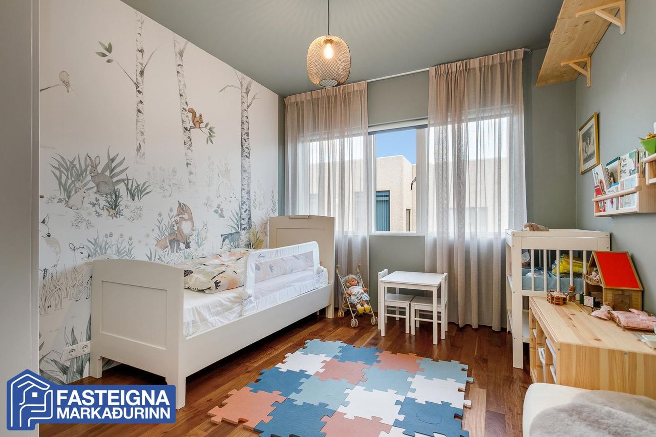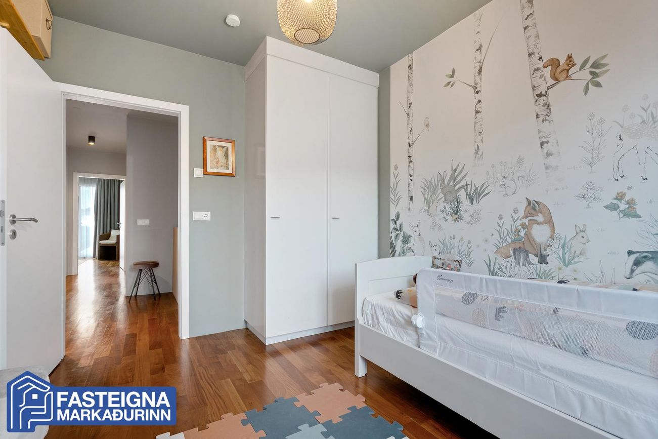 Barnaherbergi ll, parketlagt og rúmgott með fataskápum