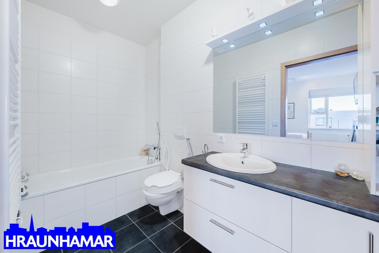Eigninni fylgir góð sameign, m.a. hjóla og vagnageymsla svoog salur með eldhúsi, t.d. fyrir veislur,fundi ofl. Húsið er klætt að utan og því viðhaldslétt.