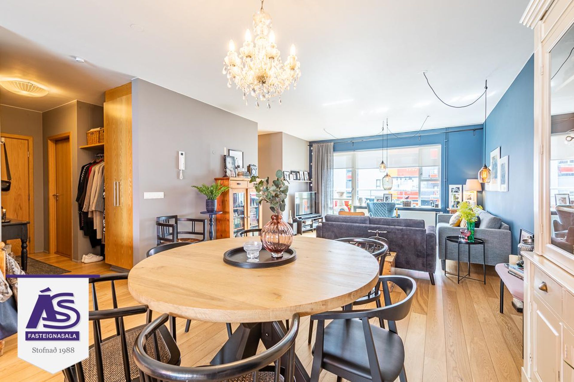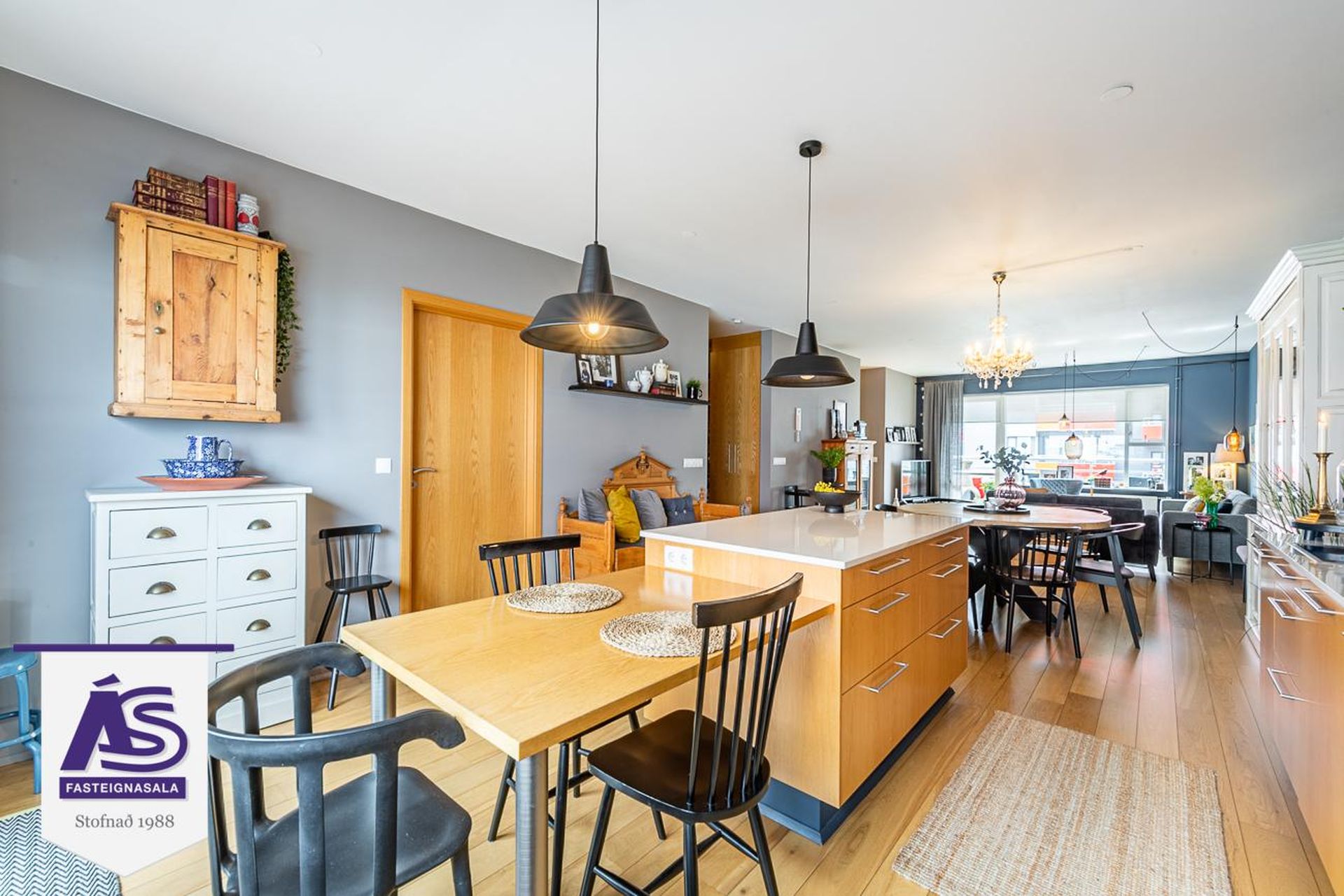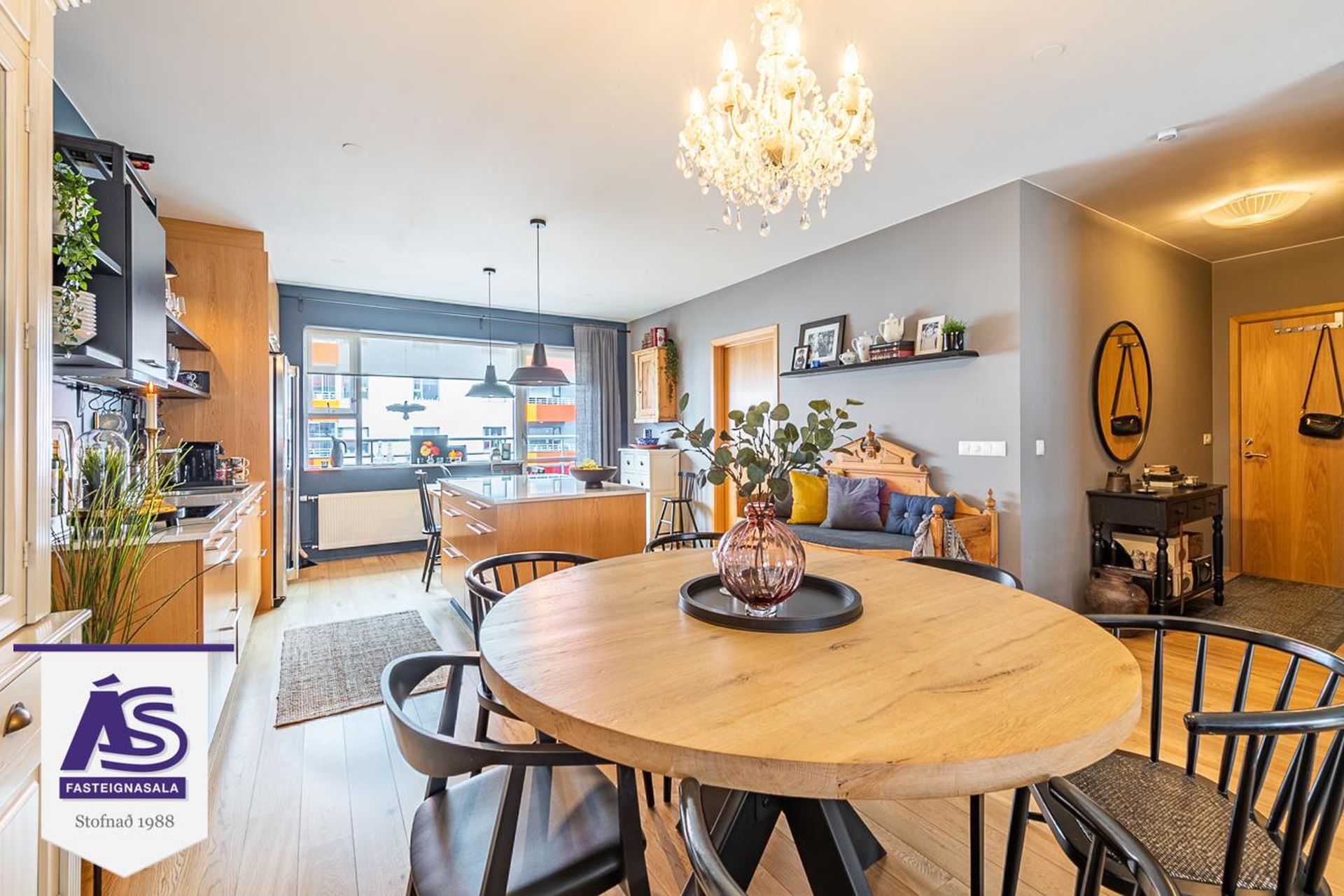 Falleg og vel skipulögð 127,8fm fjögurra herbergja íbúð á fyrstu hæð í vönduðu lyftuhúsi sem ætlað er fyrir 50 ára og eldri. Íbúðinni fylgir sér stæði í bílakjallara. Eignin skiptist í : forstofu, eldhús, stofu, borðstofu, þrjú svefnherbergi, tvö baðherbergi, þvottahús, geymslu ásamt stæði í bílageymslu. Útgengi út á hellulagða verönd sem snýr til suð/vesturs. Nánari upplýsingar veitir Helgi Jónsson Löggiltur fasteigansali í síma : 780-2700 eða á Helgi@fstorg.is