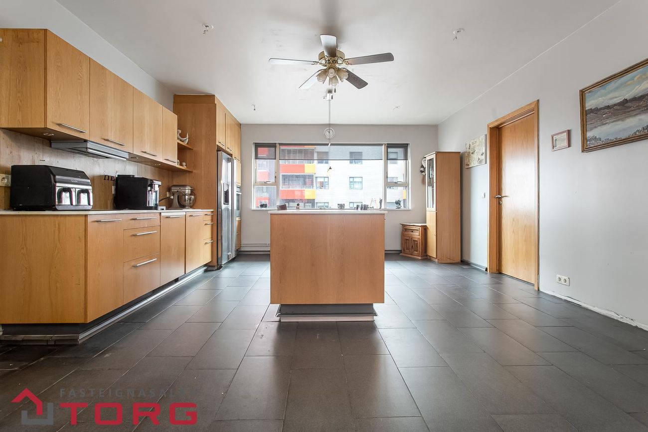 Eldhús : með viðarinnréttingu, tengi fyrir uppþvottavél, eyja, flísar á gólfi.