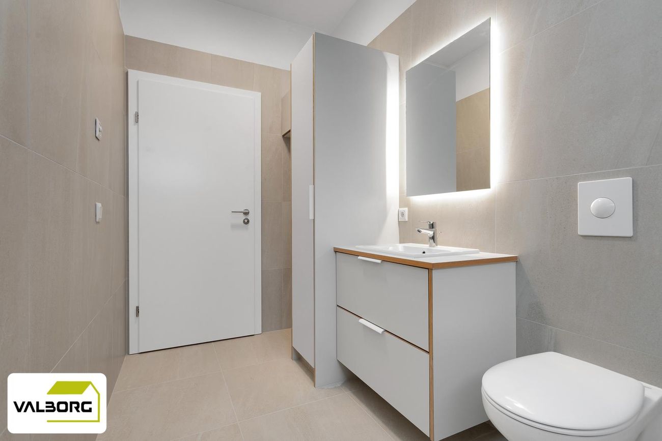 Baðherbergi/þvottaherbergi: Flísalögð í hólf og gólf og með glugga. Vegghengt salerni og göngusturta. Tæki og búnaður frá Grohe. Innrétting með melamín yfirborði (plast). Flísar frá Parka og gólfhiti. Endaíbúðir með glugga.