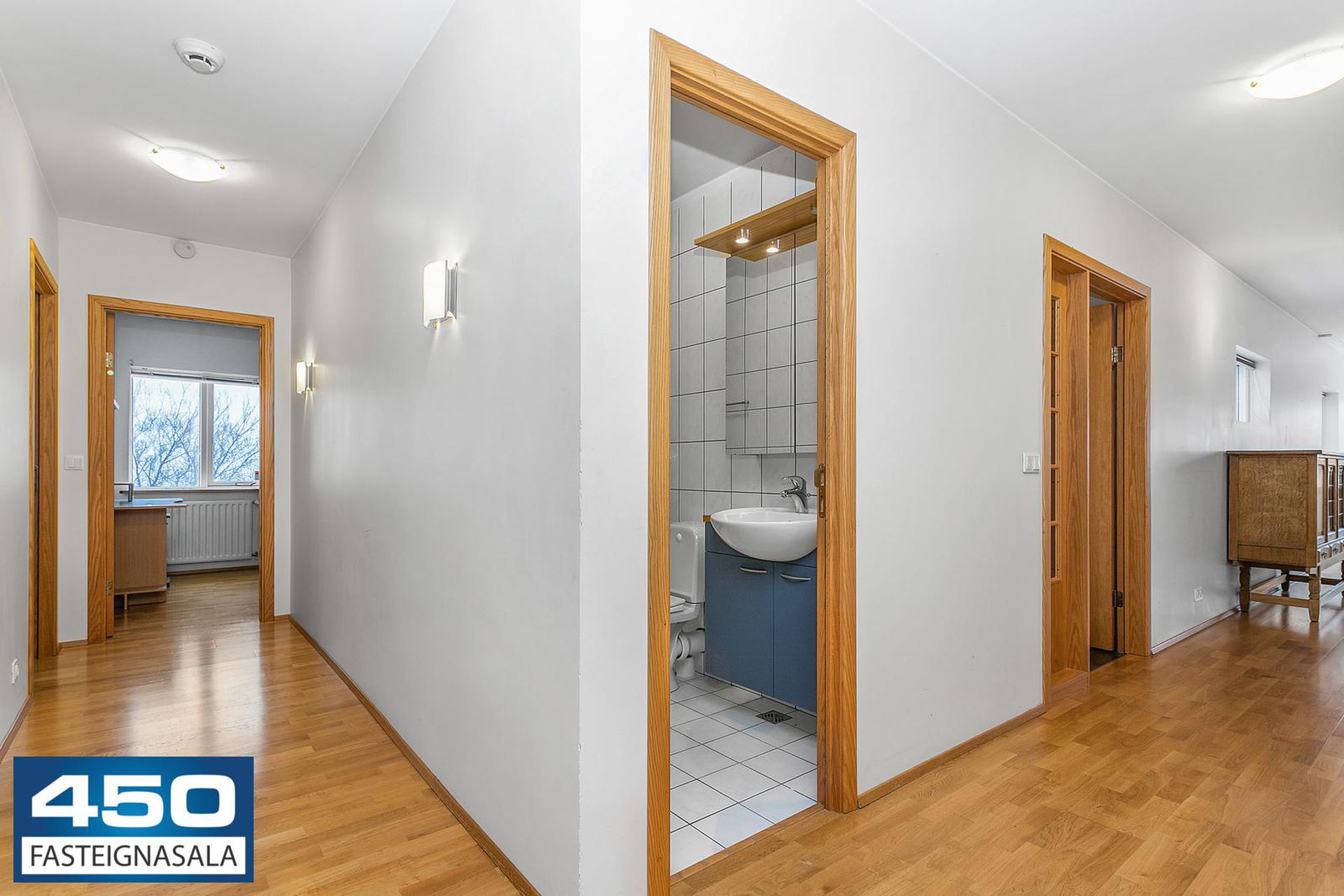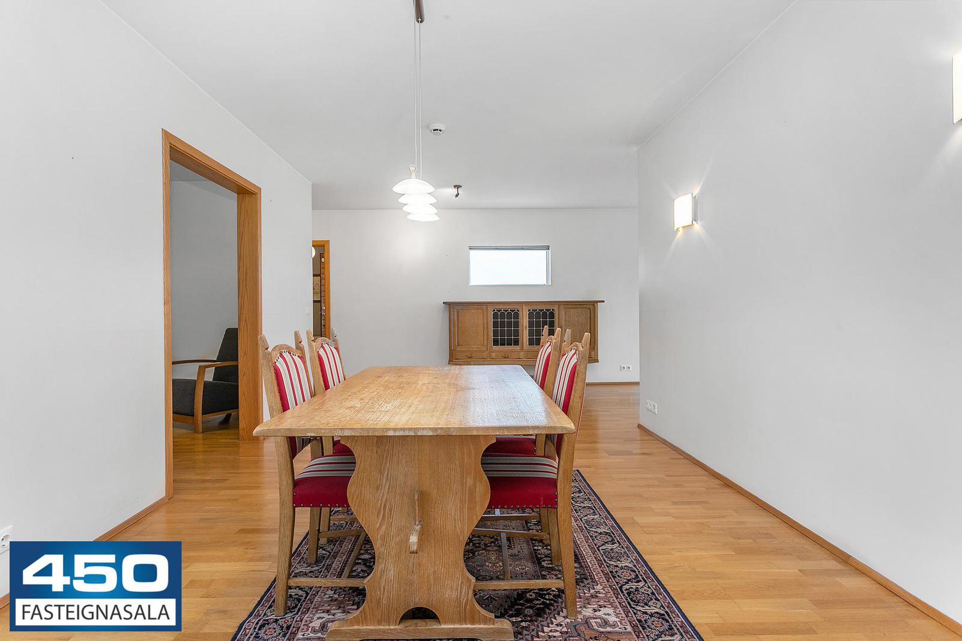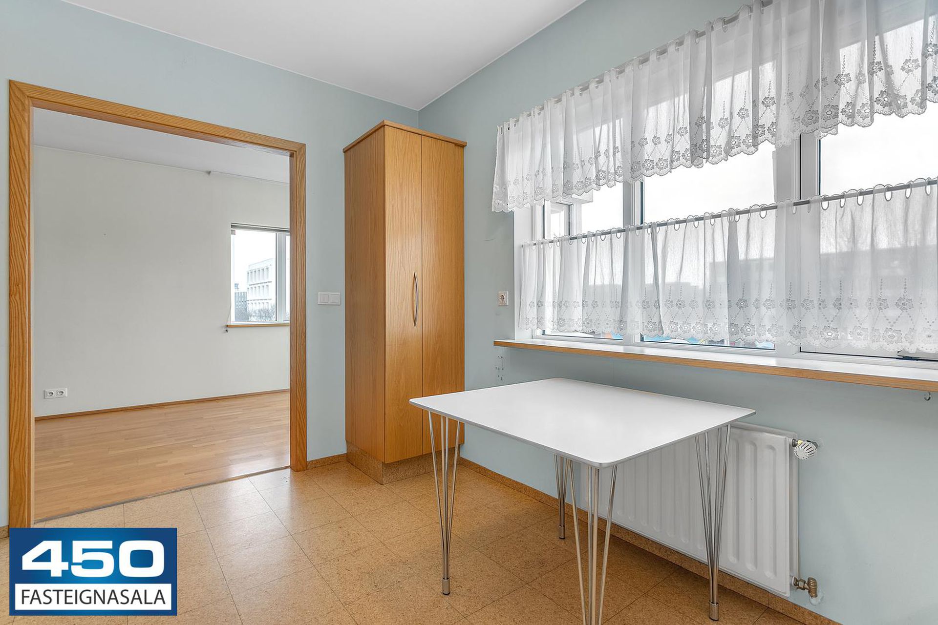 Þríbýli skipt í rúmgóð herbergi með parket- og flísagólfi. Útgengt á suðvestursvalir.