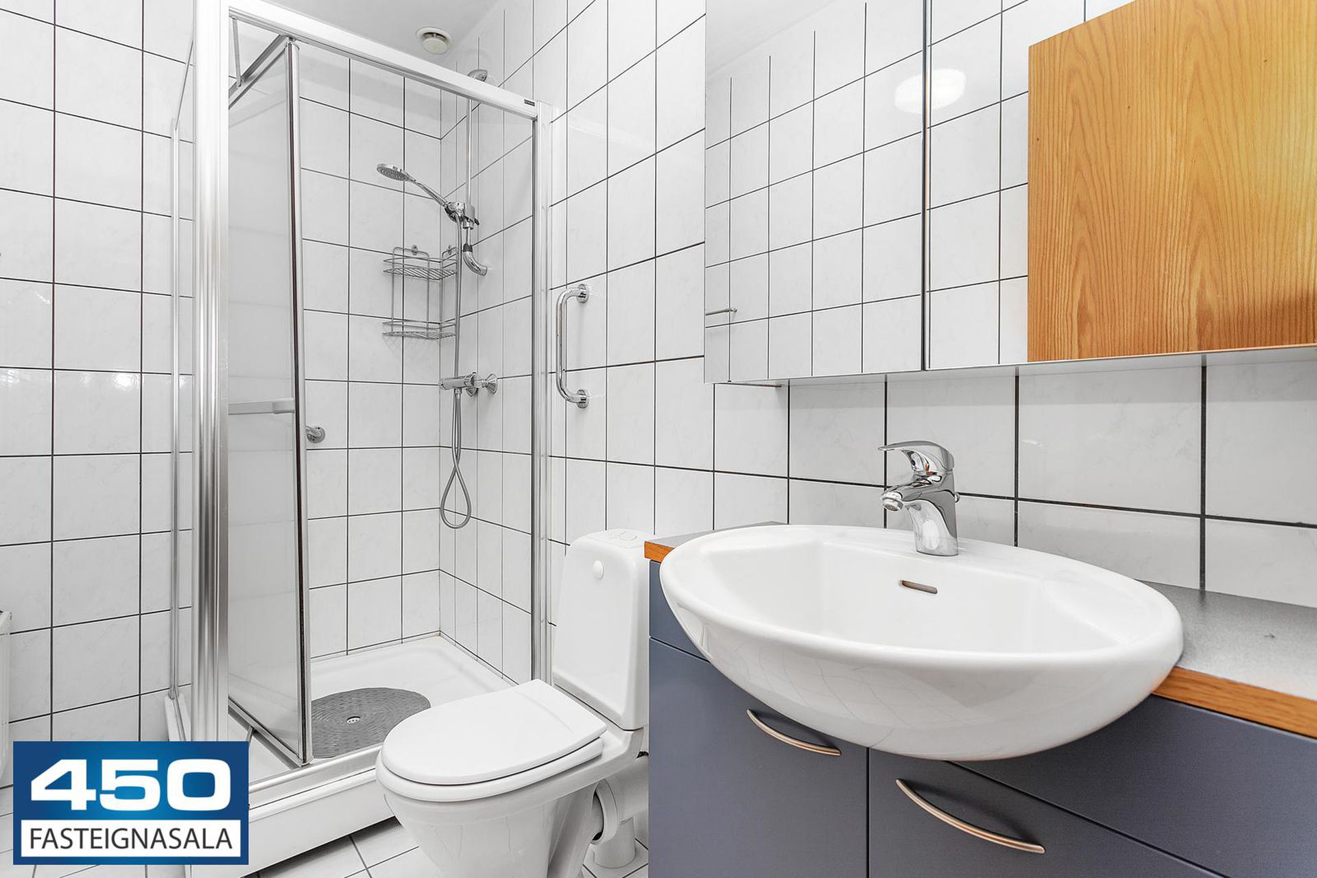 Baðherbergi II með sturtuklefa.