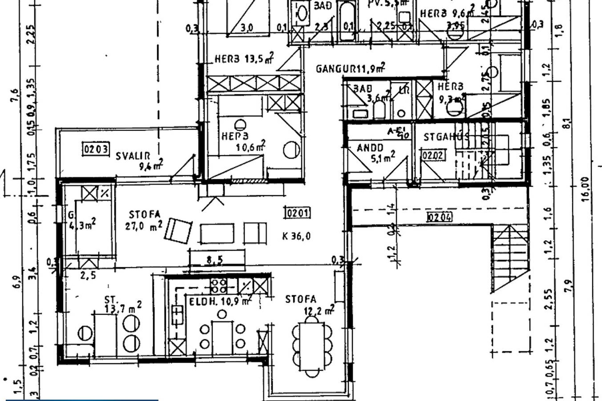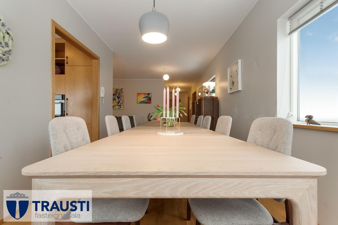 196,0 fm með 28,0 fm bílskúr, 4 svefnherbergi, 2 baðherbergi, þrískipt stofa/borðstofa, nýlega endurnýjað eldhús.