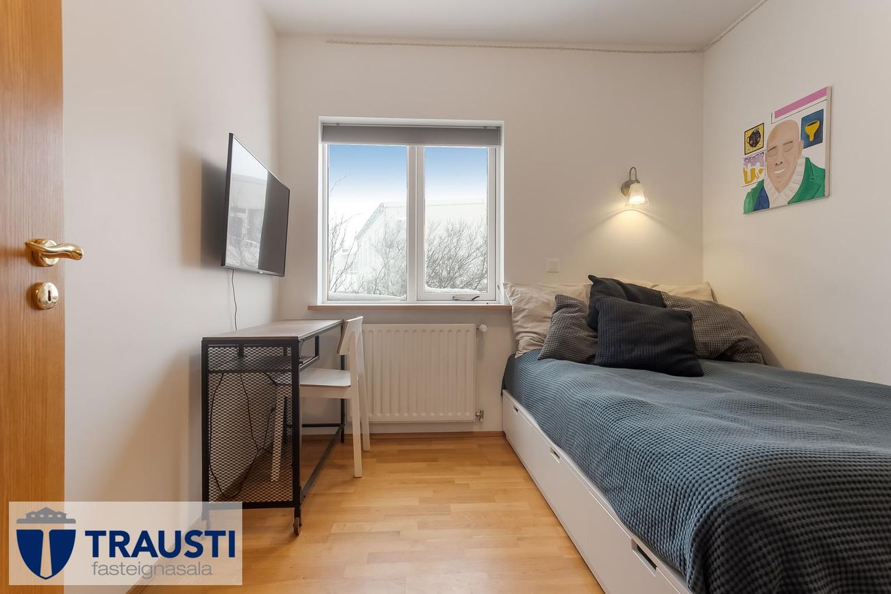 Hjónaherbergi og svefnherbergi með parketgólfi og góðu skápaplássi. Eitt herbergi breytt úr sjónvarpsstofu 2022.