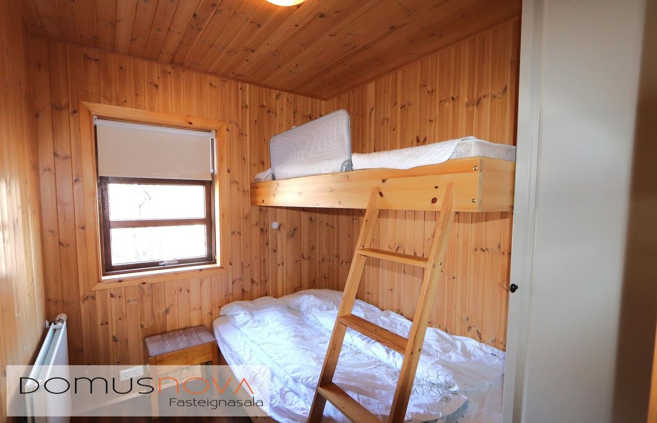 Svefnherbergi eru tvö, annað þeirra er með koju. Fataskápur er á gangi framan við svefnherbergi.