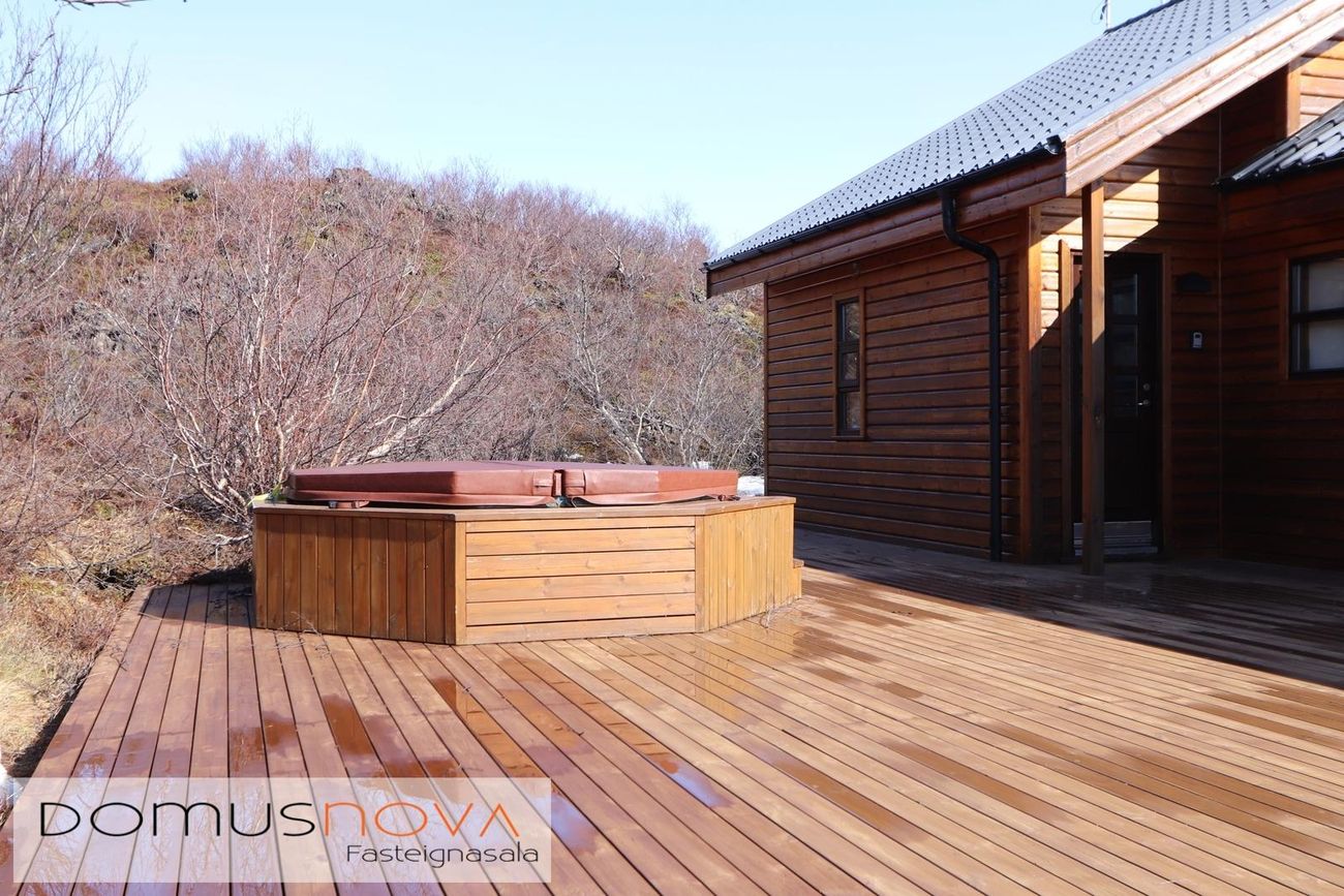 Veröndin umlyggur húsið, heitur pottur. Hitaveita og ljósleiðari.
