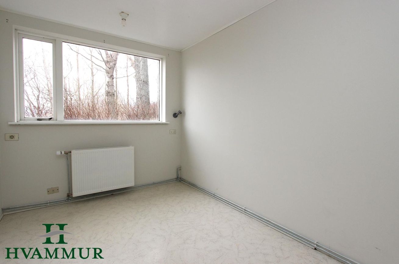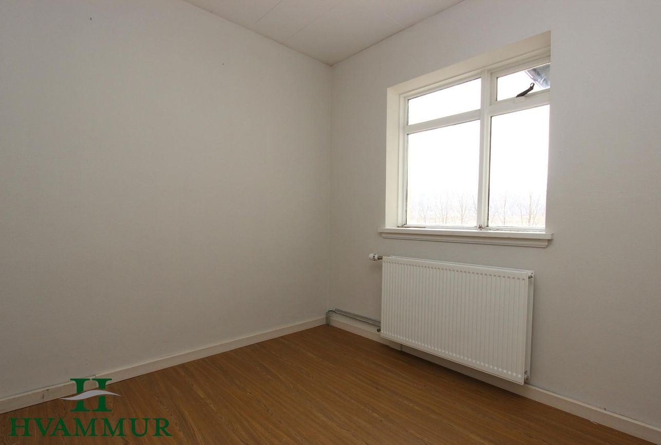 Fjögur svefnherbergi (þrjú með parketi, eitt með dúk) á neðri hæð. Þrjú svefnherbergi með plastparketi í norðurviðbyggingu.