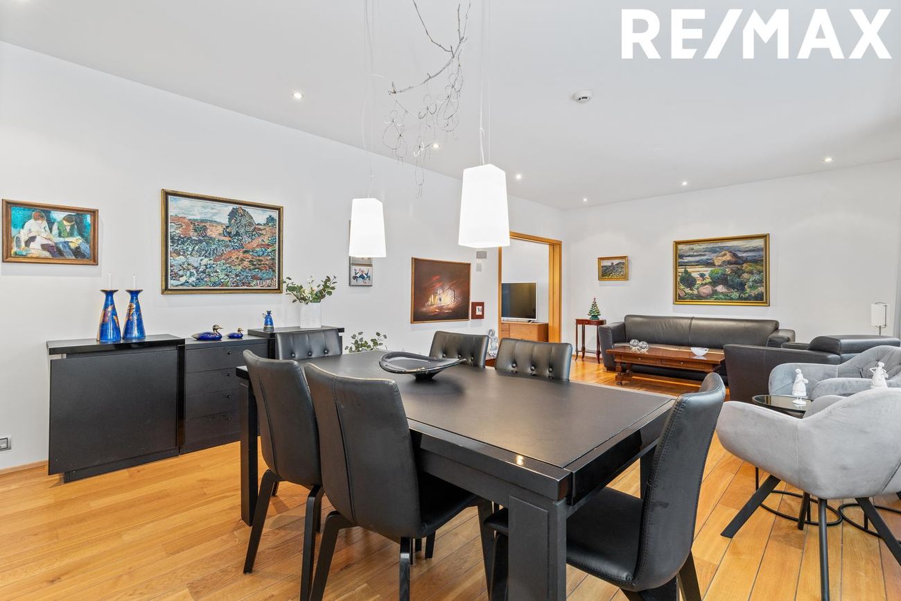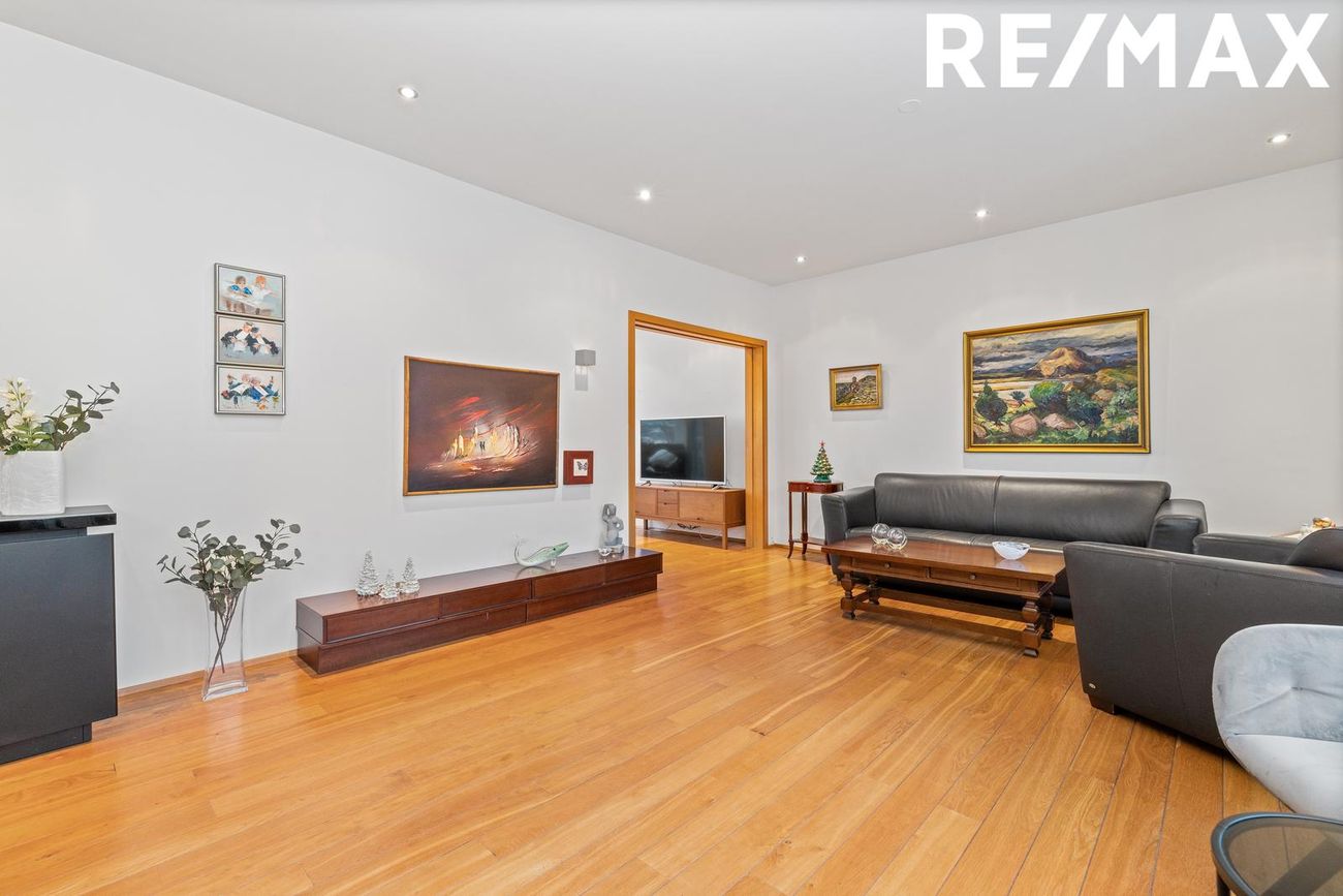 Steinsteypt bygging, parket gólf, eikarinnréttingar, granít borðplötur.