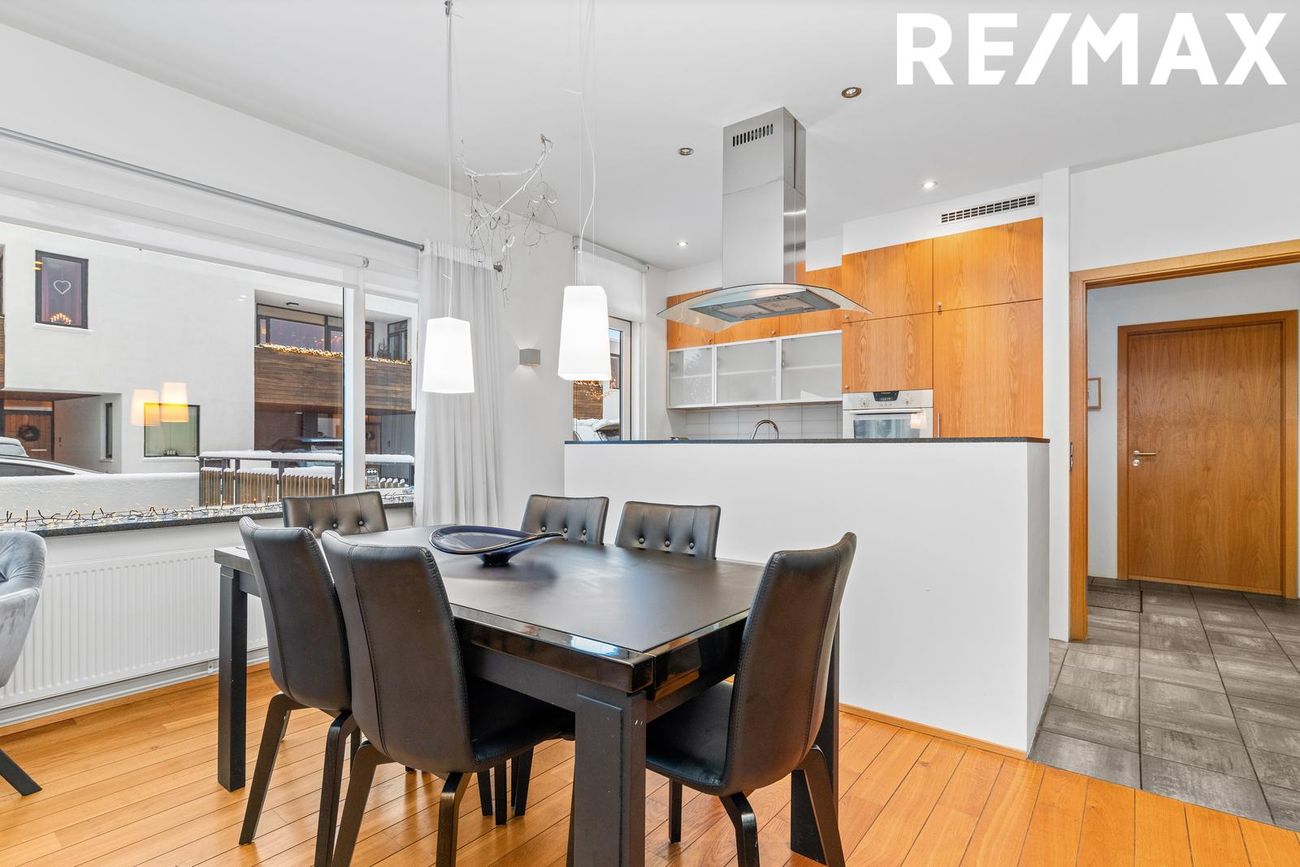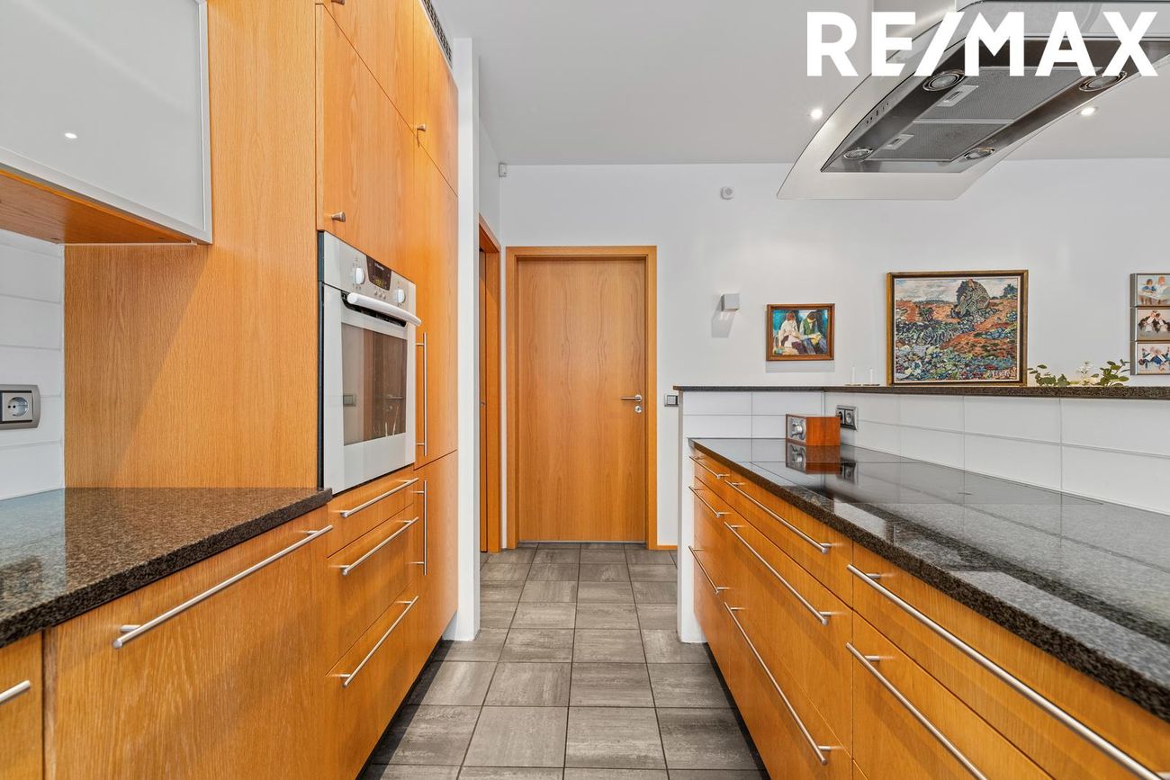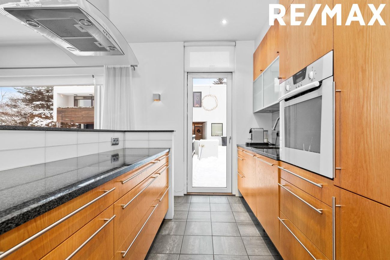Parketgólf, eikarinnréttingar, granítborðplötur, innbyggður ísskápur, frystir og uppþvottavél.