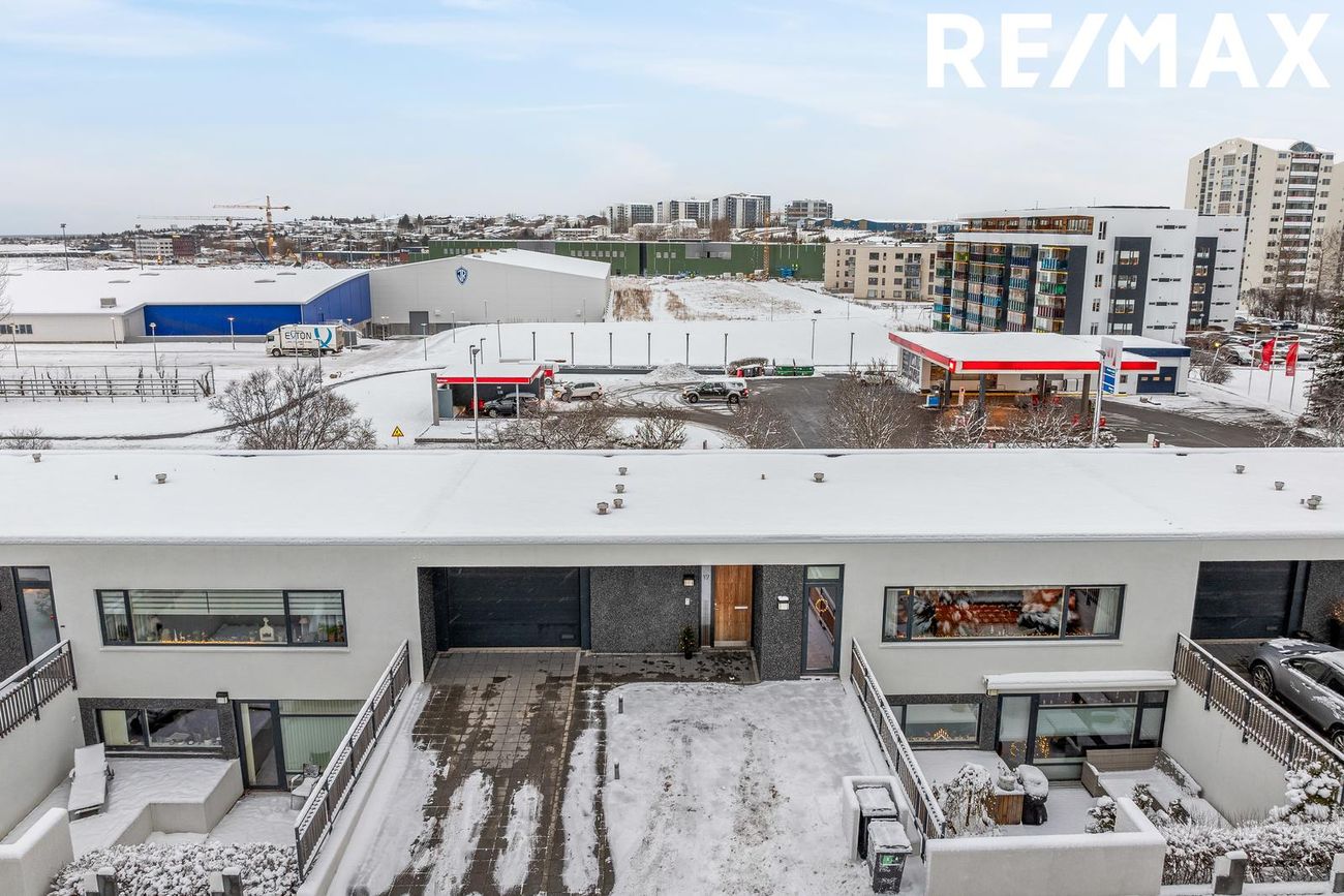 107,9 fm með 28,3 fm bílskúr, innbyggður bílskúr, tvö bílastæði, eikarinnréttingar og granítborðplötur.