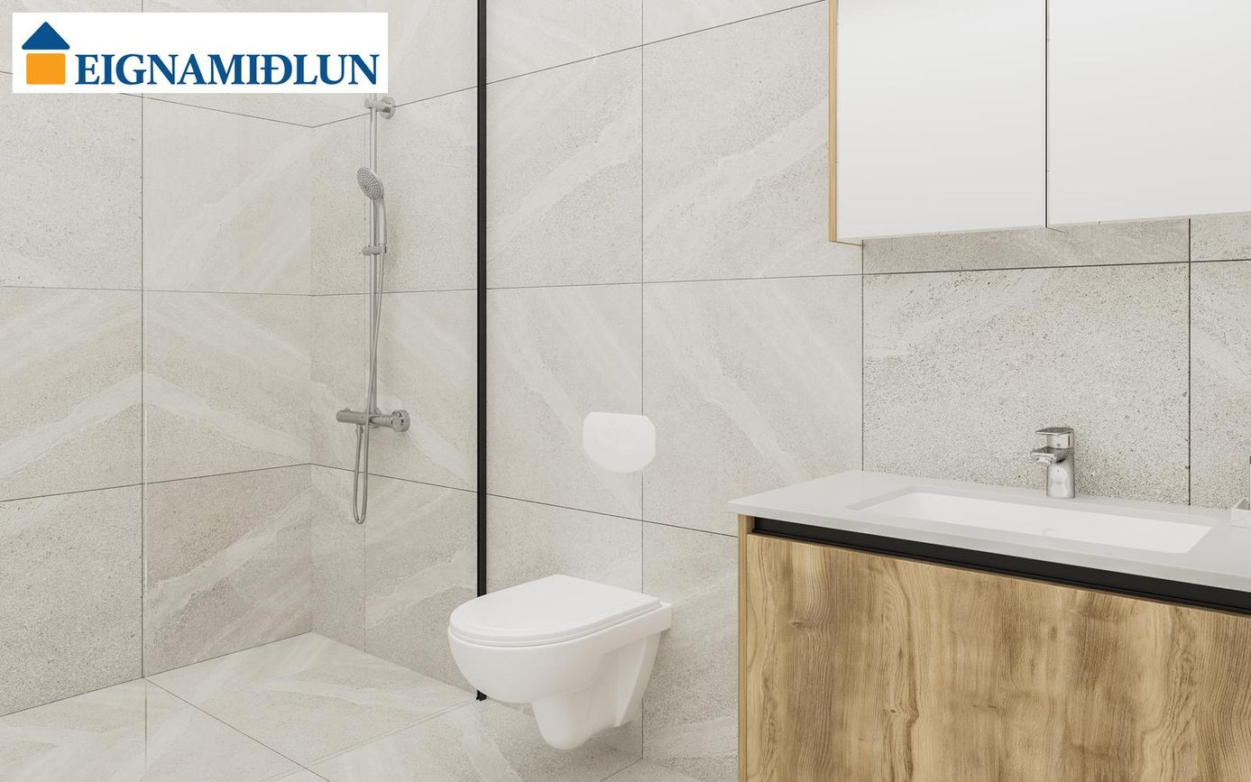 INNRÉTTINGAR: Eldhúsinnréttingar eru sérsmíðaðar frá Selós. Skápar eru úr vönduðu stitsterku melamin efni. Vönduð heimilistæki eru í íbúðum sem eru frá AEG. Kæli-/frystiskápur og uppþvottavél eru innbyggð í innréttinguna og spanhelluborð. Dekton – Rem steinborðplötur eru í öllum eldhúsum og Silestone – Nolita steinborðplötur eru á böðum. Gólfhiti er í gólfi baðherbergis auk handklæðaofns. Bílastæði í kjallara fylgja öllum íbúðum og möguleiki er á að kaupa viðbótarstæði.