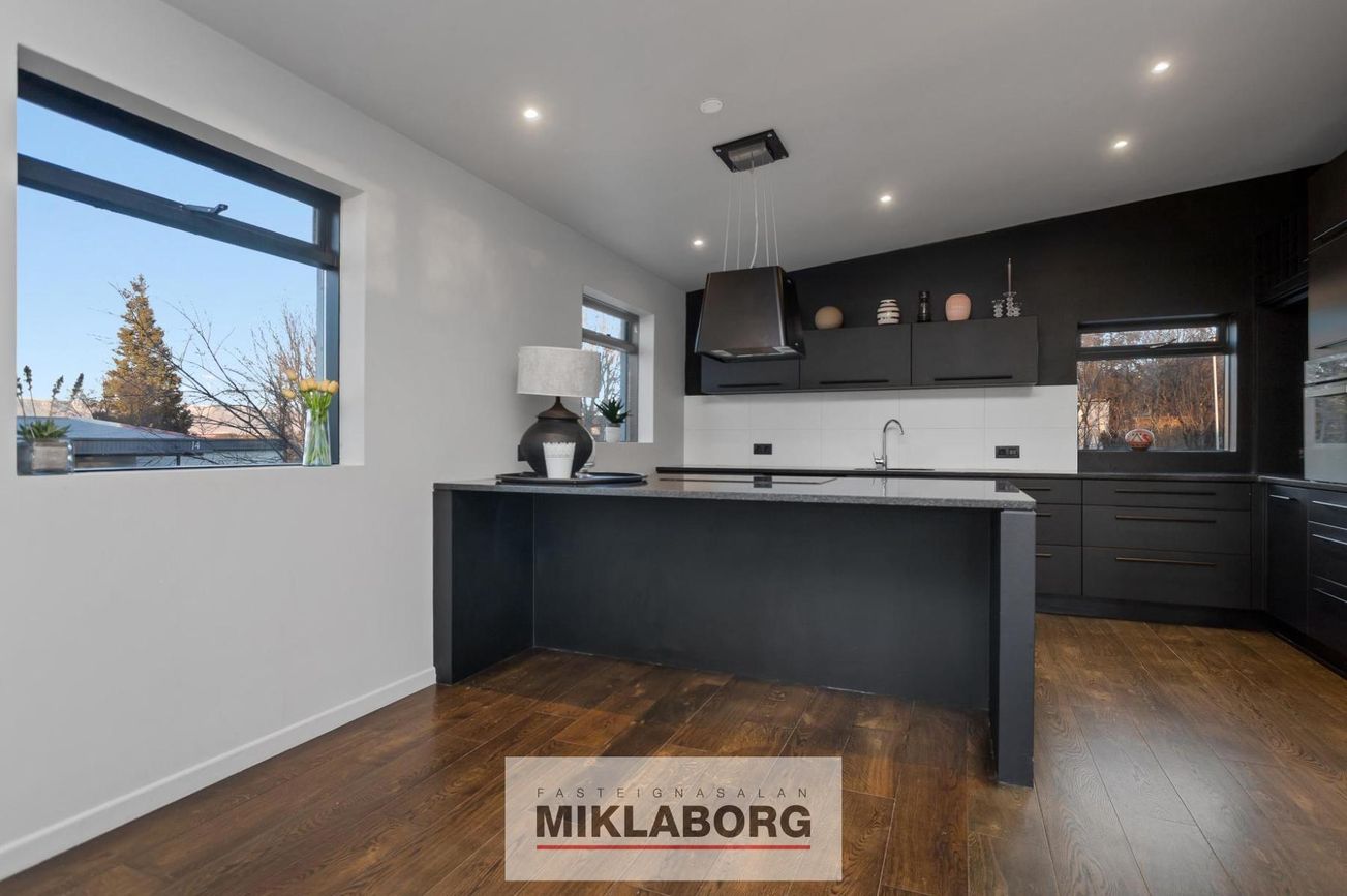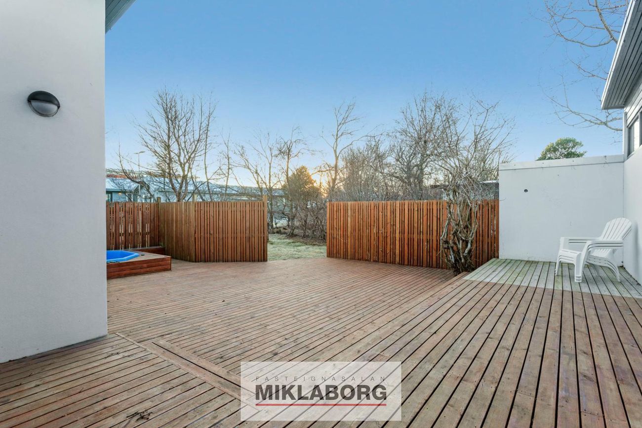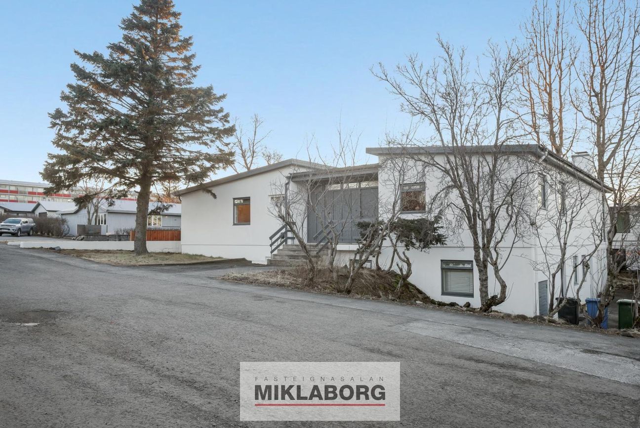 Miklaborg kynnir: Fallegt einbýlishús á tveimur hæðum með 3 aukaíbúðum sem hefur fengið gott viðhald. Samkvæmt Þjóðskrá Íslands er húsið skráð 241,1 fm en samkvæmt mælingum frá Arkþing sem eigandi lét framkvæma árið 2019 er húsið 336,2 fm. Samkvæmt þeirri mælingu er neðri hæðin 164 fm og efri hæðin 172,2 fm. Á efri hæð er 4ra herbergja íbúð með útgengi á stóran afgirtan pall með heitum potti. Neðri hæðinni hefur verið skipt upp í þrjár íbúðir sem allar eru með sérinngangi.