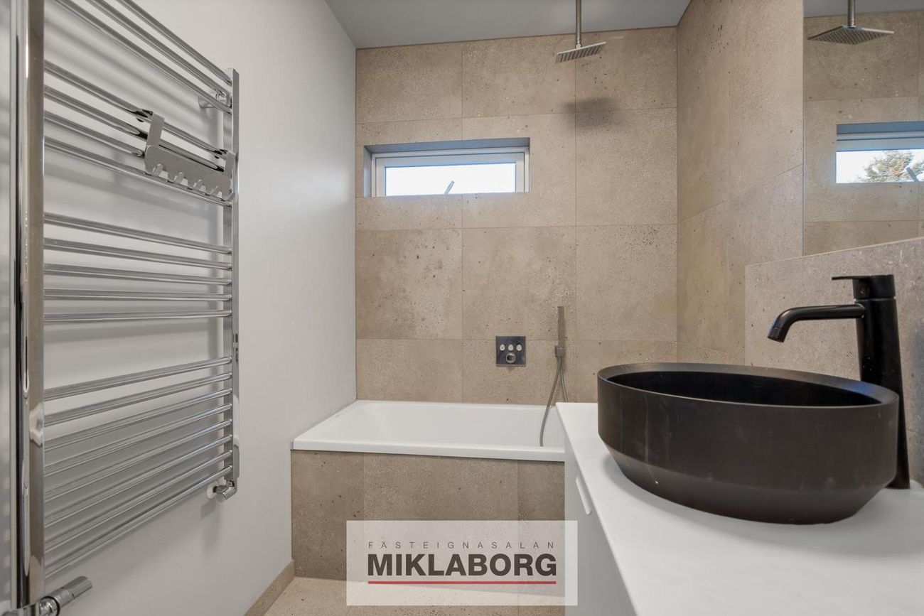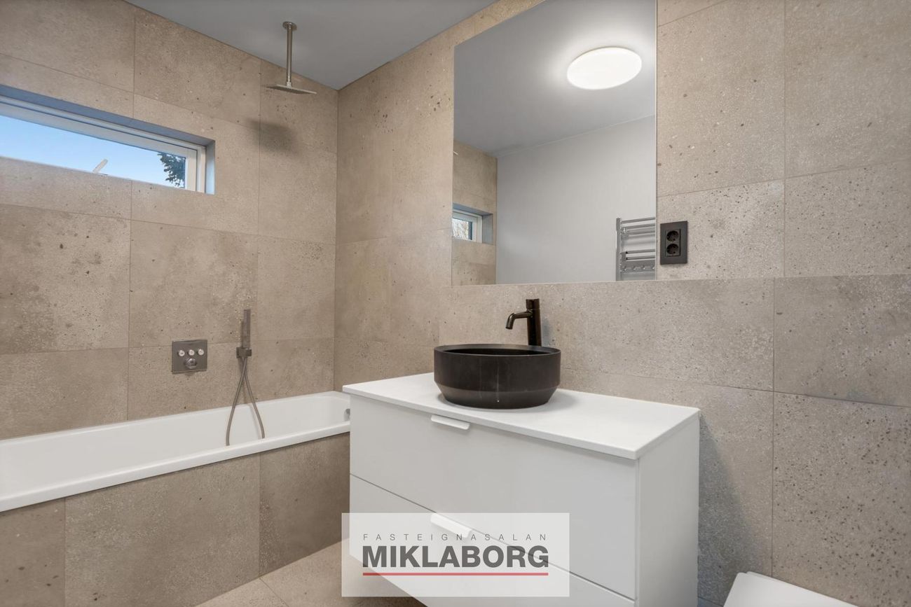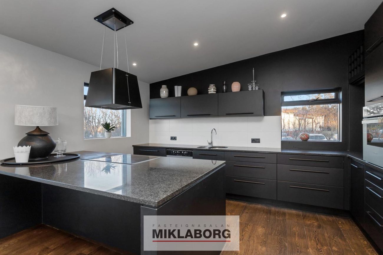 Miklaborg kynnir: Fallegt einbýlishús á tveimur hæðum með 3 aukaíbúðum sem hefur fengið gott viðhald. Samkvæmt Þjóðskrá Íslands er húsið skráð 241,1 fm en samkvæmt mælingum frá Arkþing sem eigandi lét framkvæma árið 2019 er húsið 336,2 fm. Samkvæmt þeirri mælingu er neðri hæðin 164 fm og efri hæðin 172,2 fm. Á efri hæð er 4ra herbergja íbúð með útgengi á stóran afgirtan pall með heitum potti. Neðri hæðinni hefur verið skipt upp í þrjár íbúðir sem allar eru með sérinngangi.